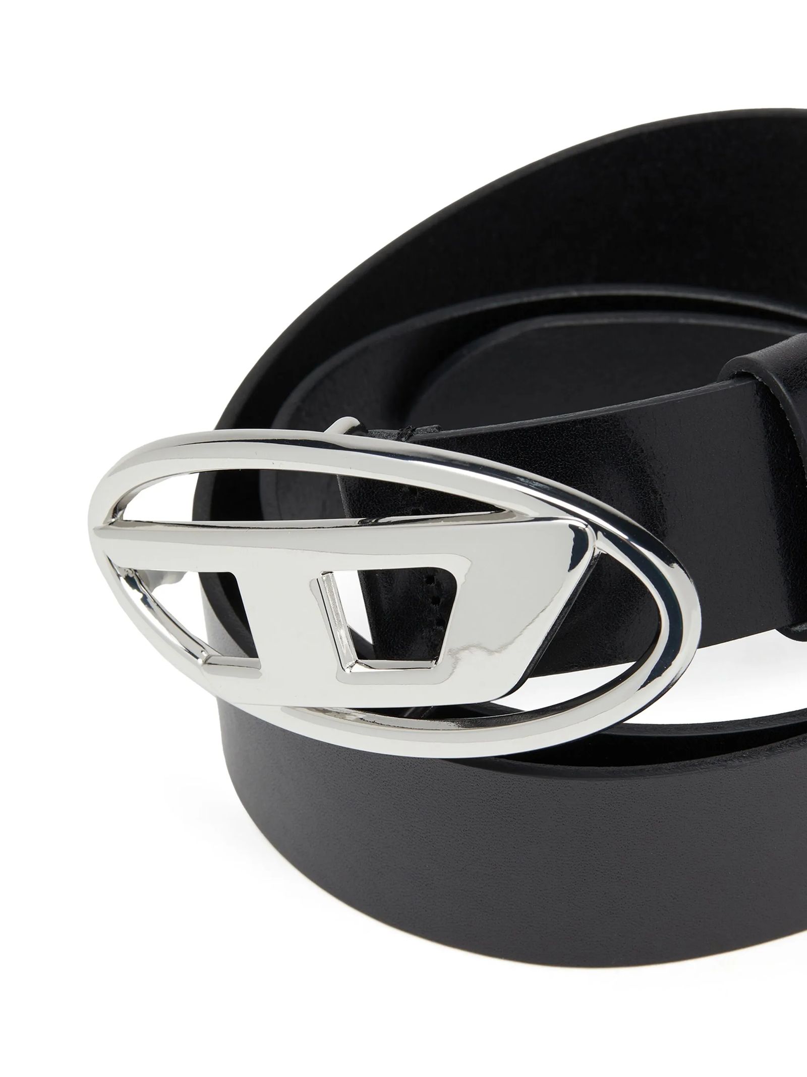 Black calf leather logo-buckle belt featuring logo buckle fastening, adjustable fit and rounded tip, Minimum Length 80 cm, TOTAL LENGTH 90 cm, WIDTH 5 cm