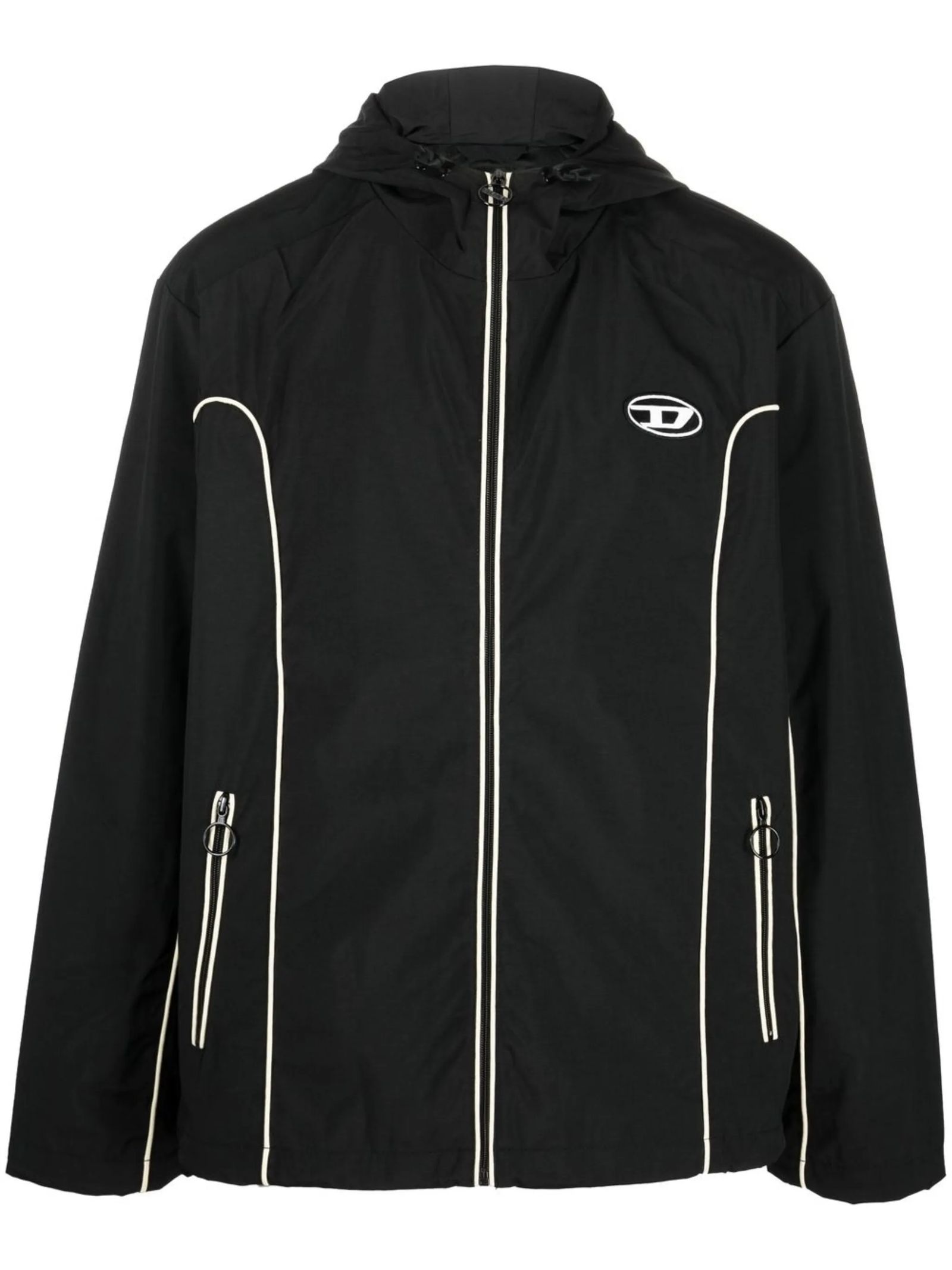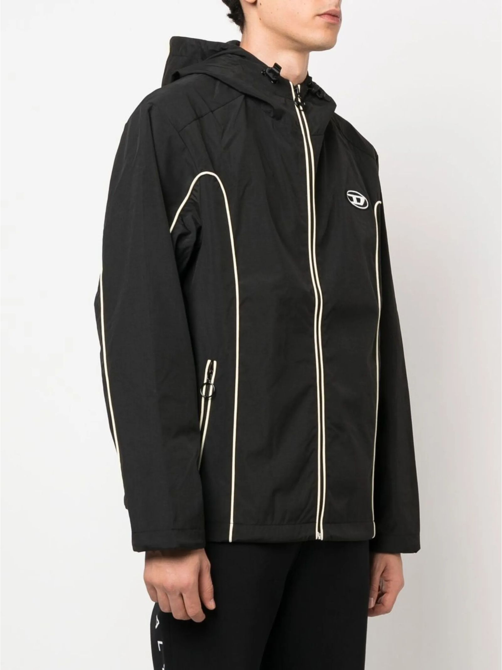 Black J-Hives logo-appliqué windbreaker, CORDURA® fabric, waterproof, front zip fastening, piped-trim detailing, drawstring hood, funnel neck, logo patch at the chest, long sleeves, drawstring cuffs, two side zip-fastening pockets, drawstring hem, mesh lining