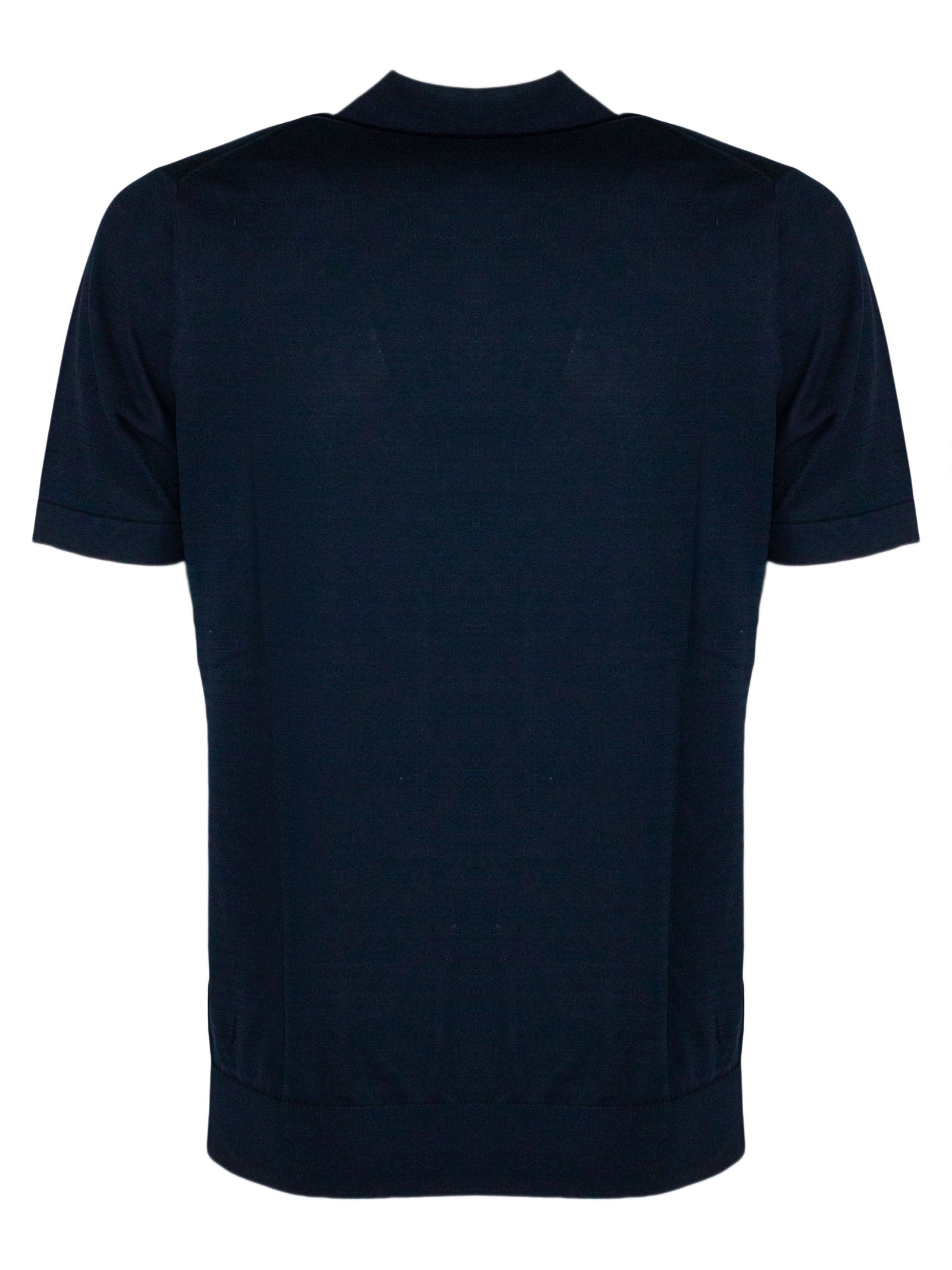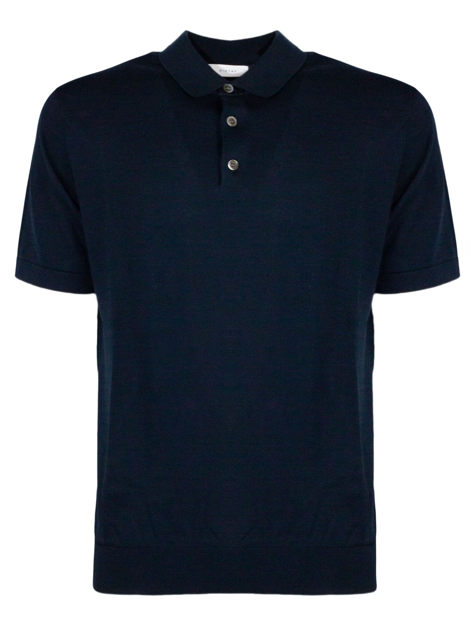 Dark blue cotton polo shirt with classic collar, short sleeves, button fastening, ribbed trim