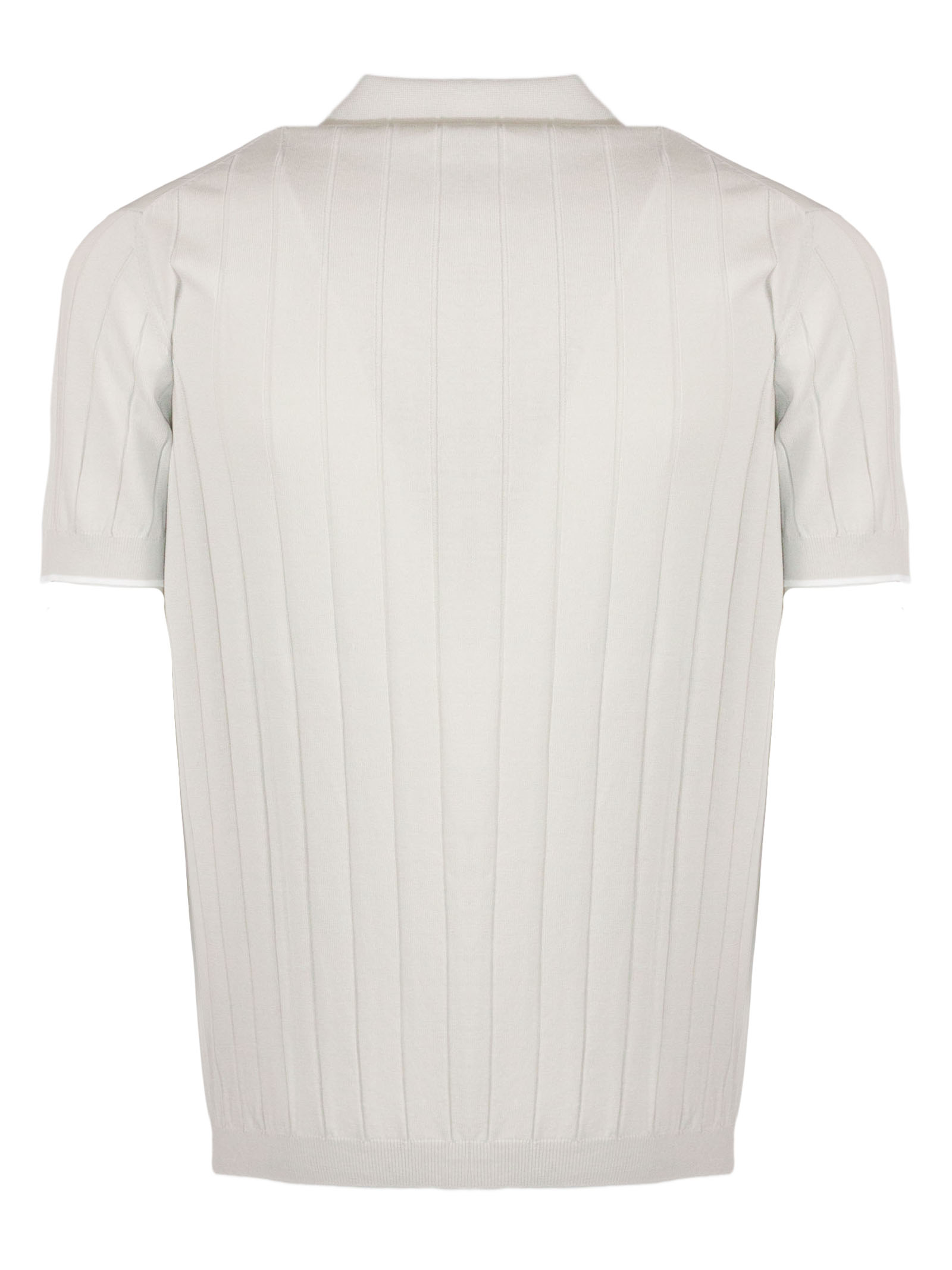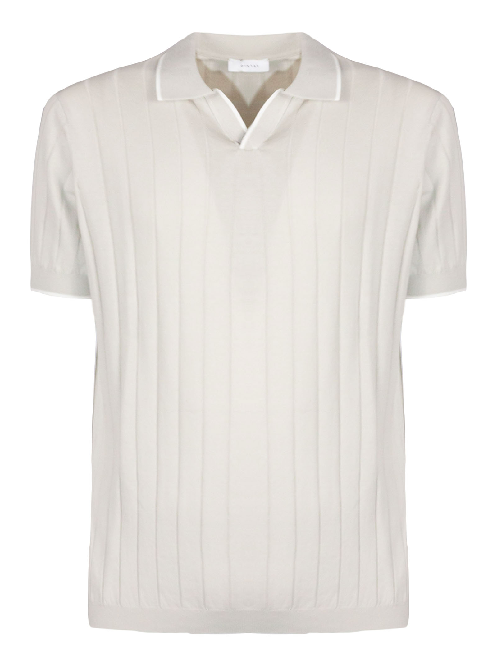 Light beige cotton polo shirt with ribbed design, classic ribbed collar without buttons, short sleeves, ribbed trim