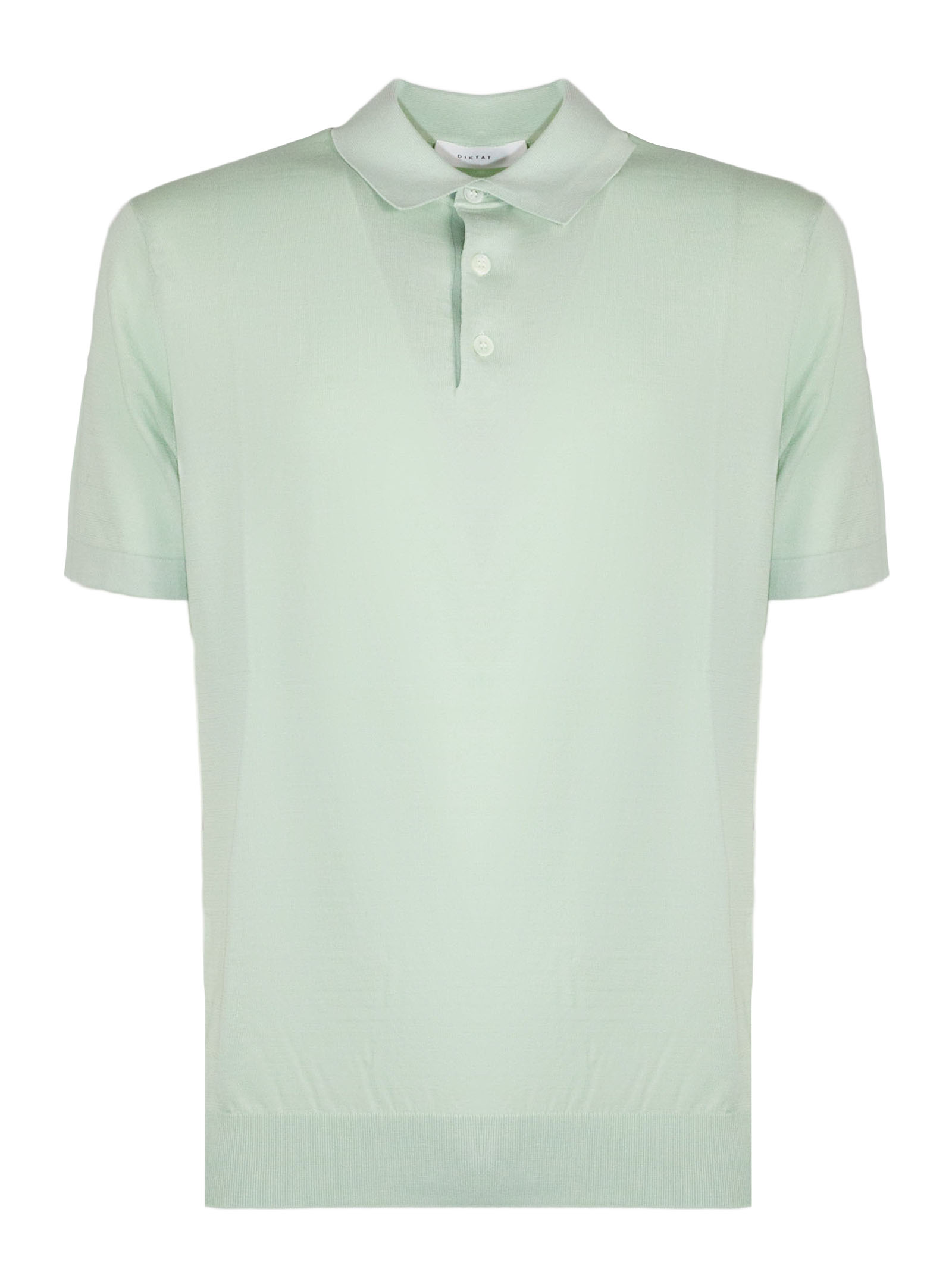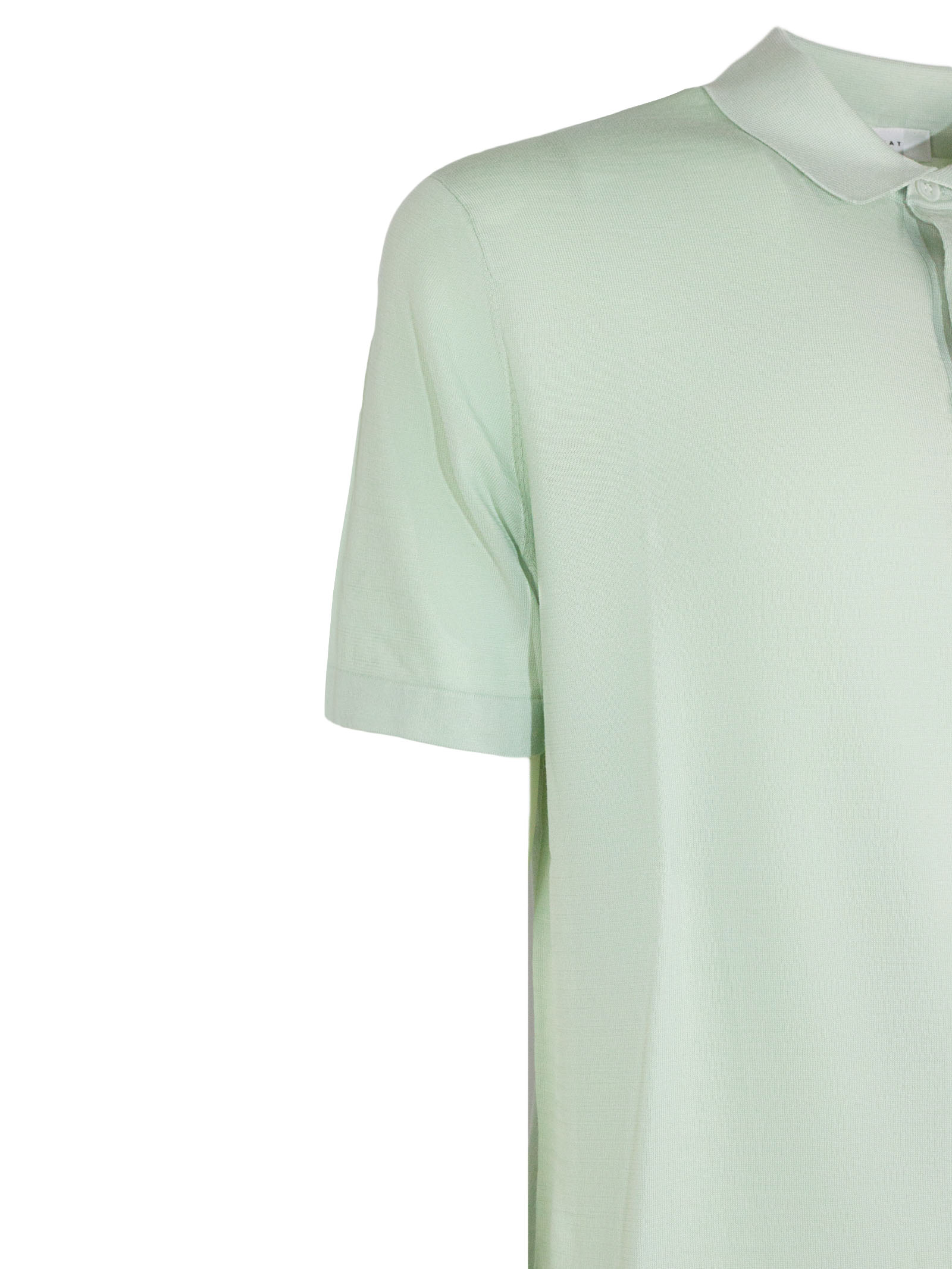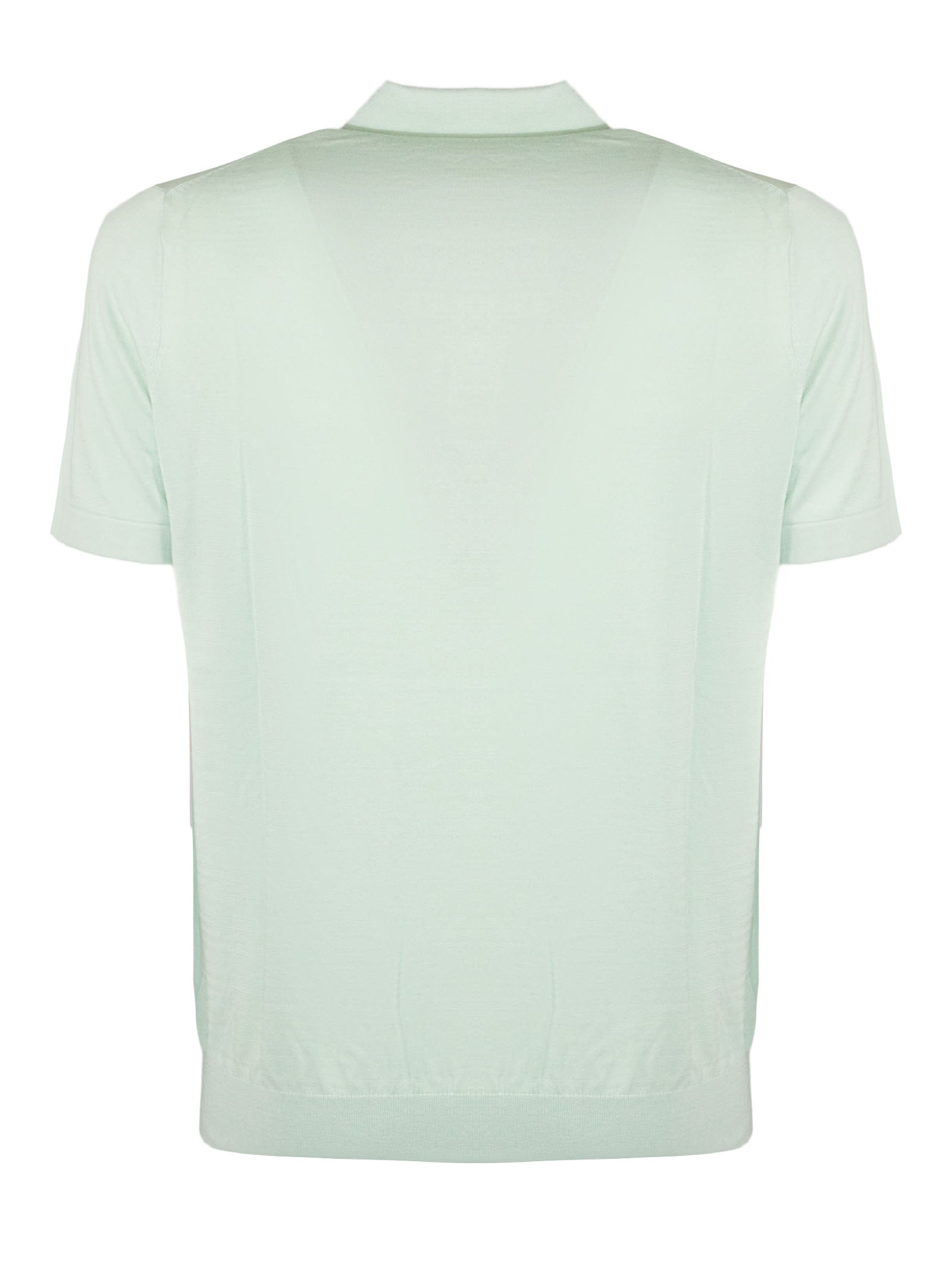 Light green cotton polo shirt with classic collar, short sleeves, button fastening, ribbed trim