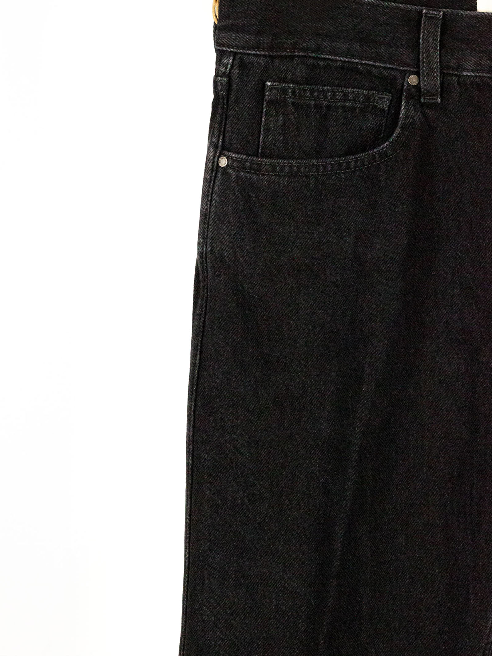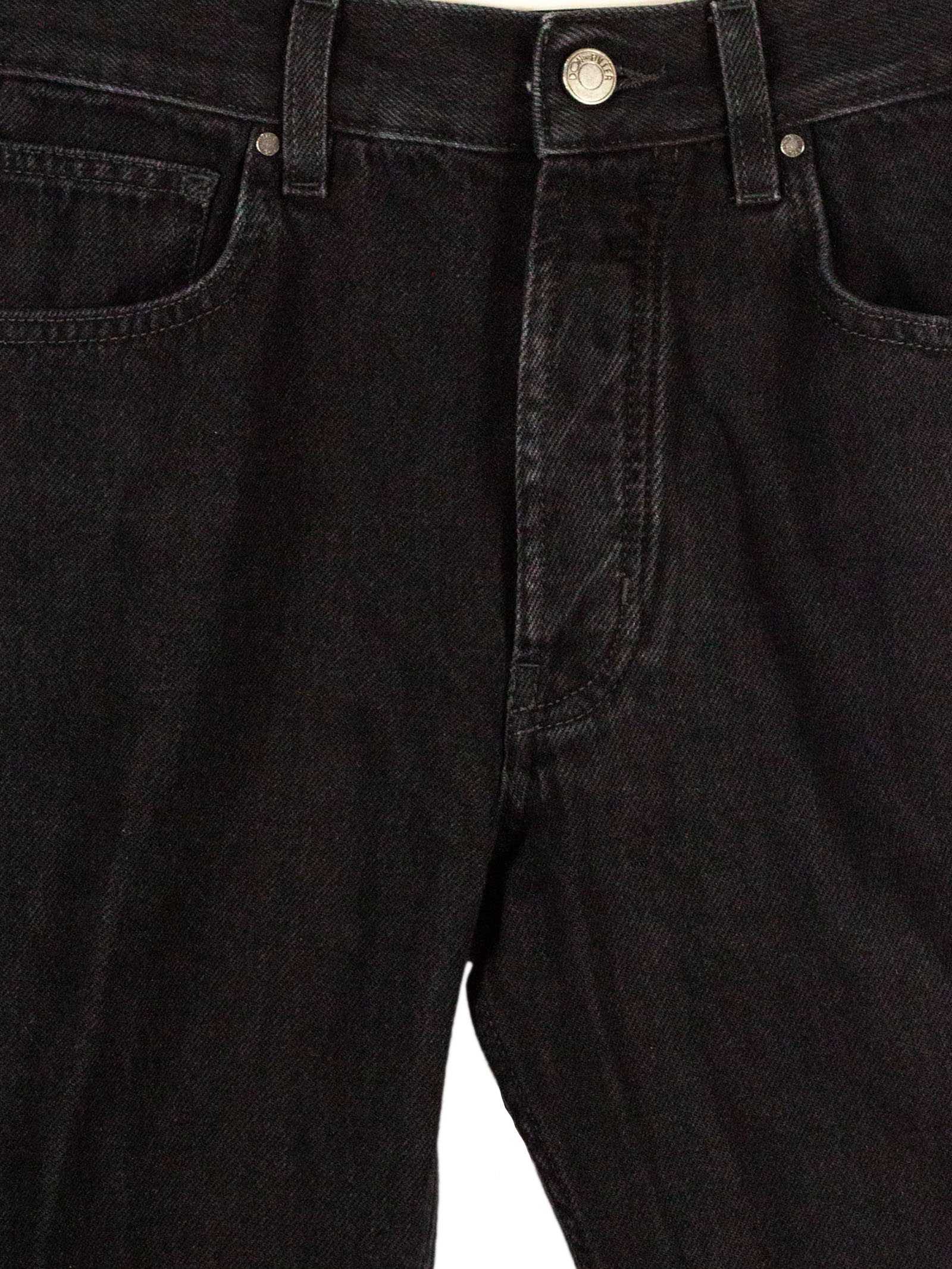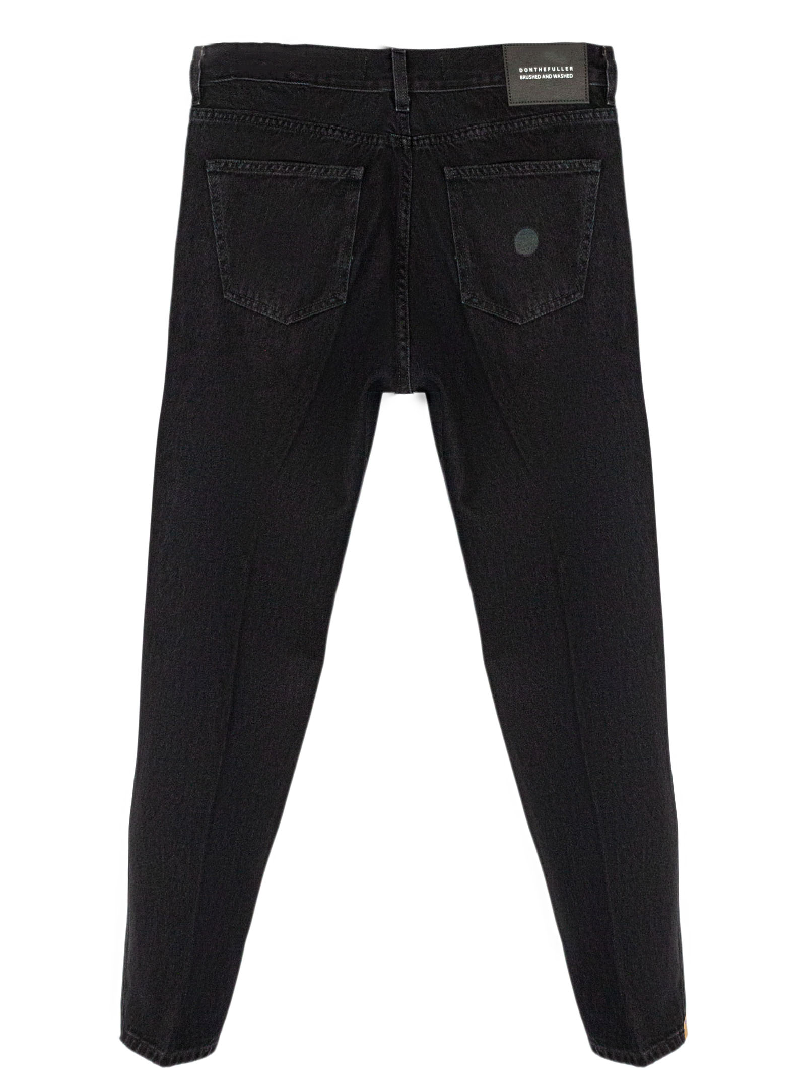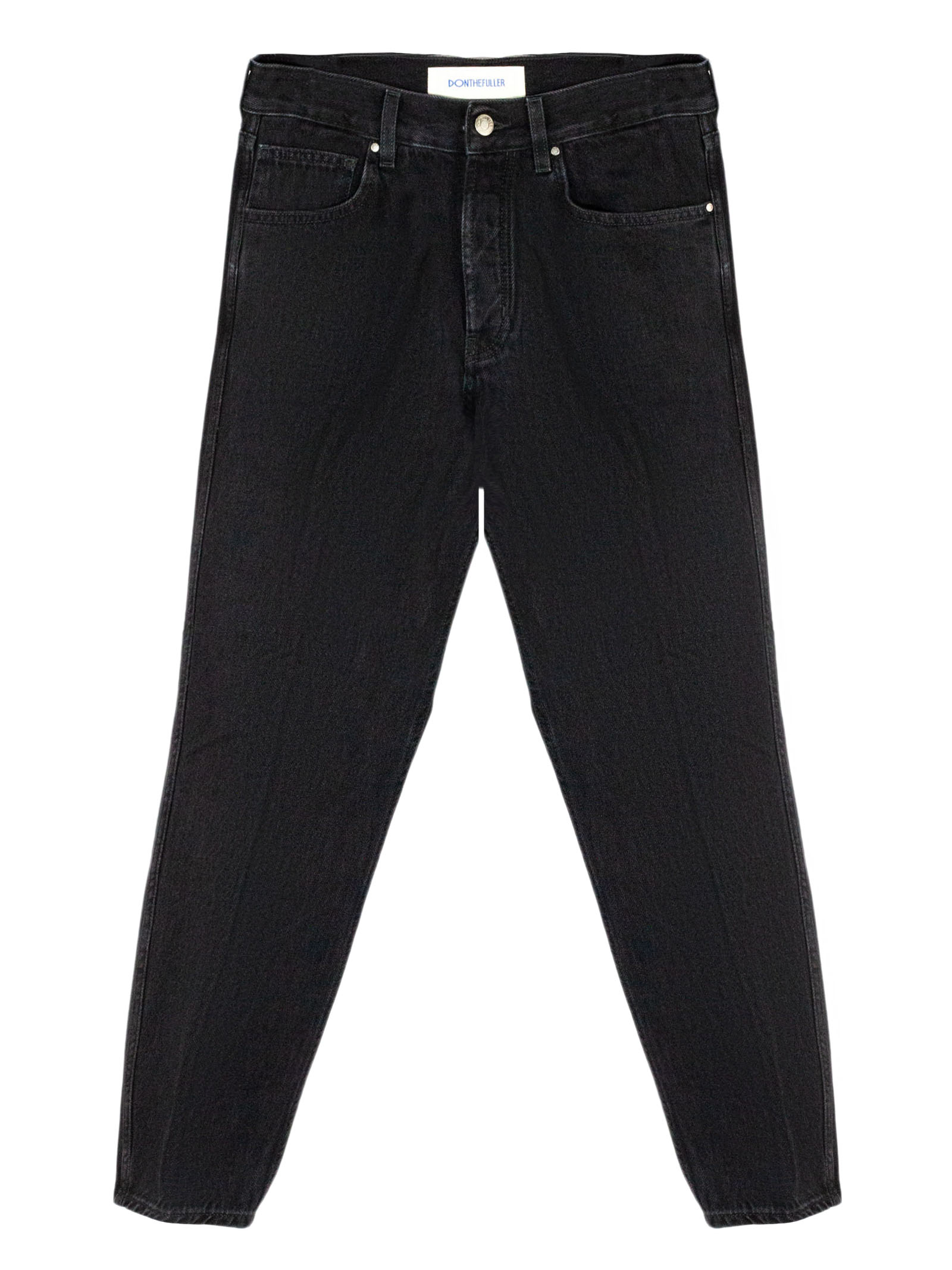 Seoul jeans in black cotton, carrot fit, vintage nickel button, black Jacron label, Jacron seal, Cotton 100%