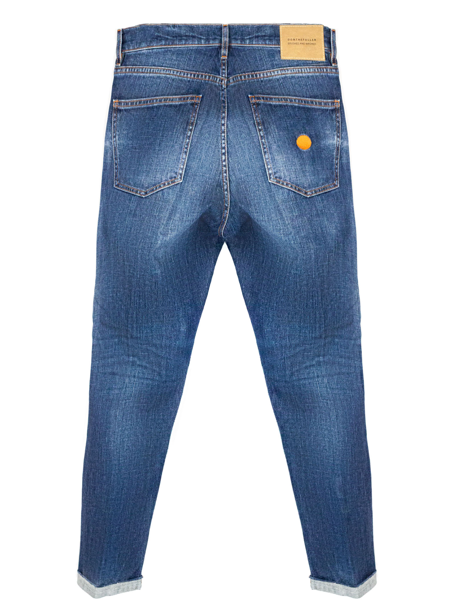 Tyler jeans in blue cotton, carrot fit, vintage nickel button, Jacron label, Jacron seal, Cotton 99% Elastane 1%