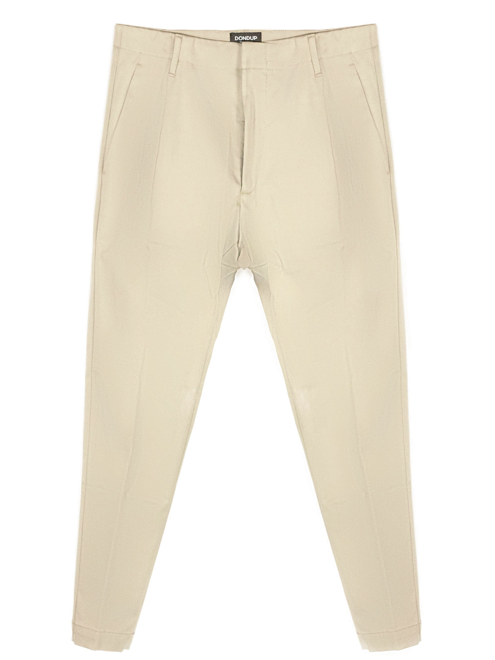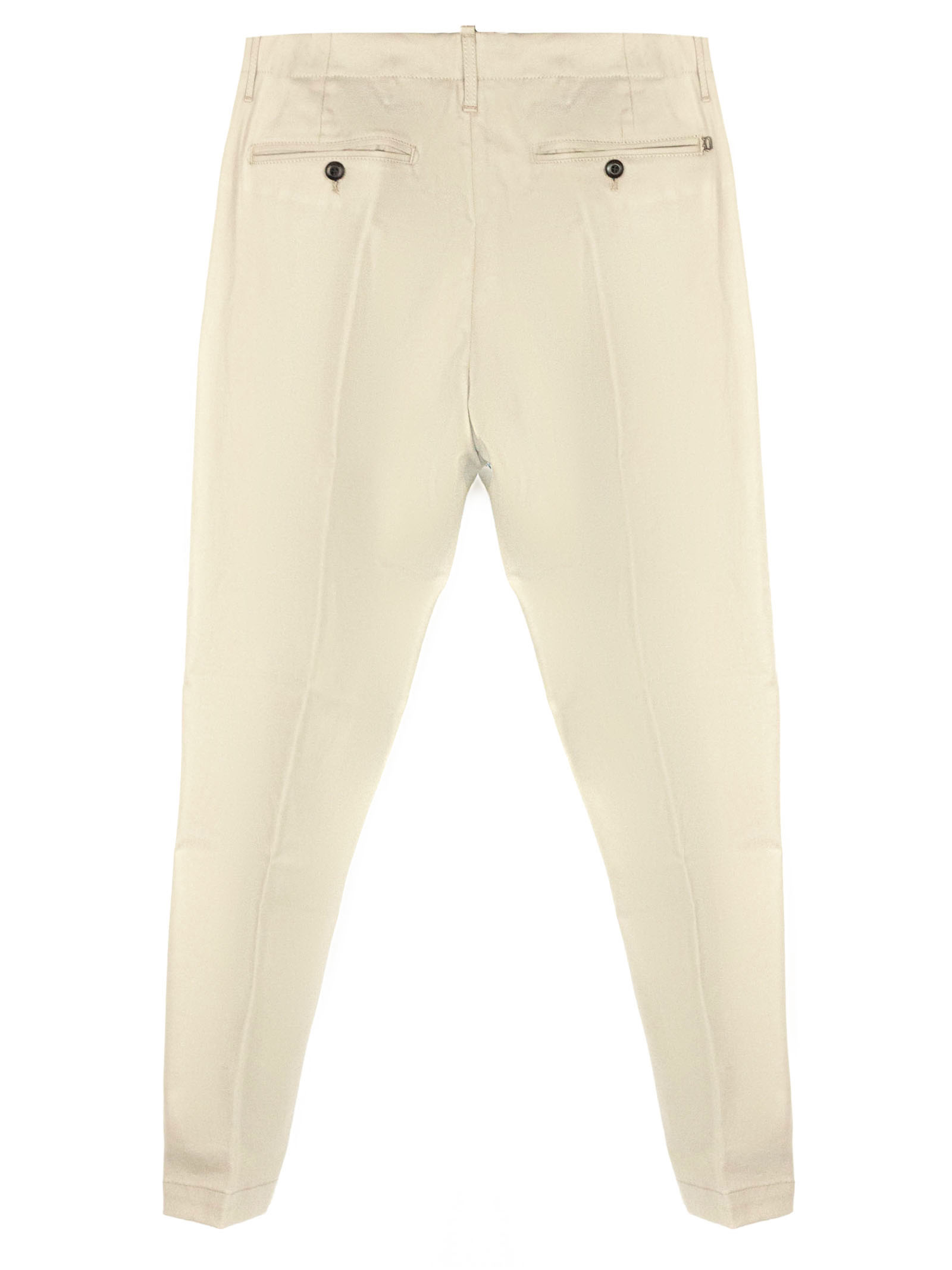 Beige cotton and cashmere blend trousers, chino style with zip and button fastening, single pleat, belt loops, French side pockets and back pockets embellished with a mini metal logo appliqué, 96%Cotton 3%Cashmere 2%Elastane