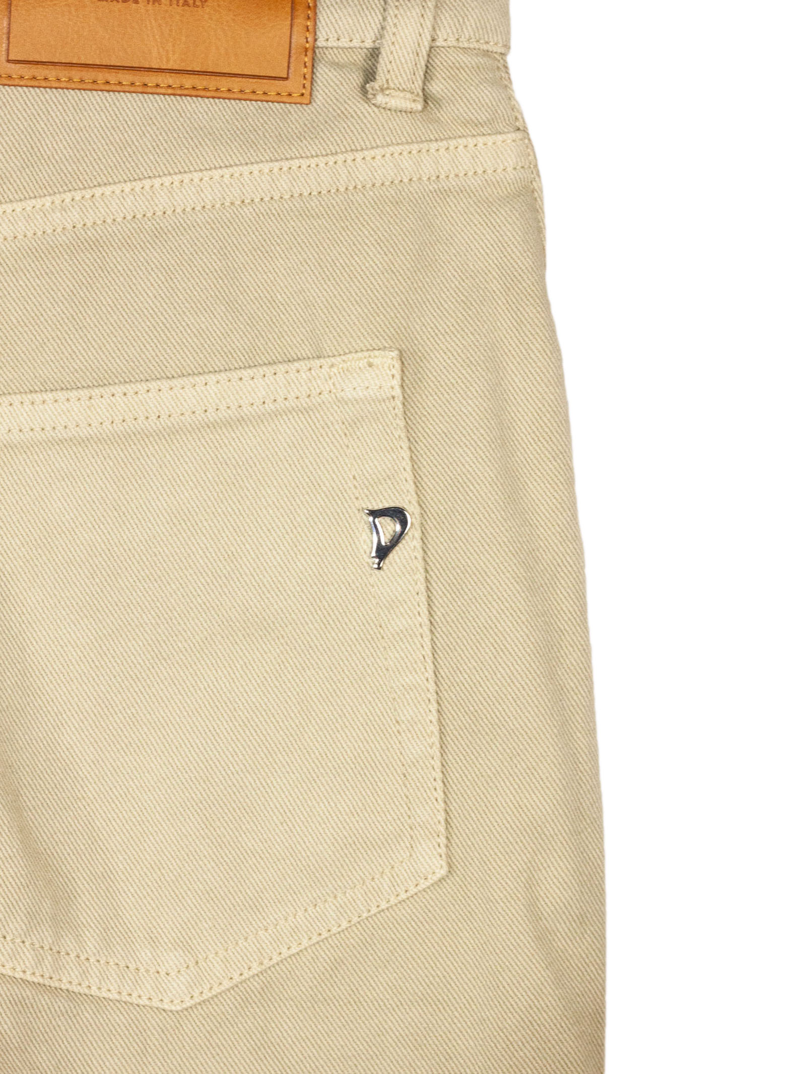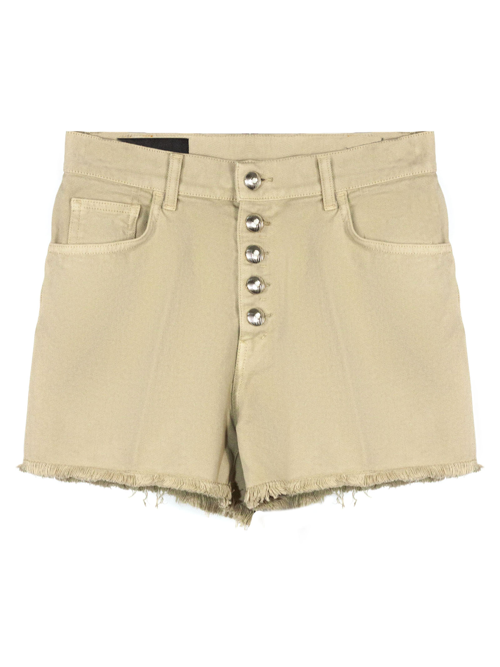 Beige denim shorts with front button fastening, belt loops, 5 pockets, fringe detail, 98%Cotton 2%Elastane