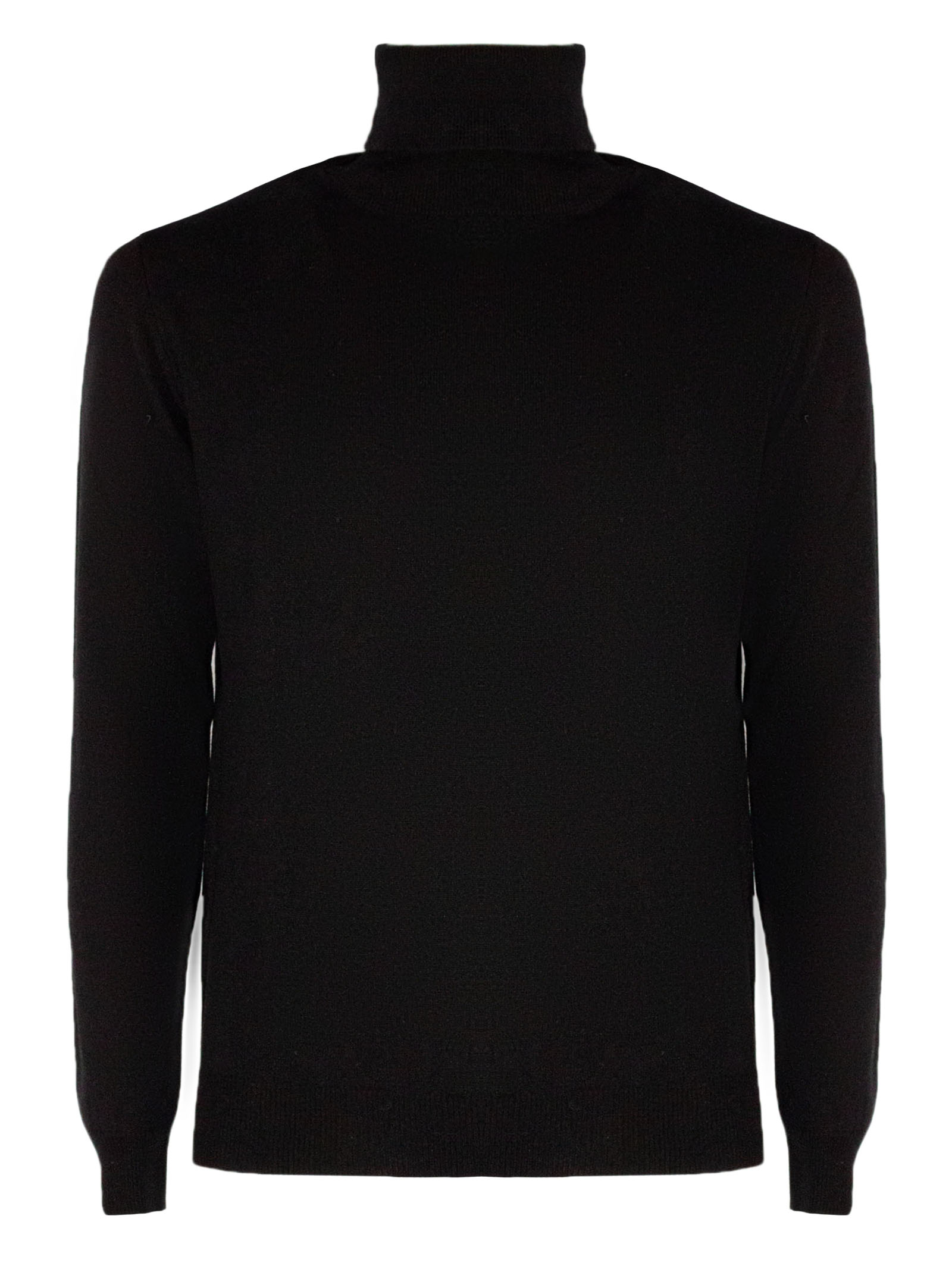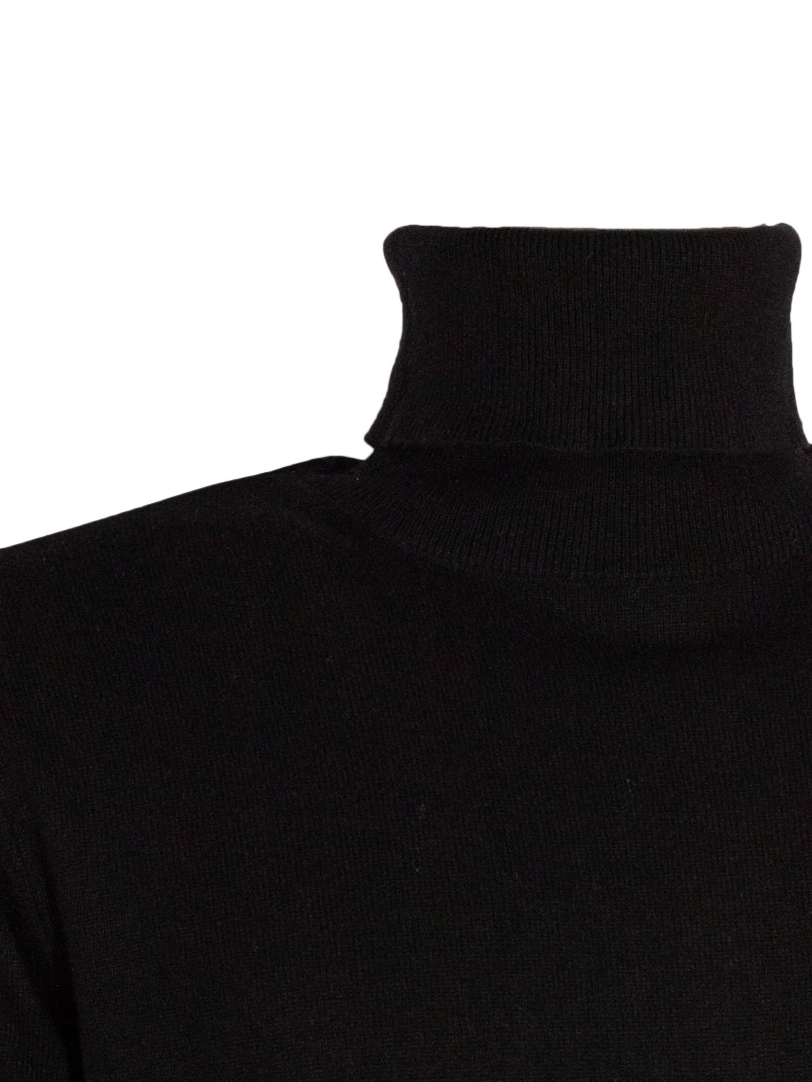 Black cashmere and silk blend jumper with a high neck, ribbed trim and long sleeves