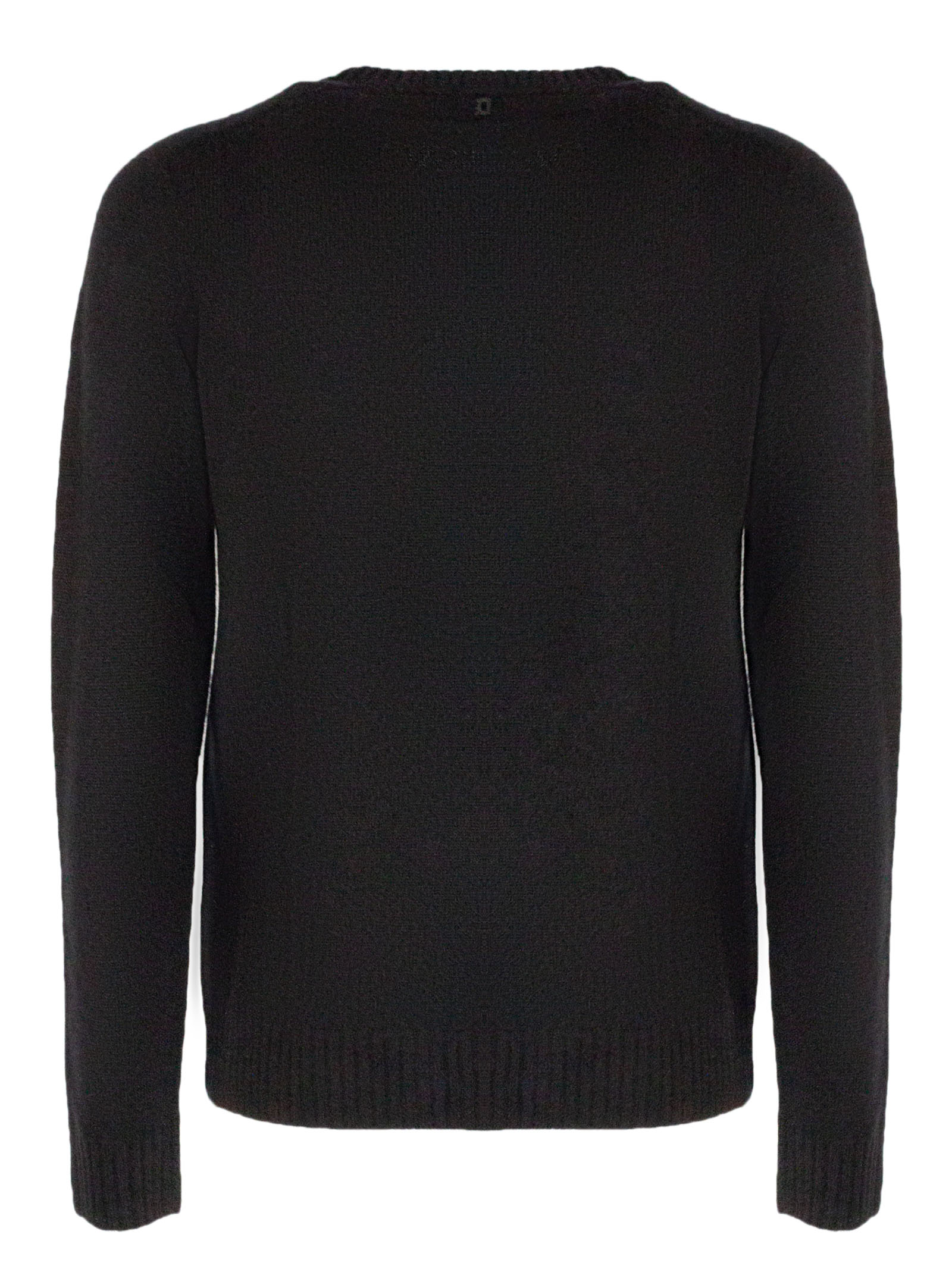 Black wool and cashmere blend jumper with a crew neck, long sleeves and ribbed trim