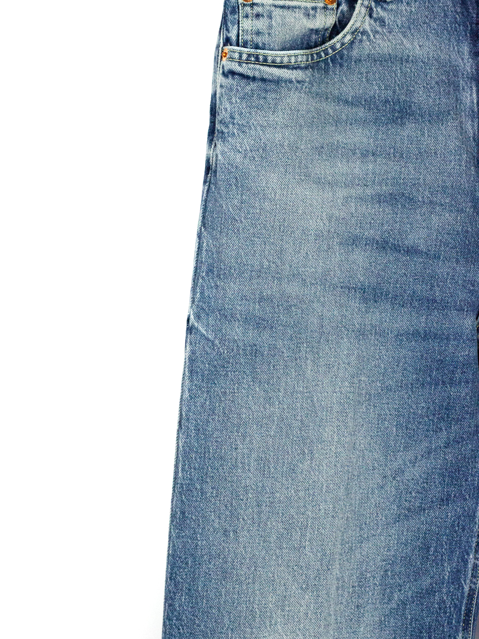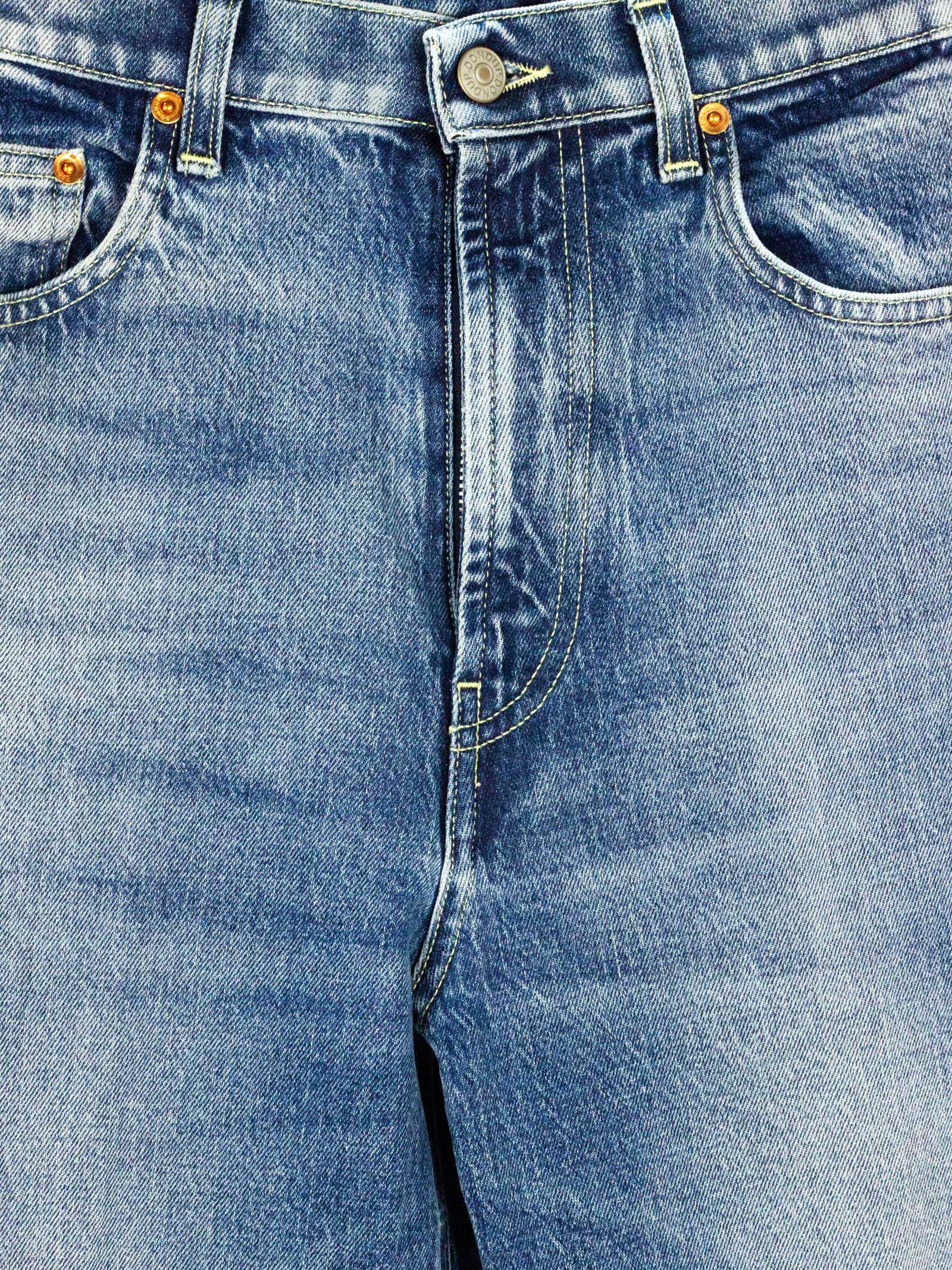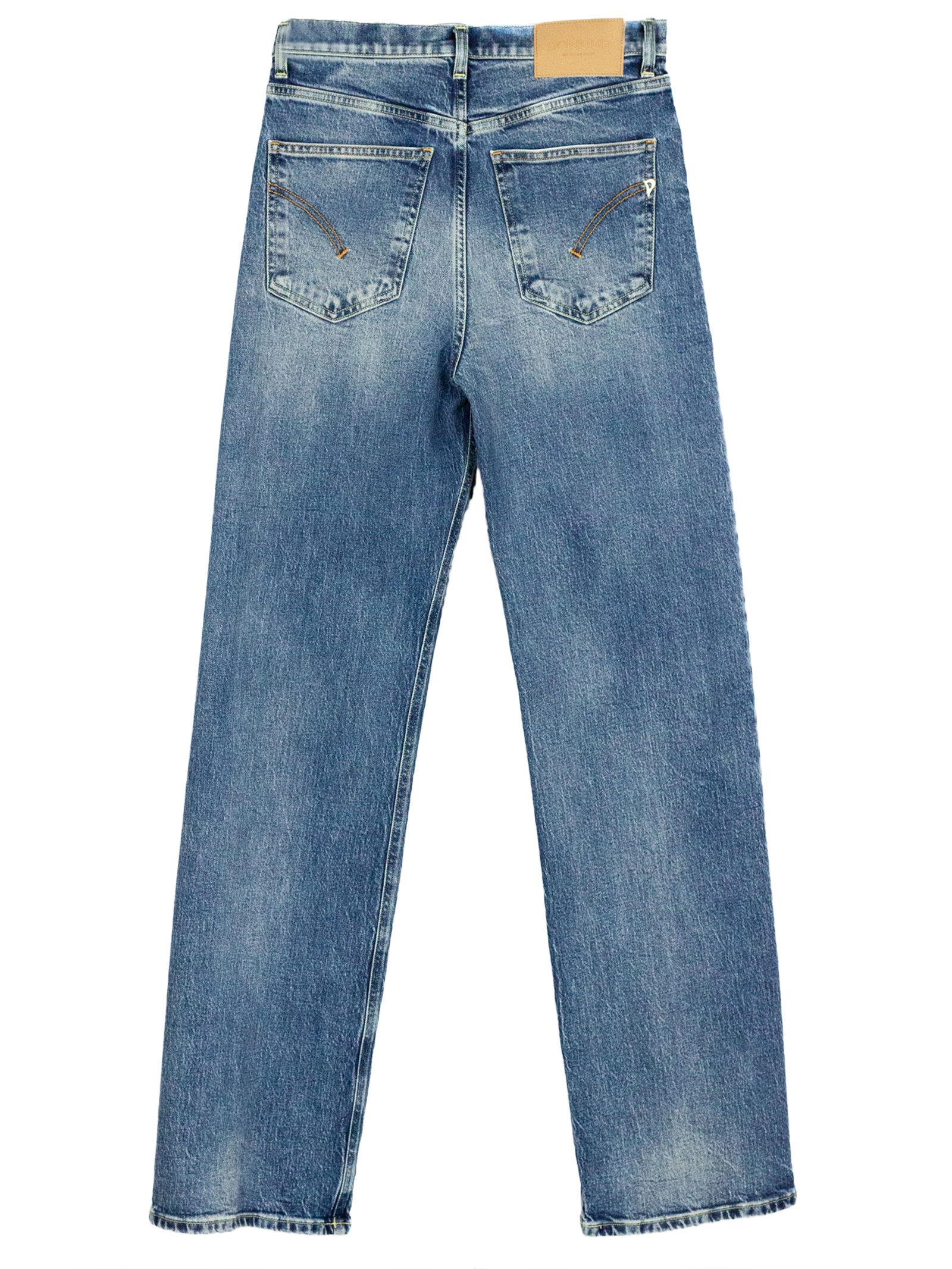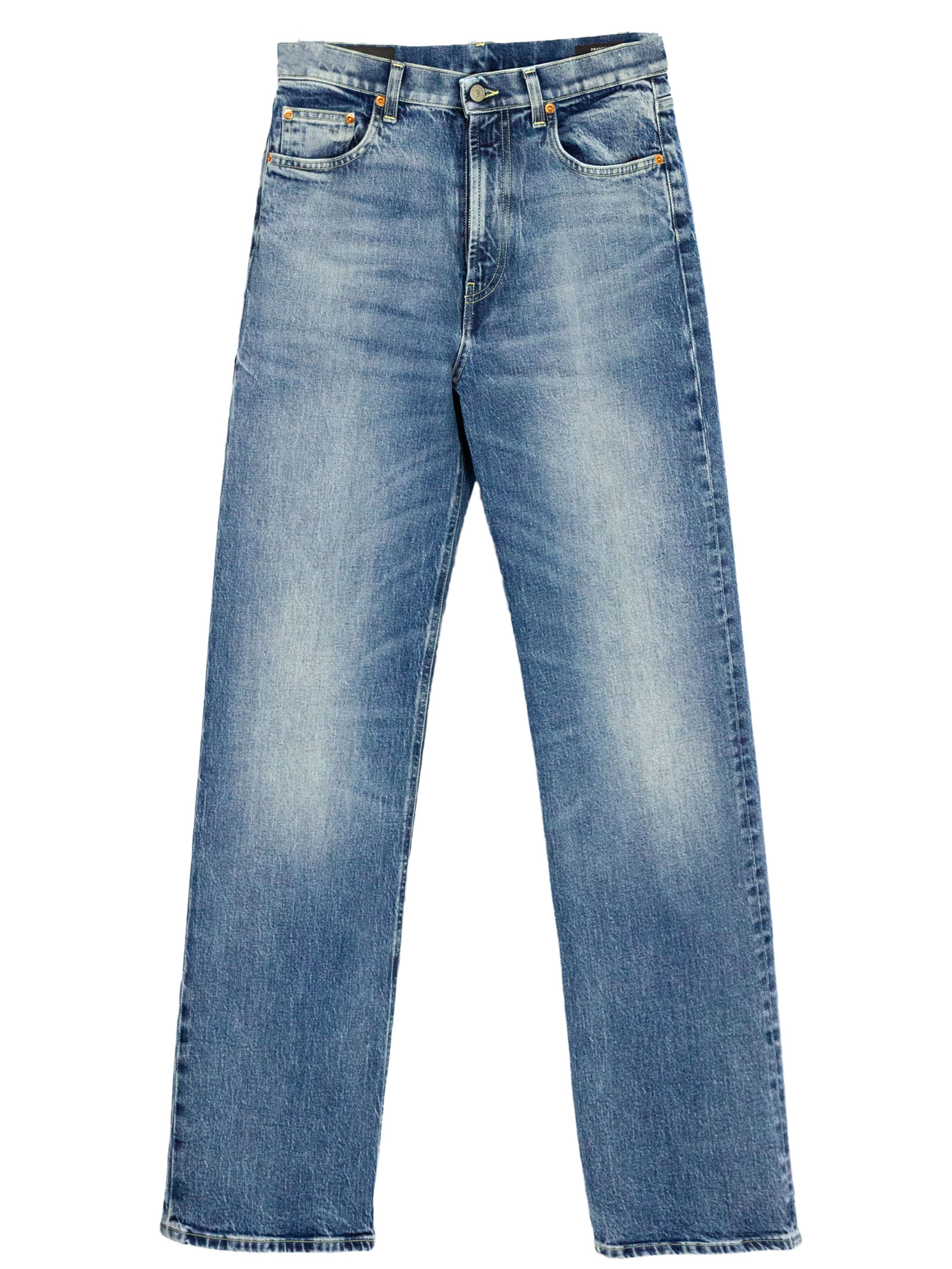 Francine jeans in light blue cotton denim, wide leg, 5 pockets, metal logo patch