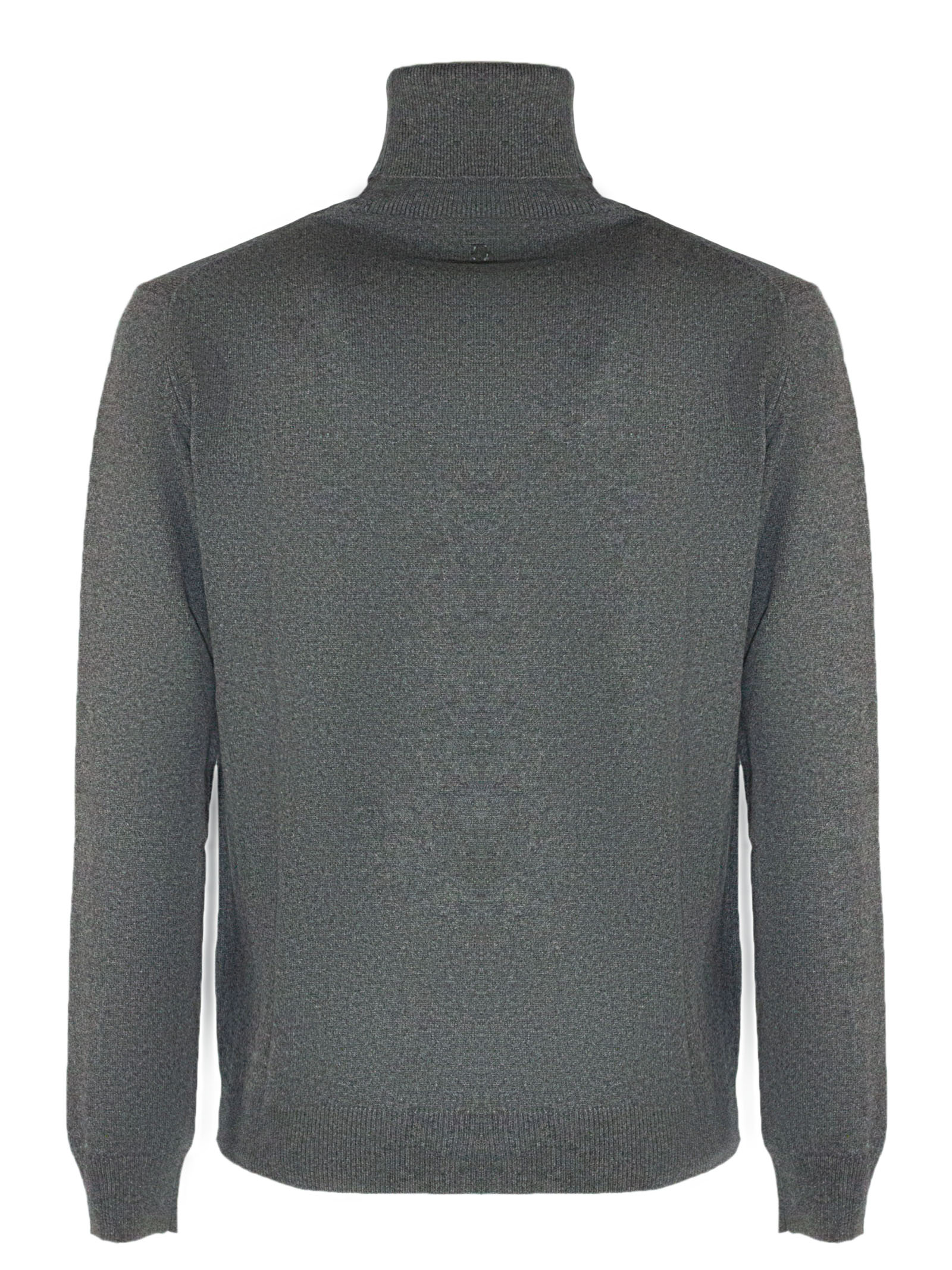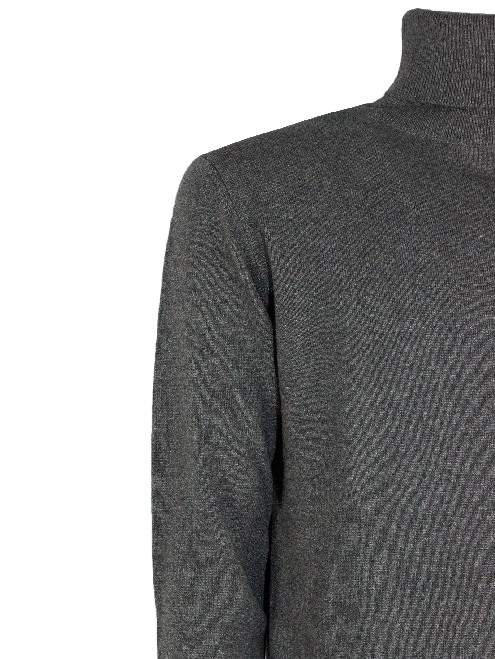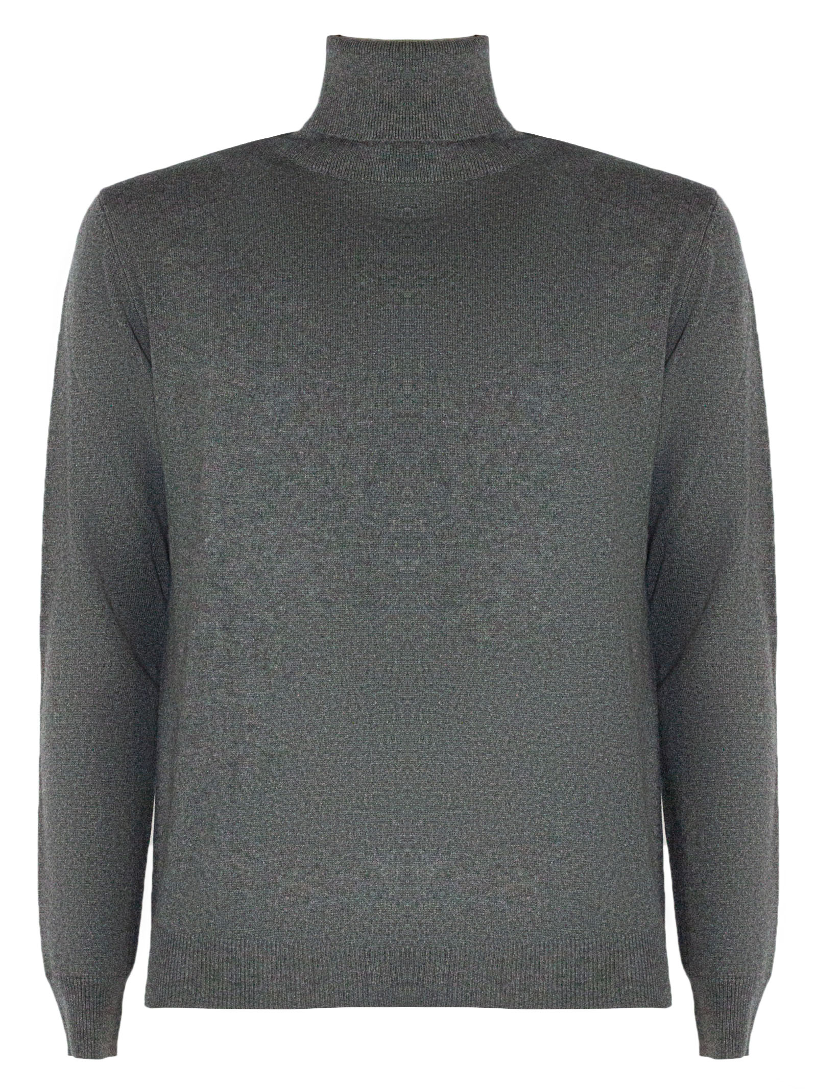 Grey cashmere and silk blend jumper with a high neck, ribbed trim and long sleeves
