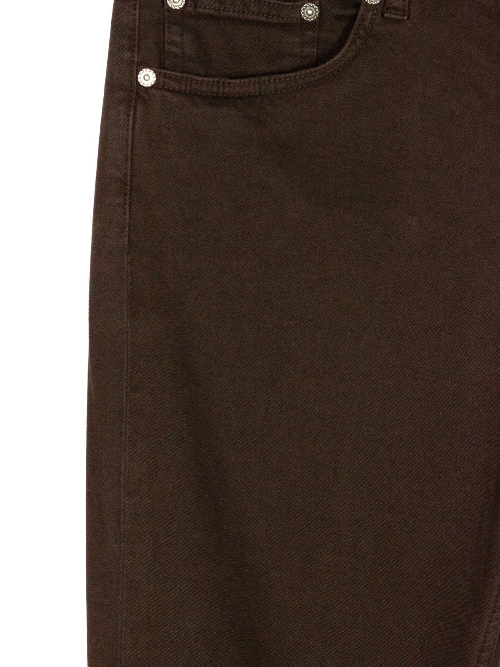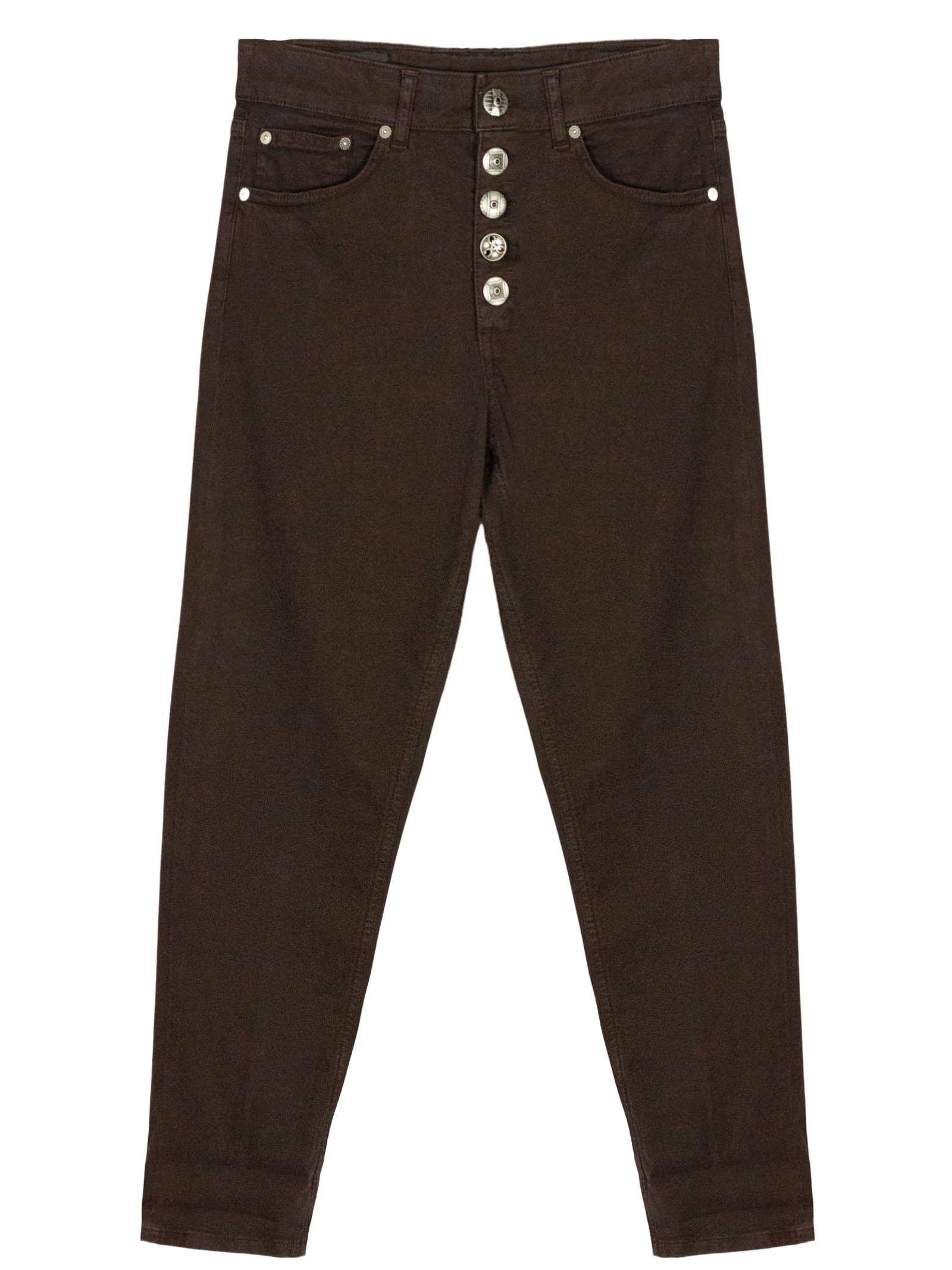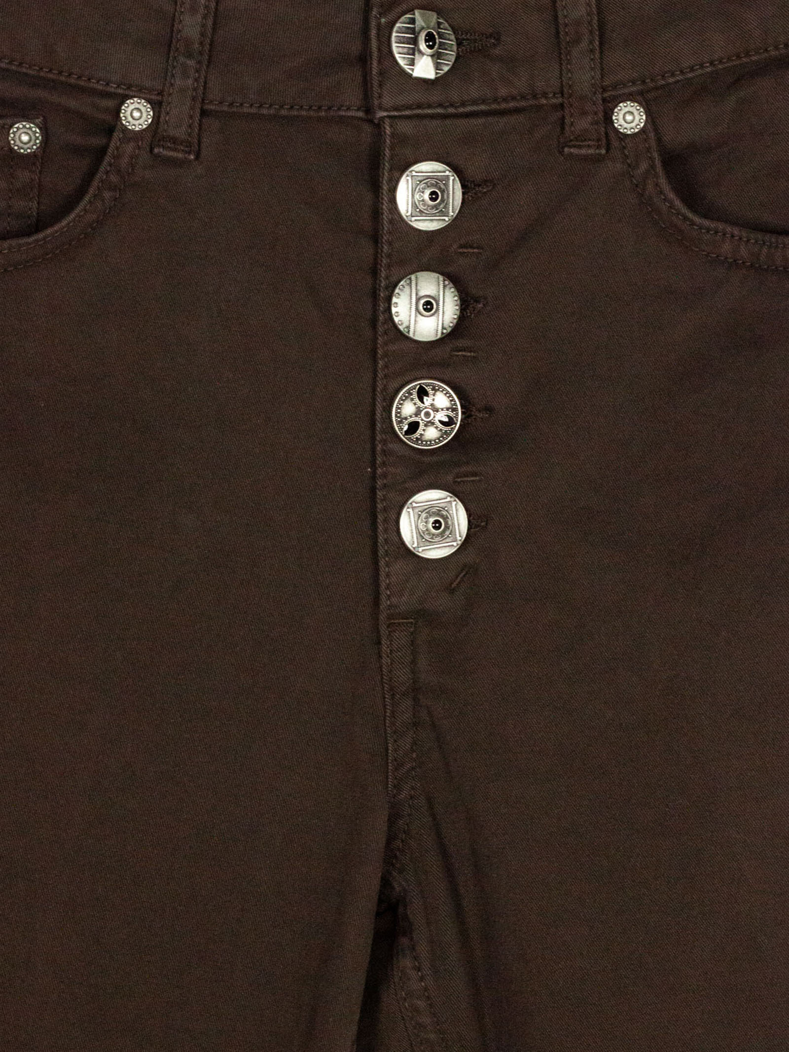 Koons jeans in brown cotton denim with silver-coloured metal buttons, loose fit, 5 pockets, belt loops, metal logo on the back