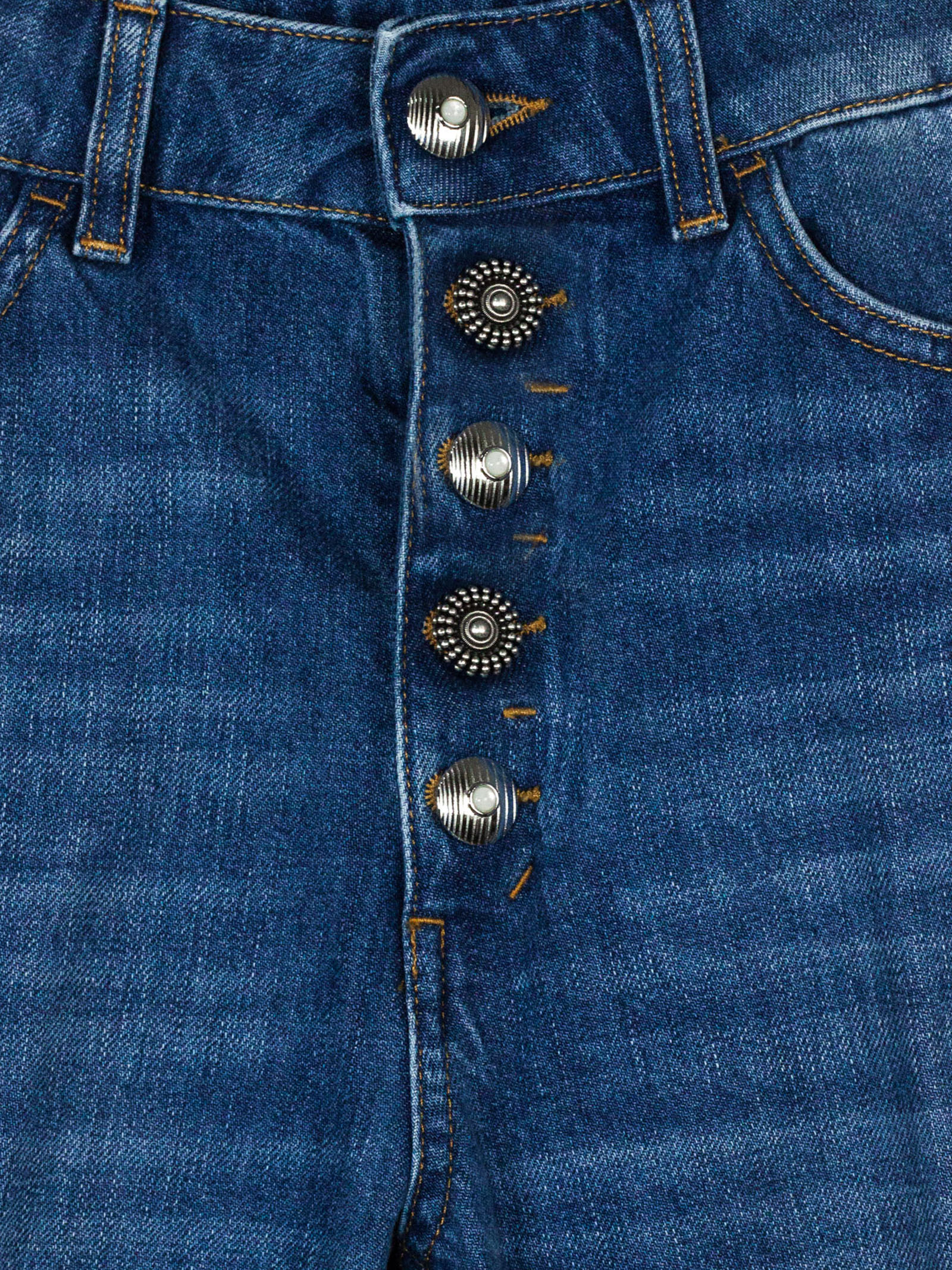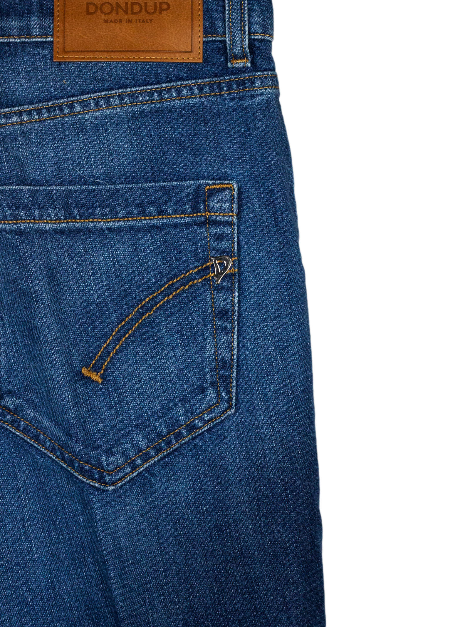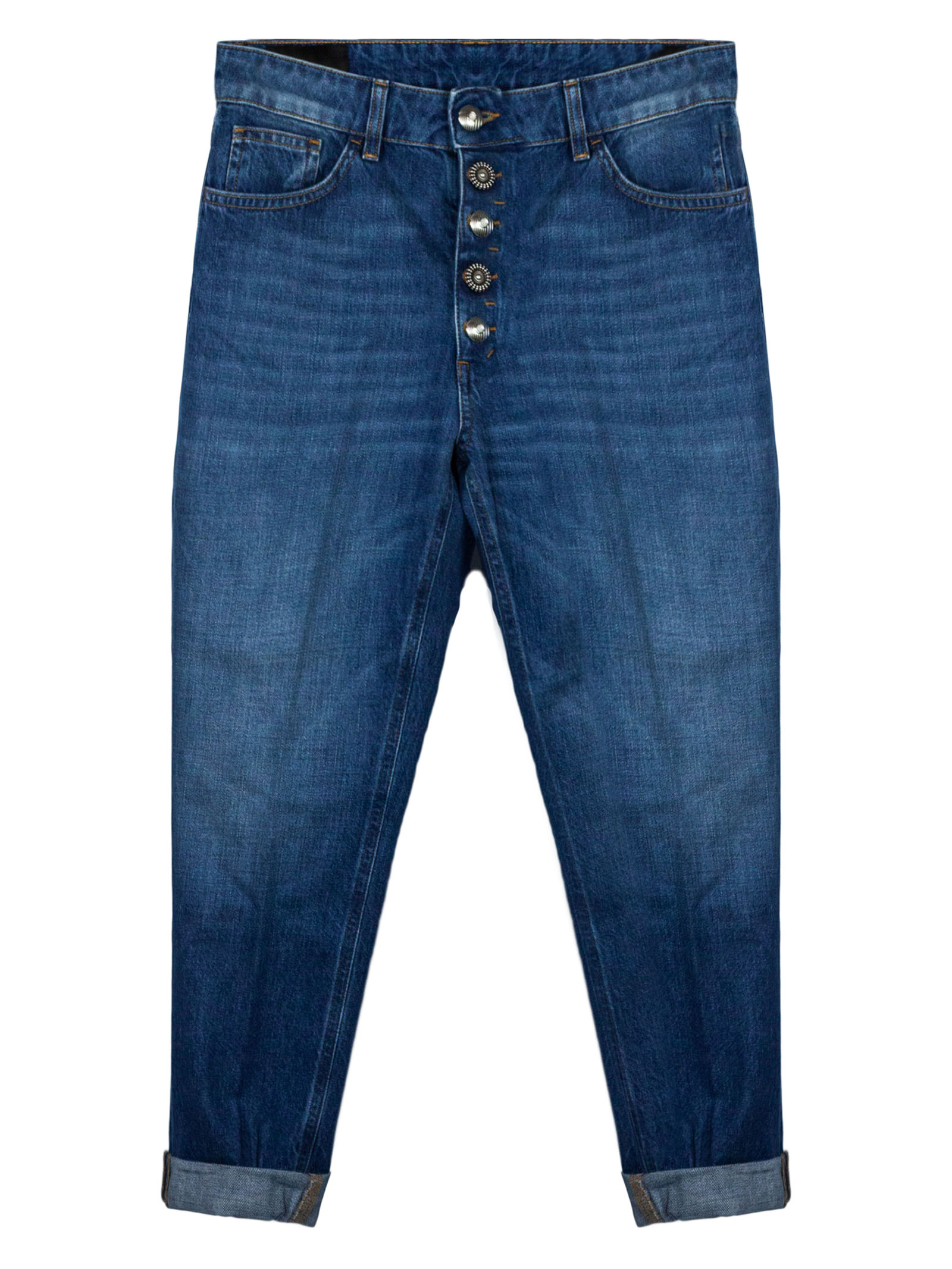 Loose Fit Jeans in indigo blue denim, 5 pockets, belt loops, metal logo detail, 100%Cotton