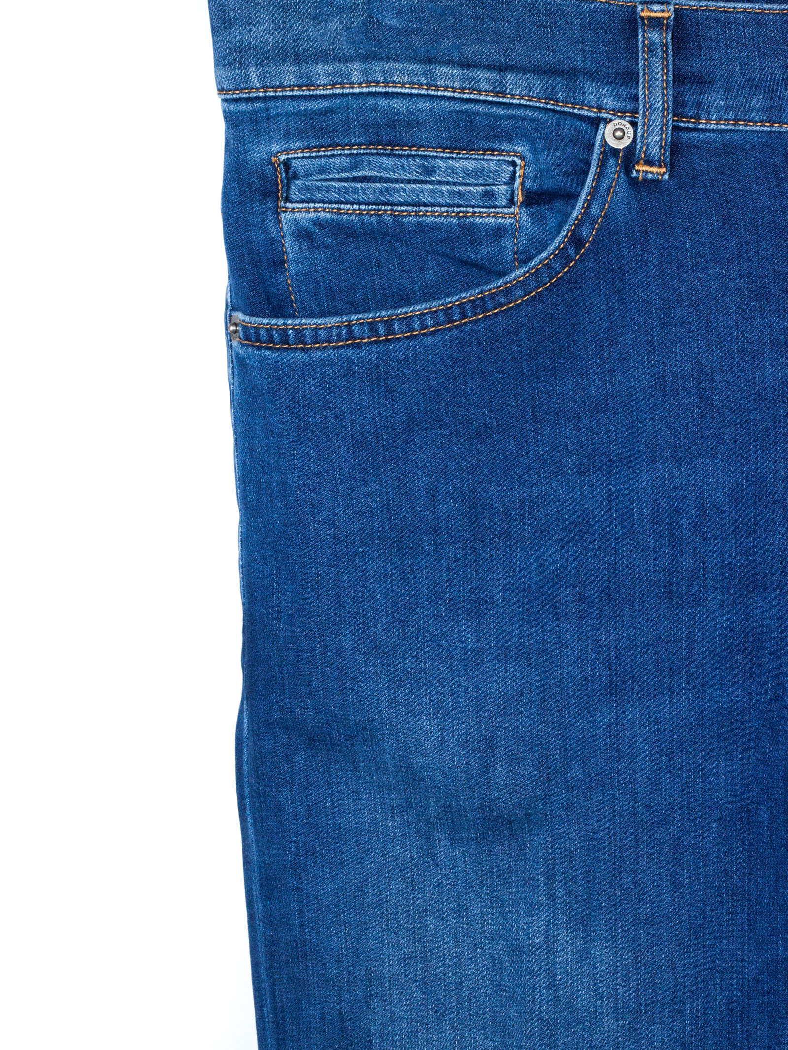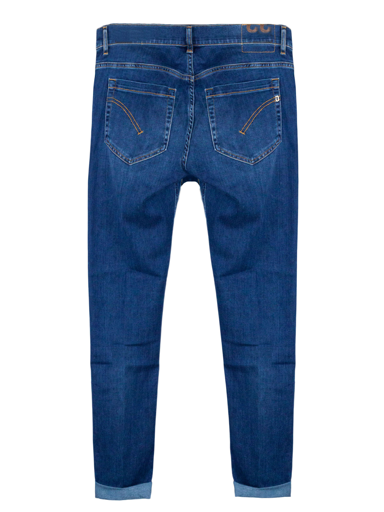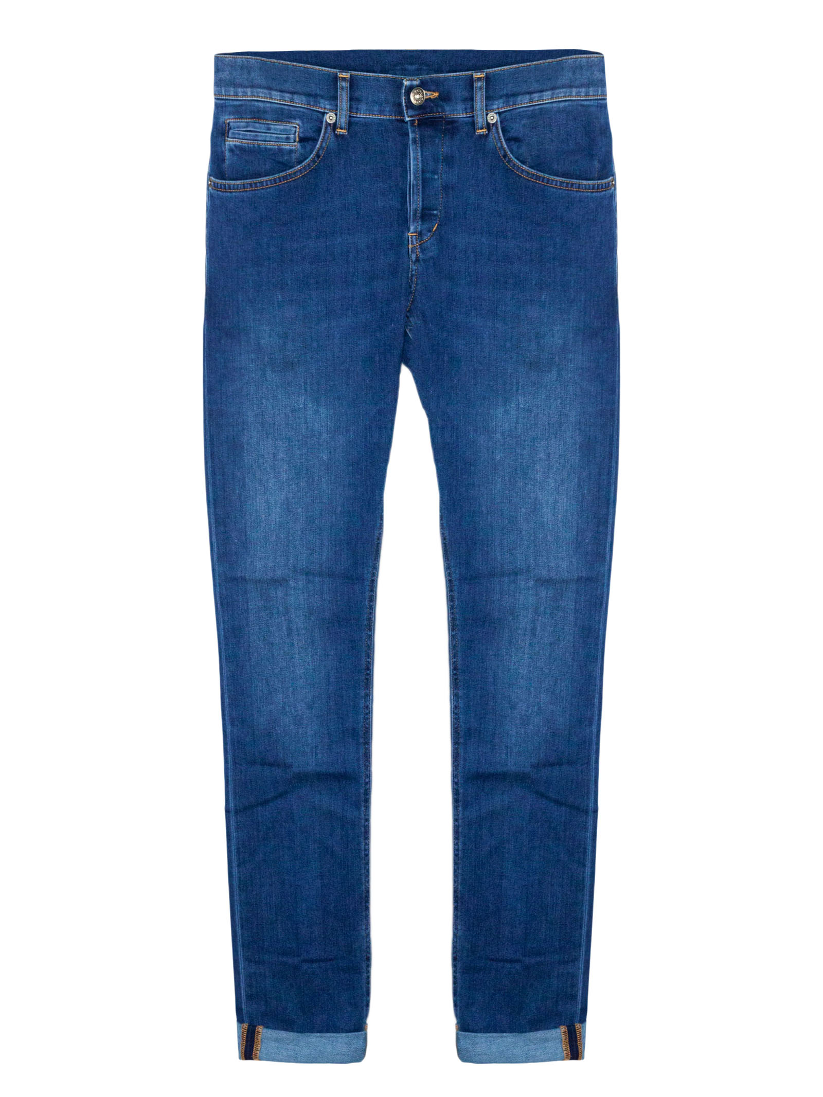 Skinny fit jeans in blue cotton denim with belt loops, front button fastening, 5 pockets, metal logo detail on the back, 79%Cotton, 14%Polyester, 7%elastane