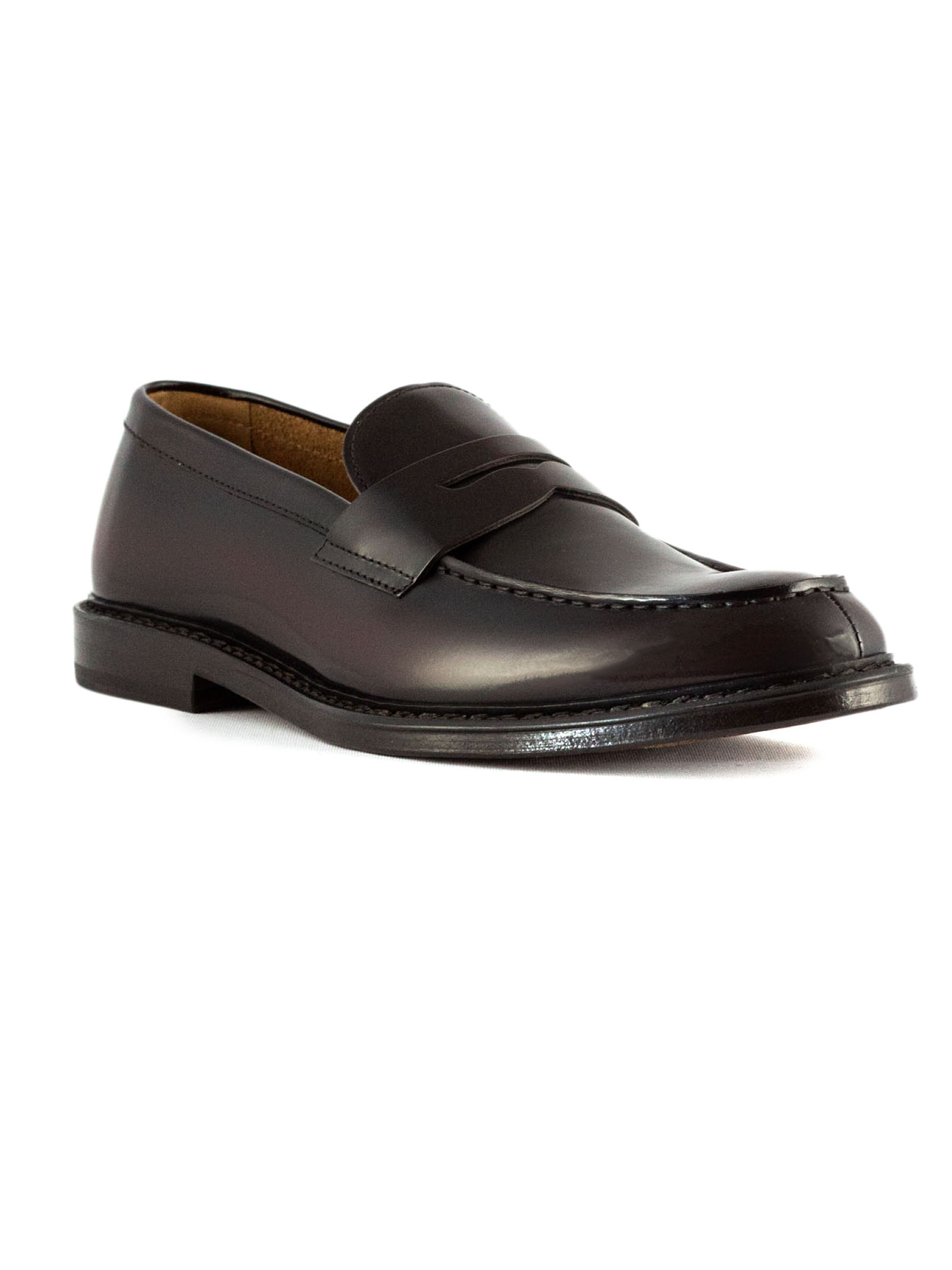 Dark brown leather loafer, welted construction, leather sole and Blake stitching, Leather 100%