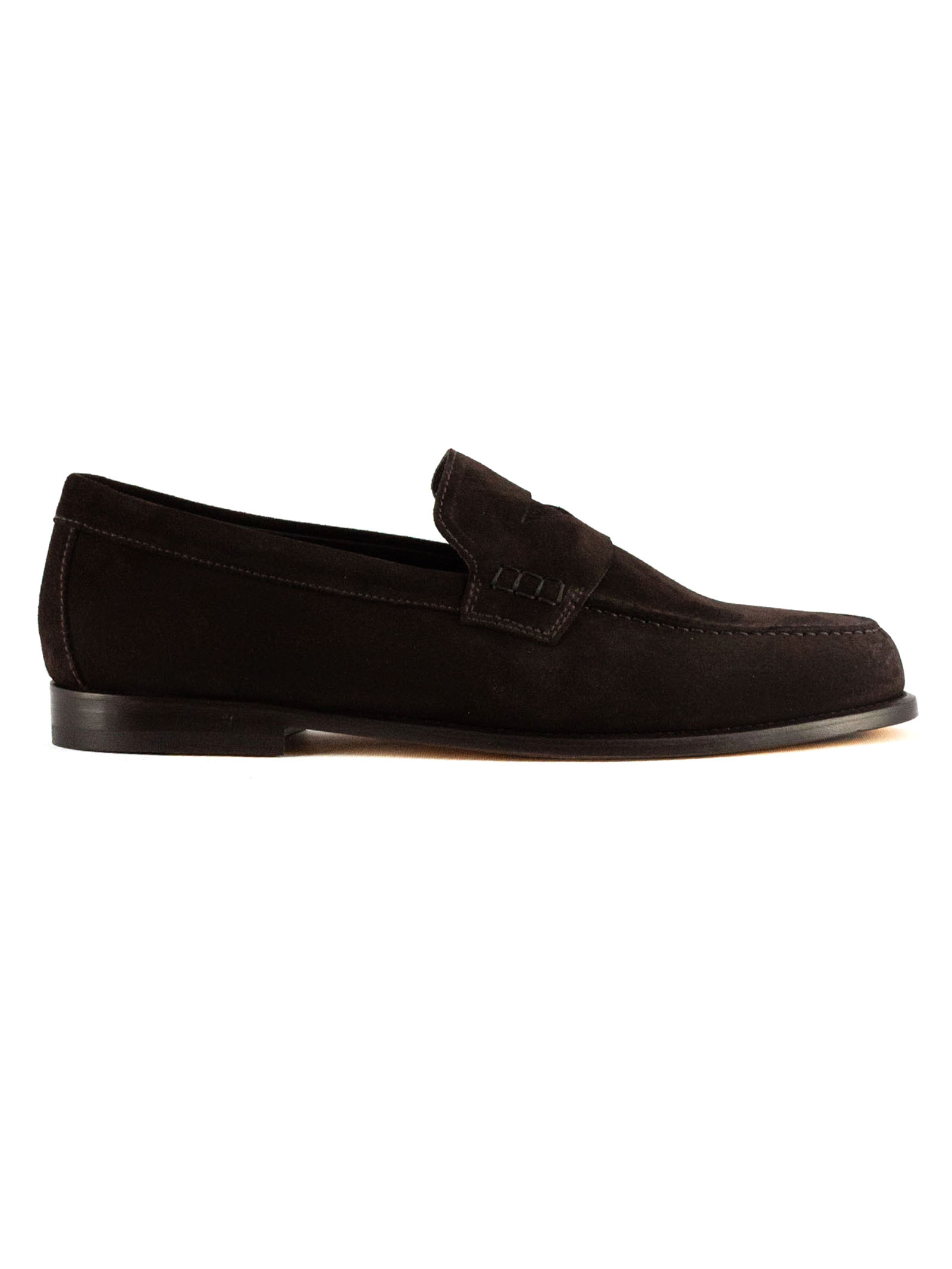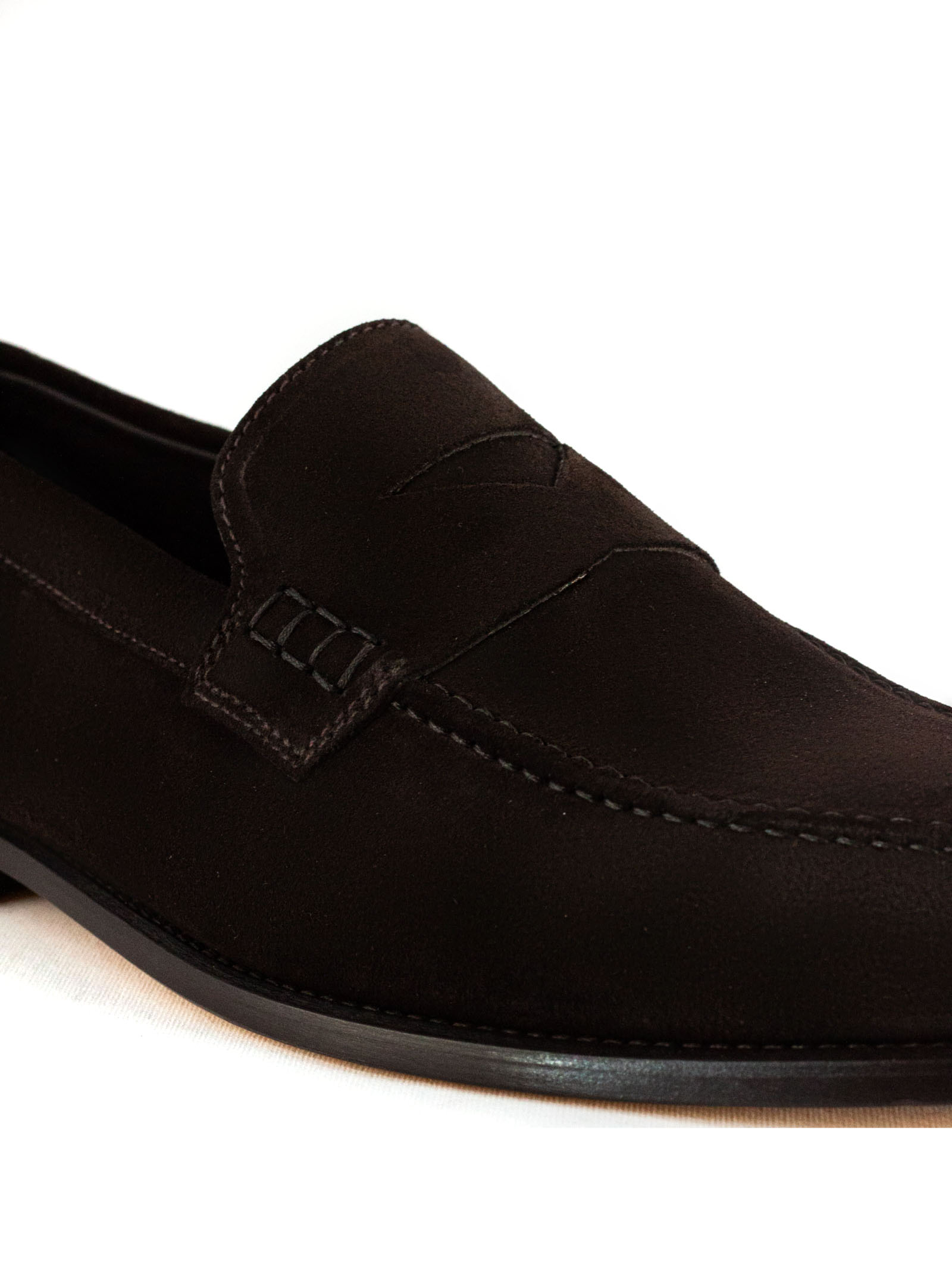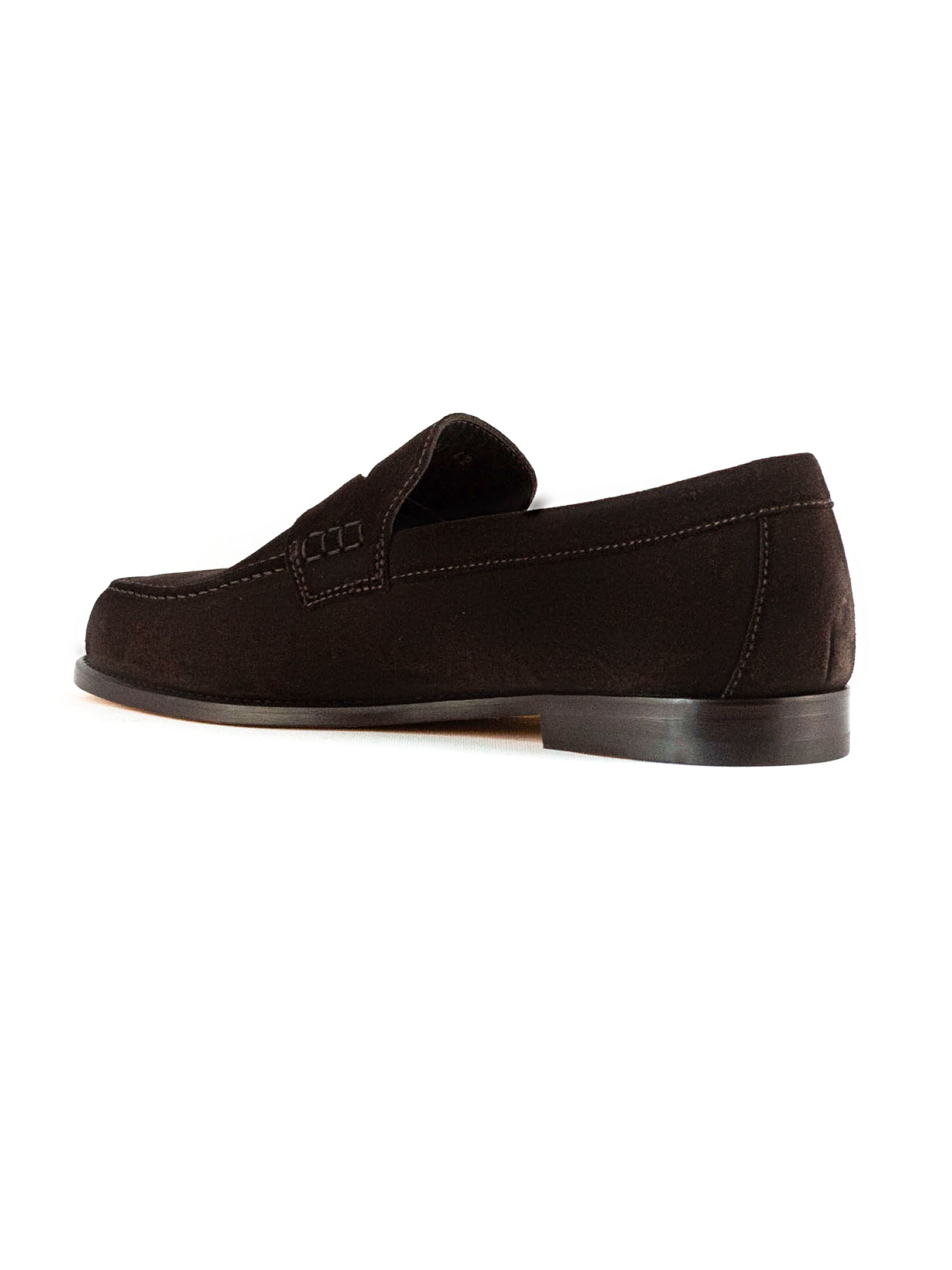 Dark brown suede loafer, leather sole with non-slip rubber