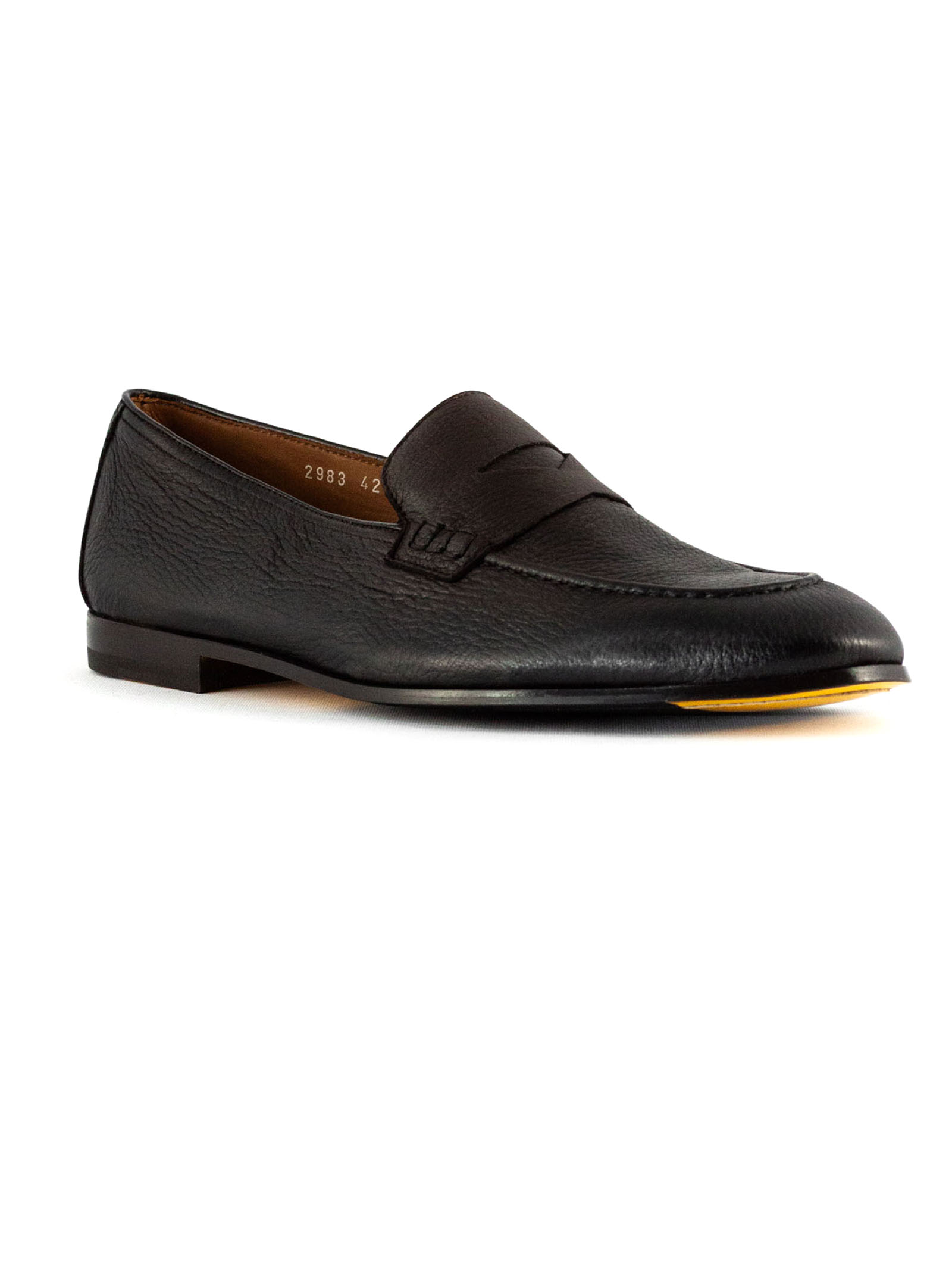 Soft dark brown leather loafer, slip-in construction and box stitching, Blake construction, leather sole in the iconic Golden Cream yellow with half rubber insole, Leather 100%
