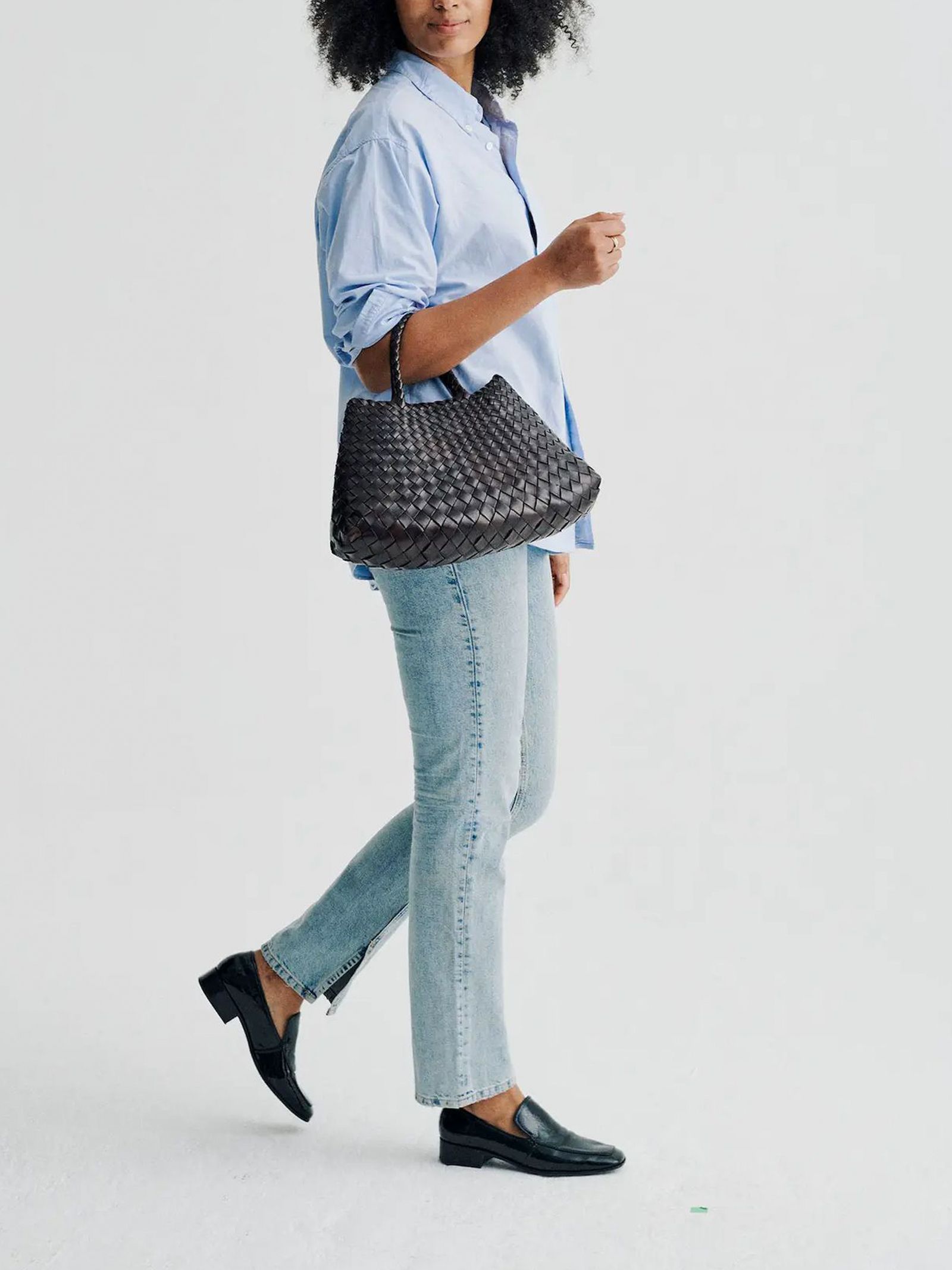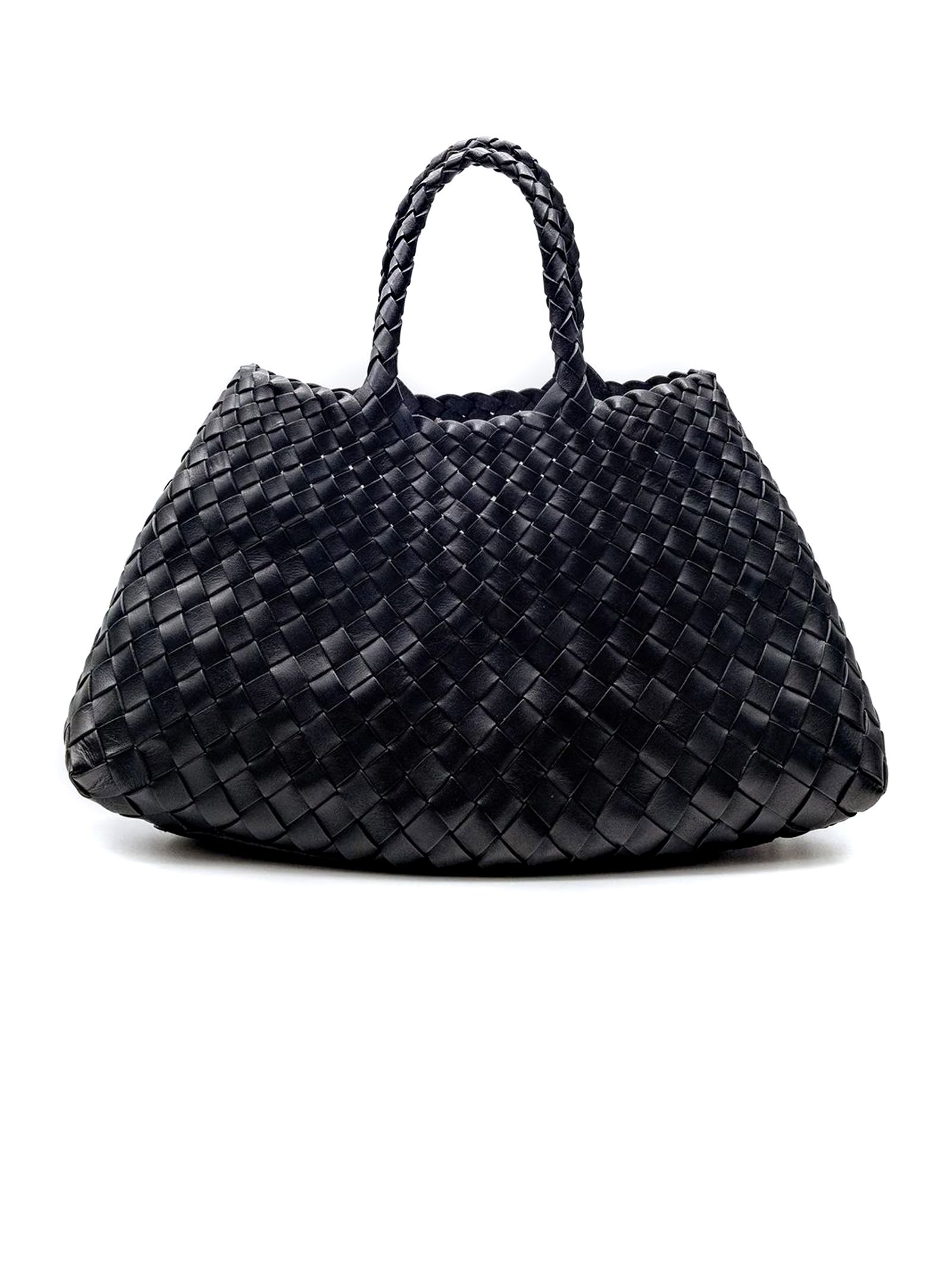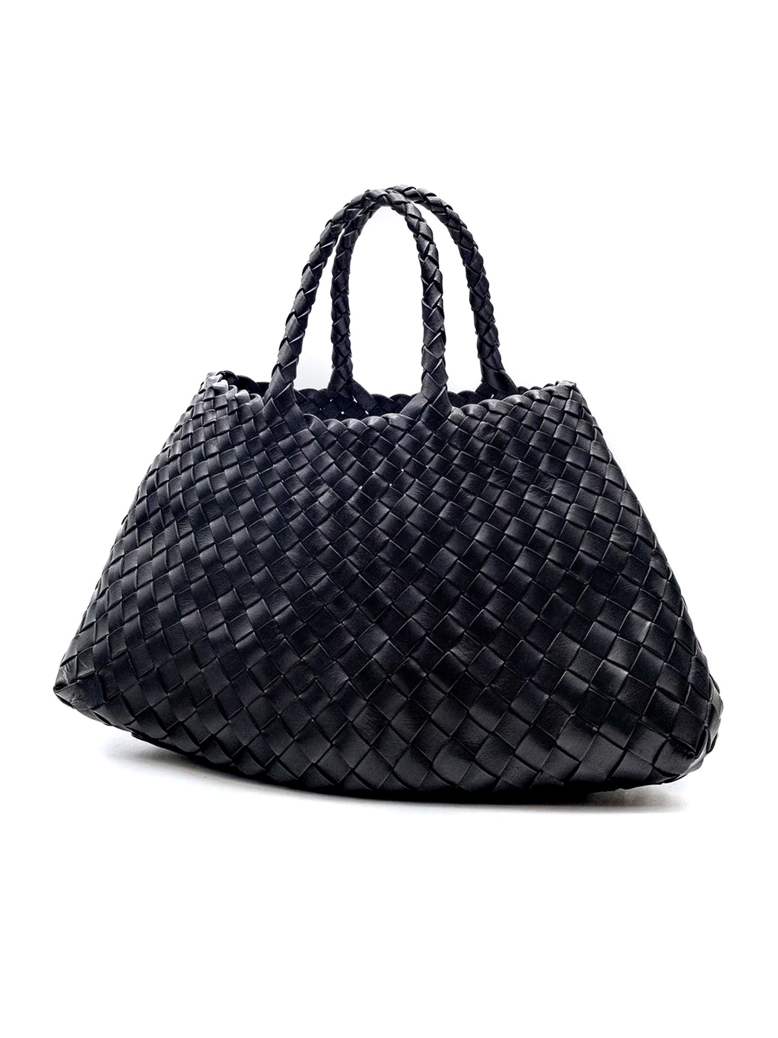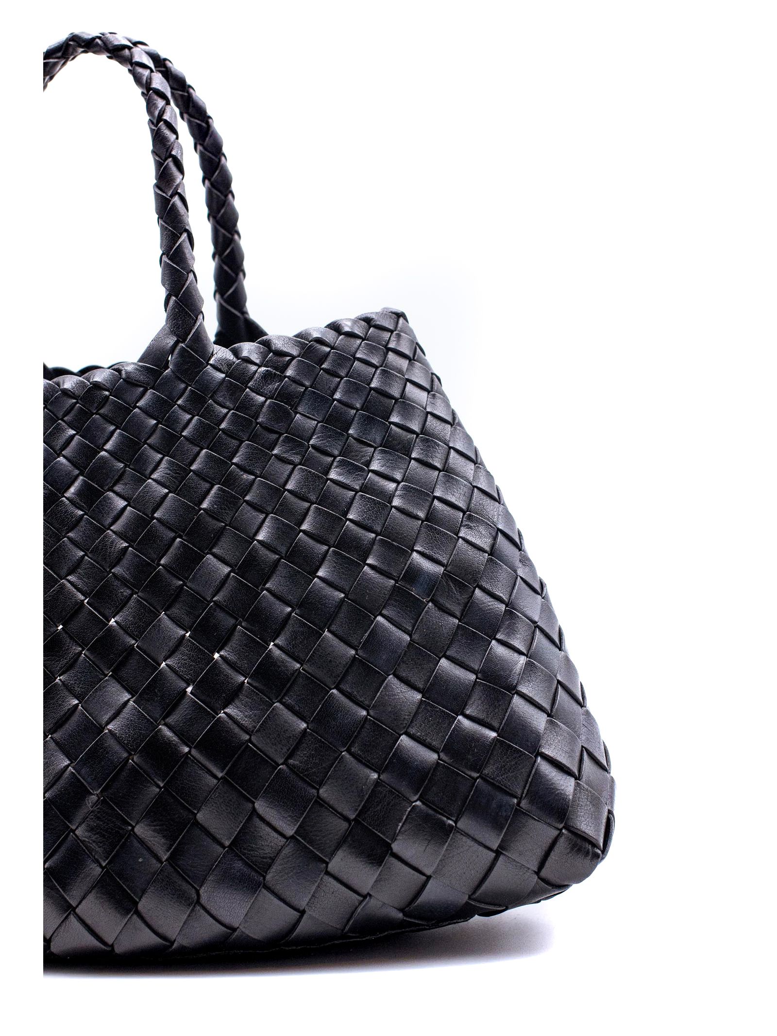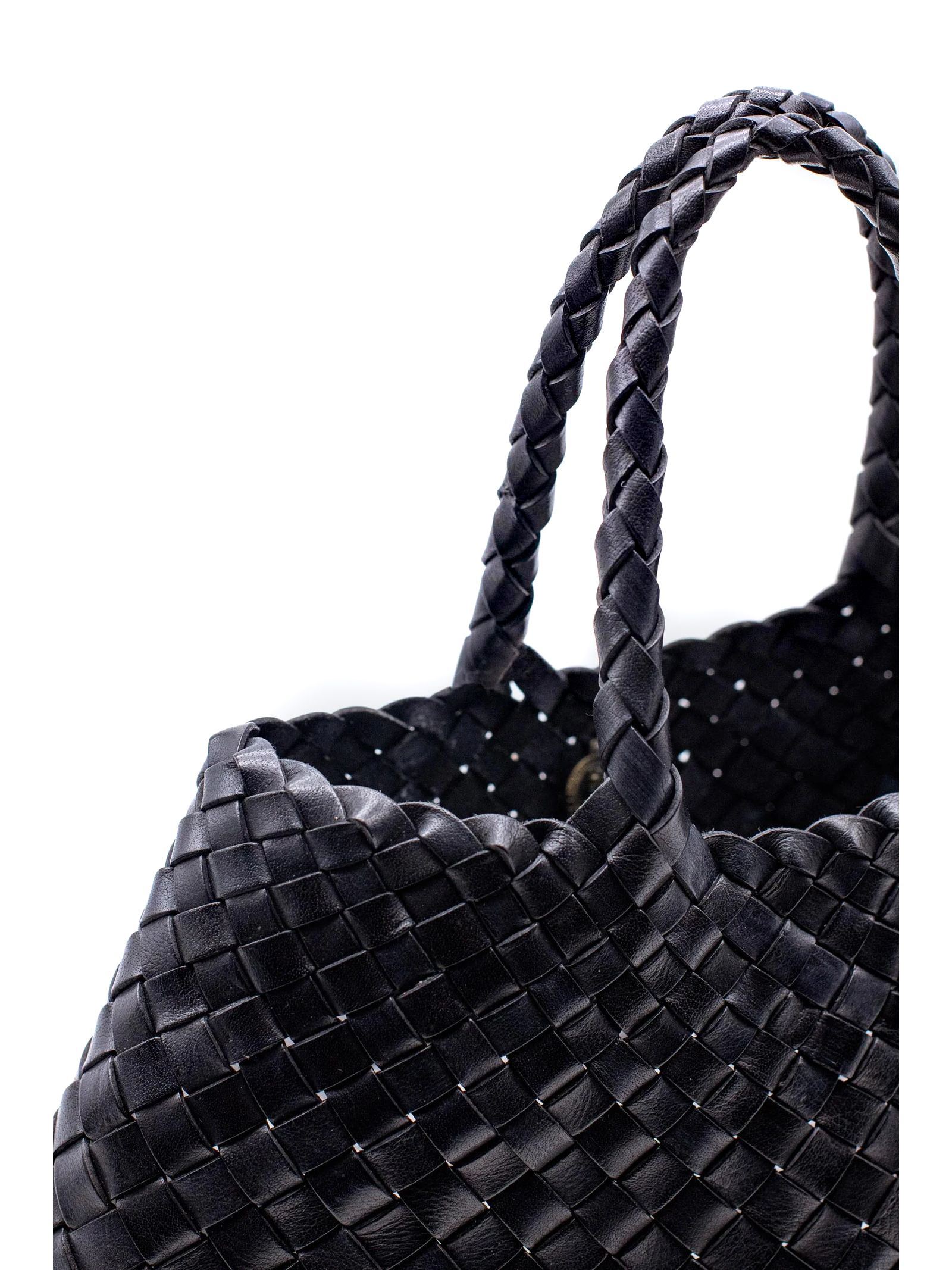 Black Santa Croce small tote bag, calf leather, interwoven design, two braided top handles, main compartment, internal logo patch, logo charm, open top, 33X20X13 CM, Leather 100%