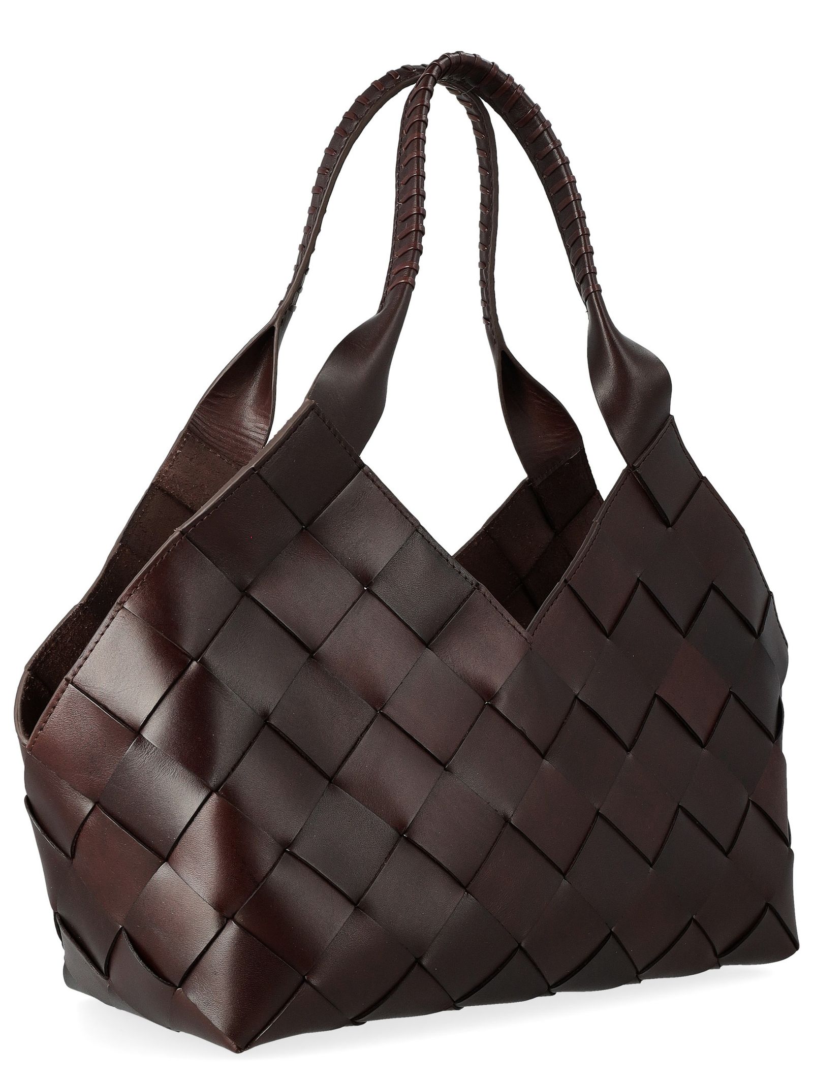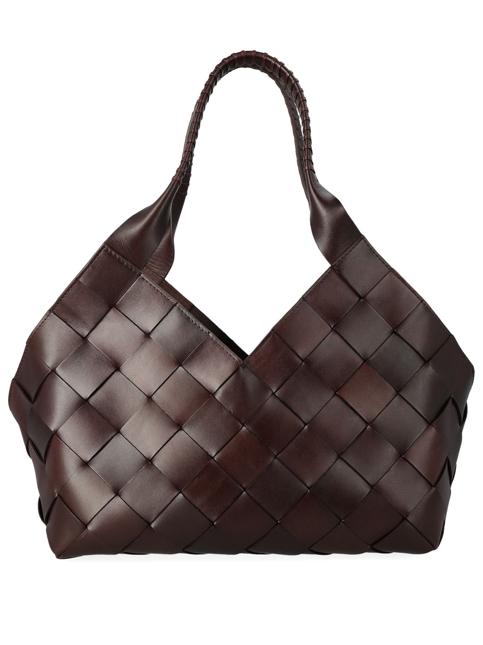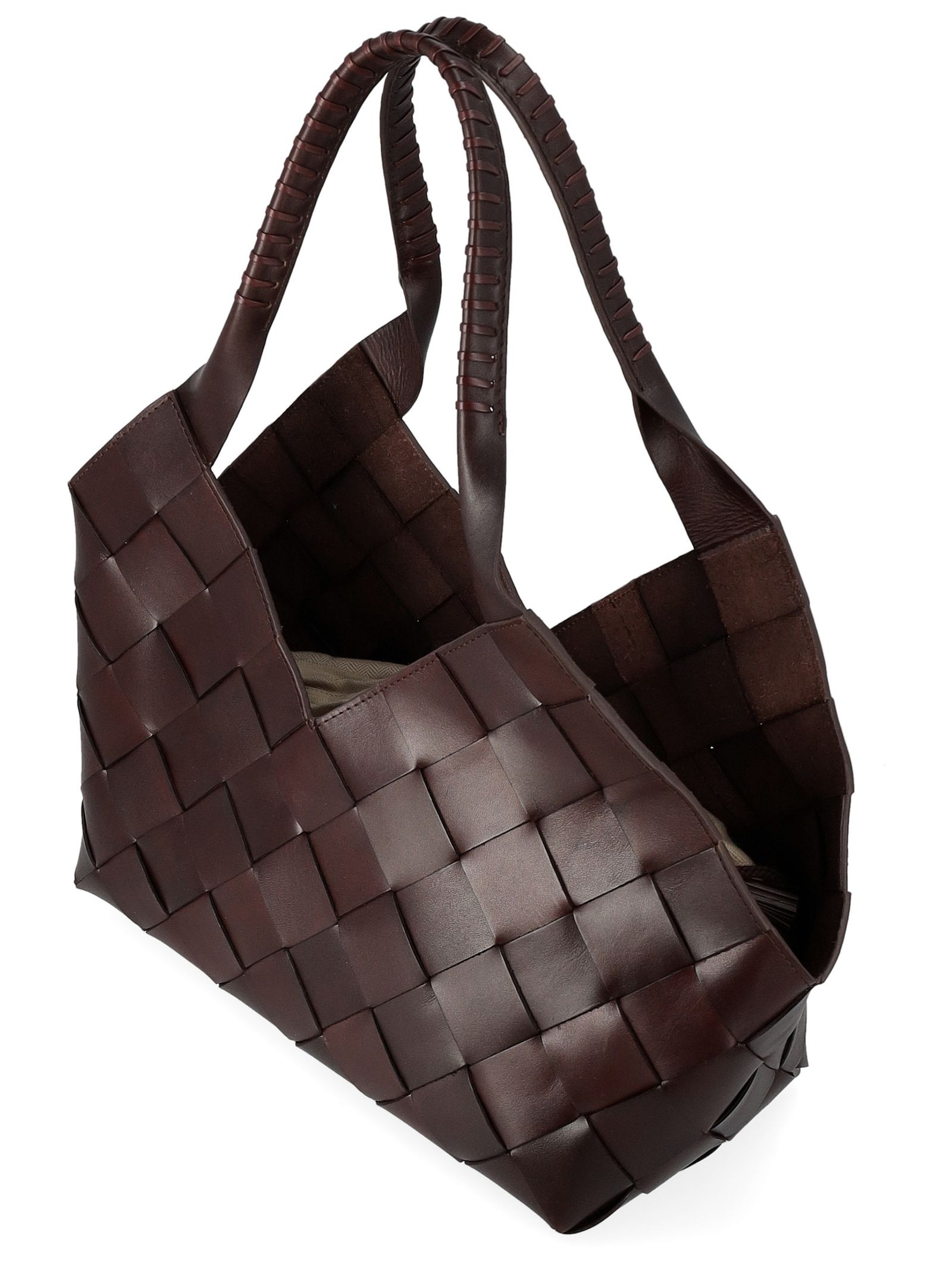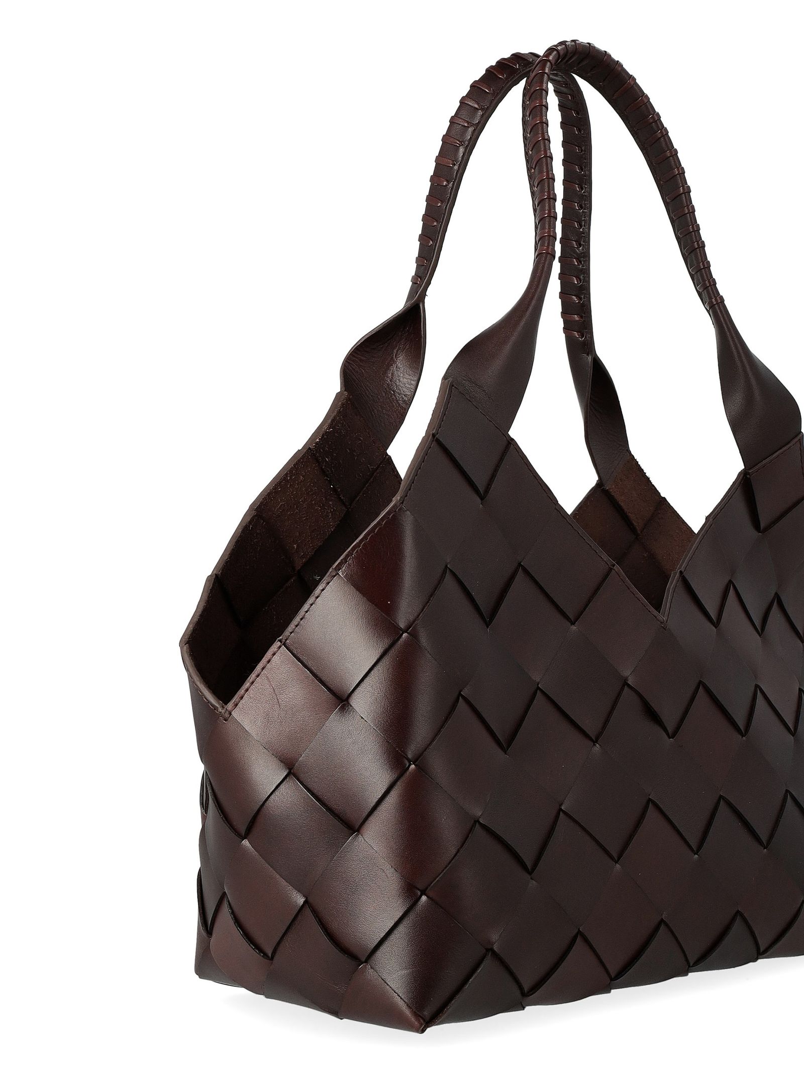 Castello bag in dark brown woven leather, magnetic closure, St. Christopher medallion, internal label with logo, fabric lining, dimensions: 30 x 17 x 46 cm, Leather 100%