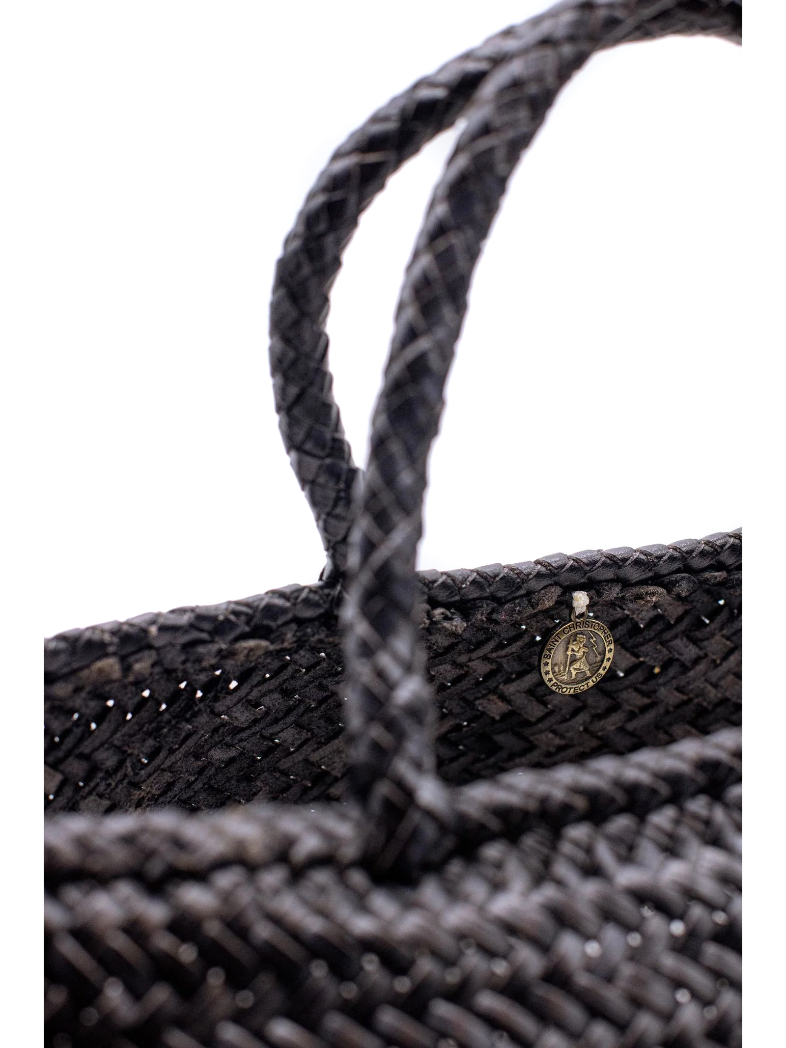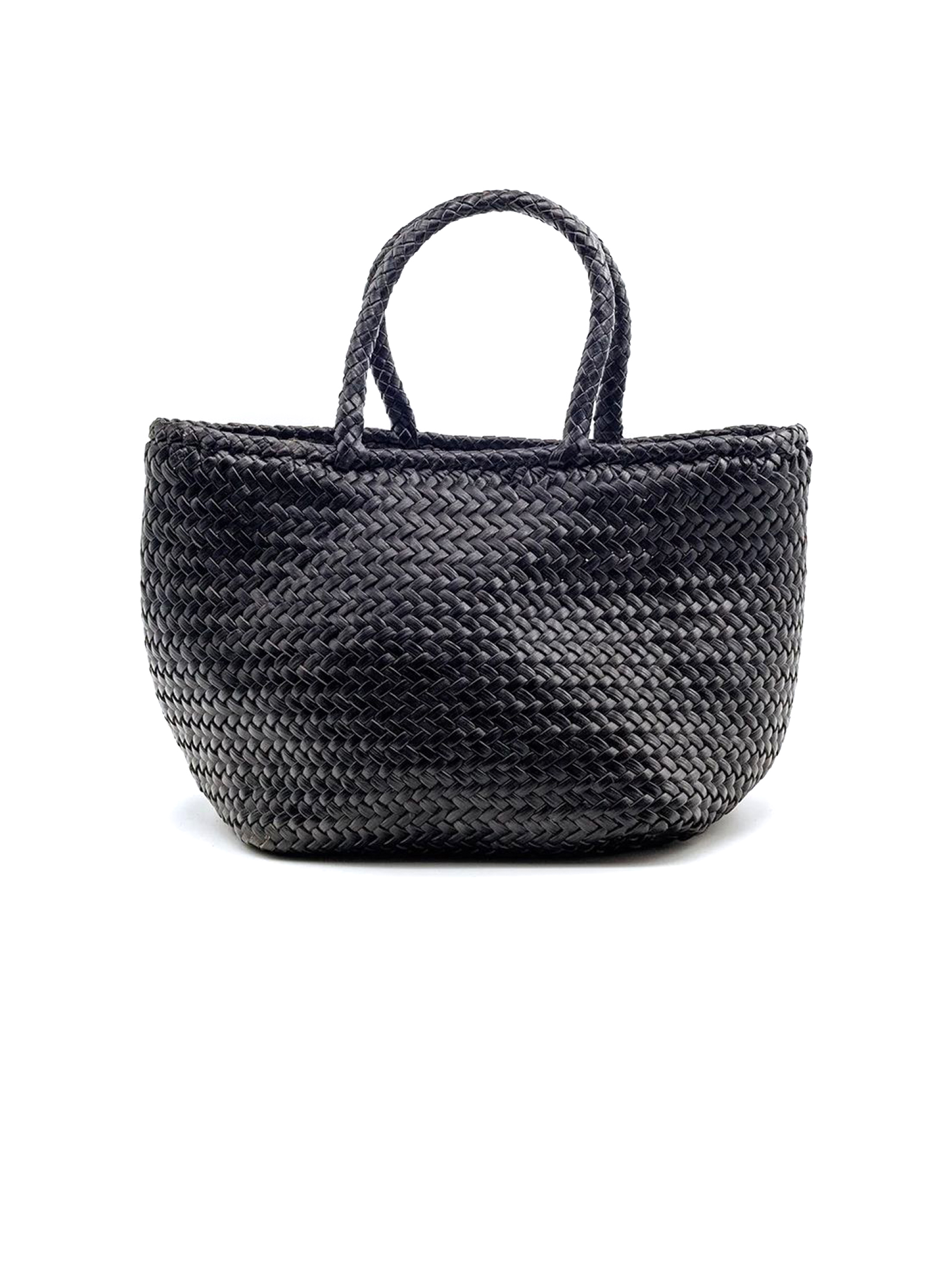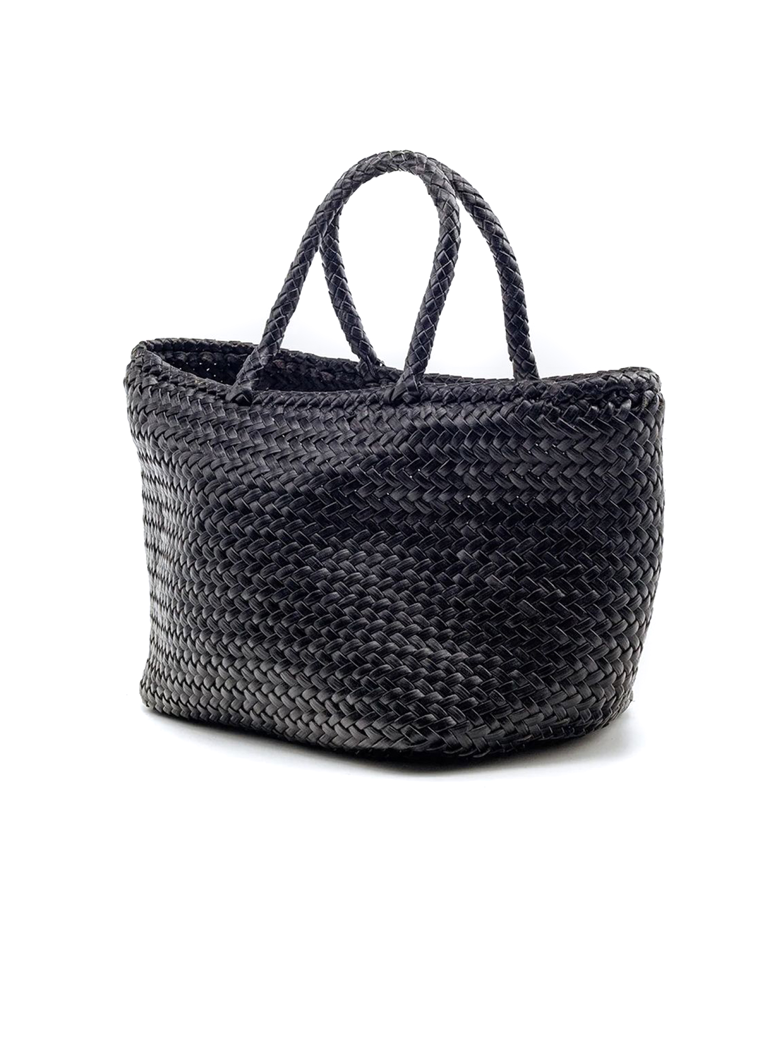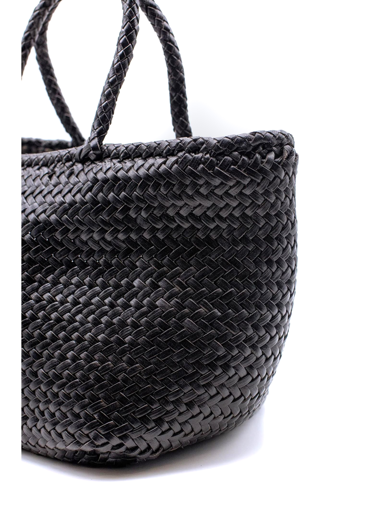 Grace Basket Small Black, Unlined and open-top, the soft, buffalo calf leather basket features elegant braided top handles and a diagonal weave, 35X25X17 CM, Leather 100%