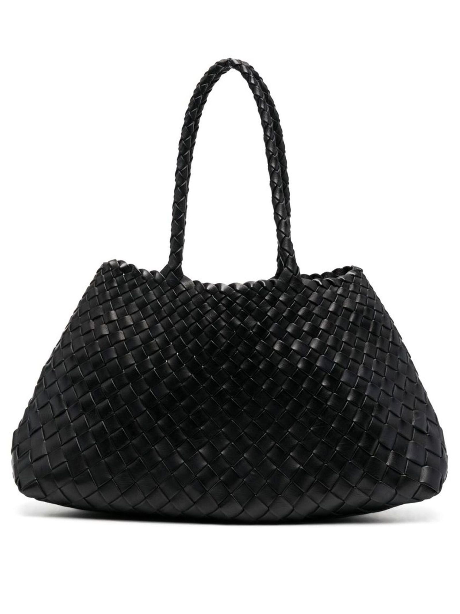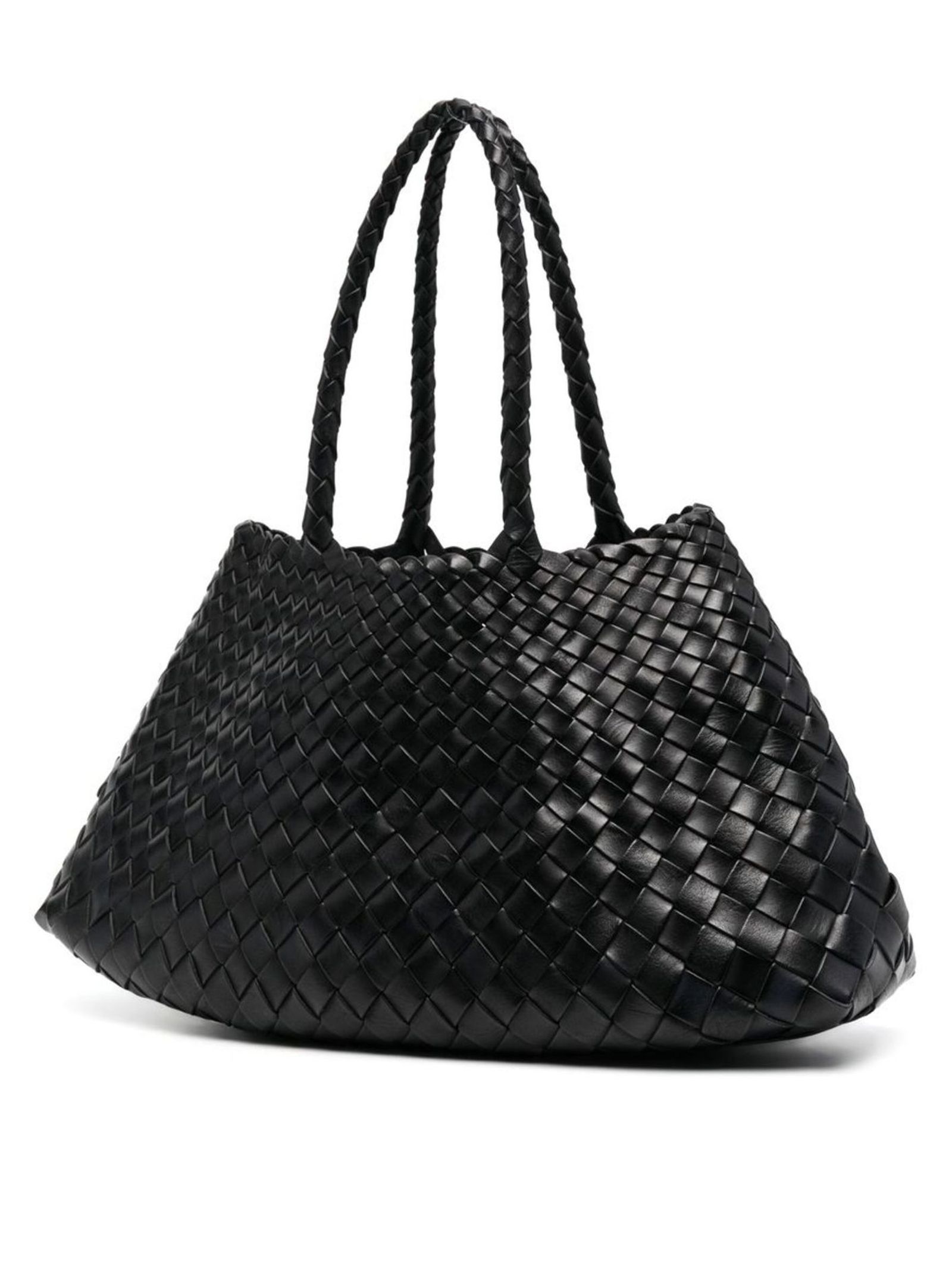 Santa Croce Big black tote bag, Buffalo Calf Tapered Leather, woven design, two round handles, trapeze pattern, magnetic closure and single compartment, 44X23X14 CM, Leather 100%