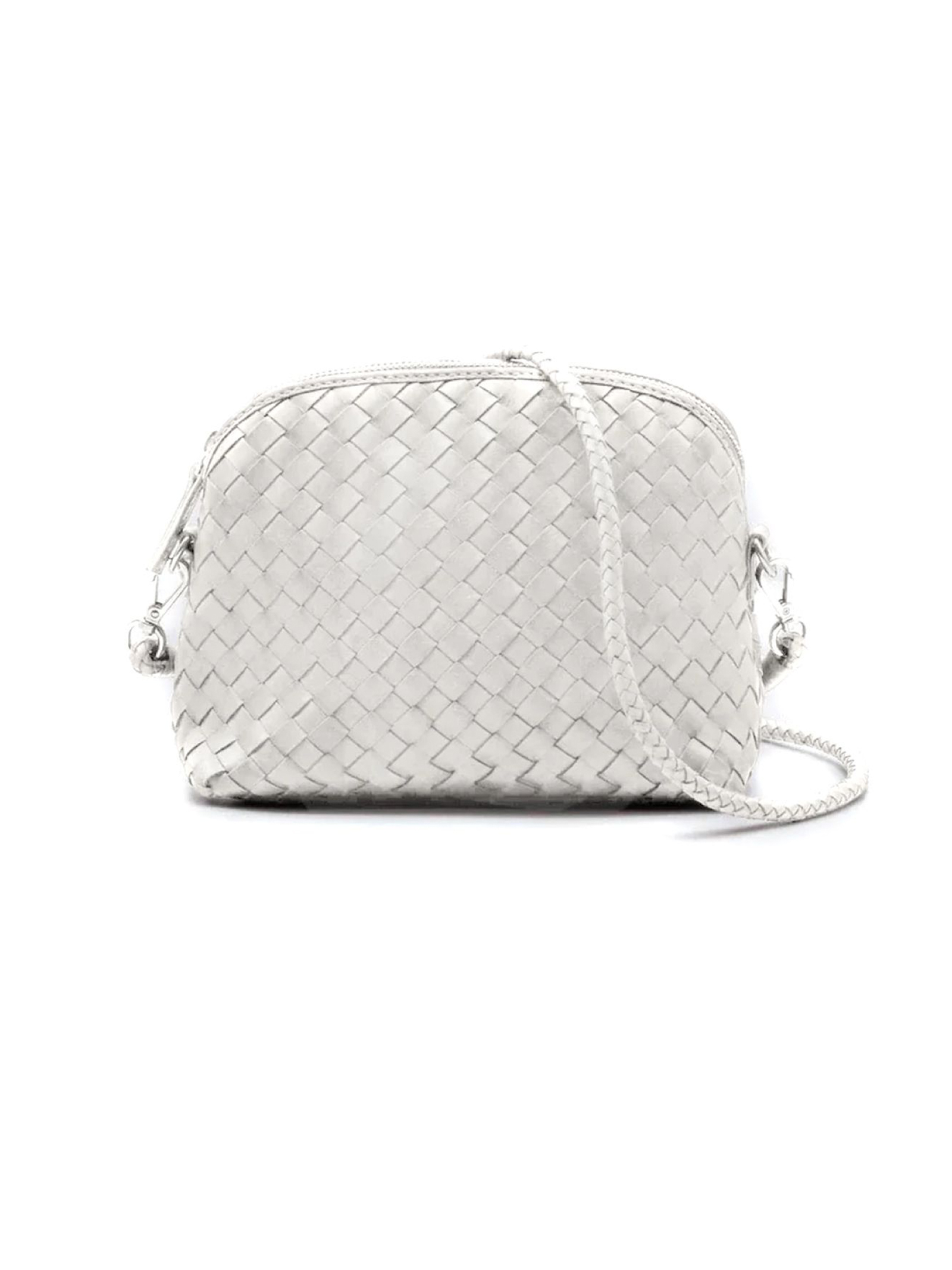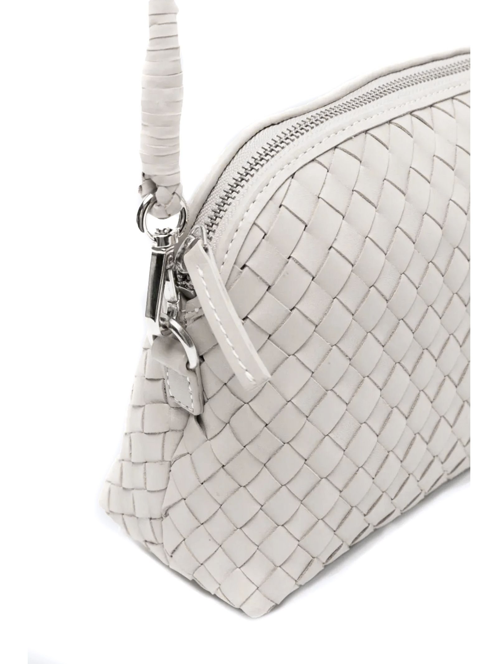 White leather Chunky Fellini bag, Woven shoulder strap, Cowhide leather, With lining, Removable leather shoulder strap, Zip closure, 23X16X10 CM, Leather 100%