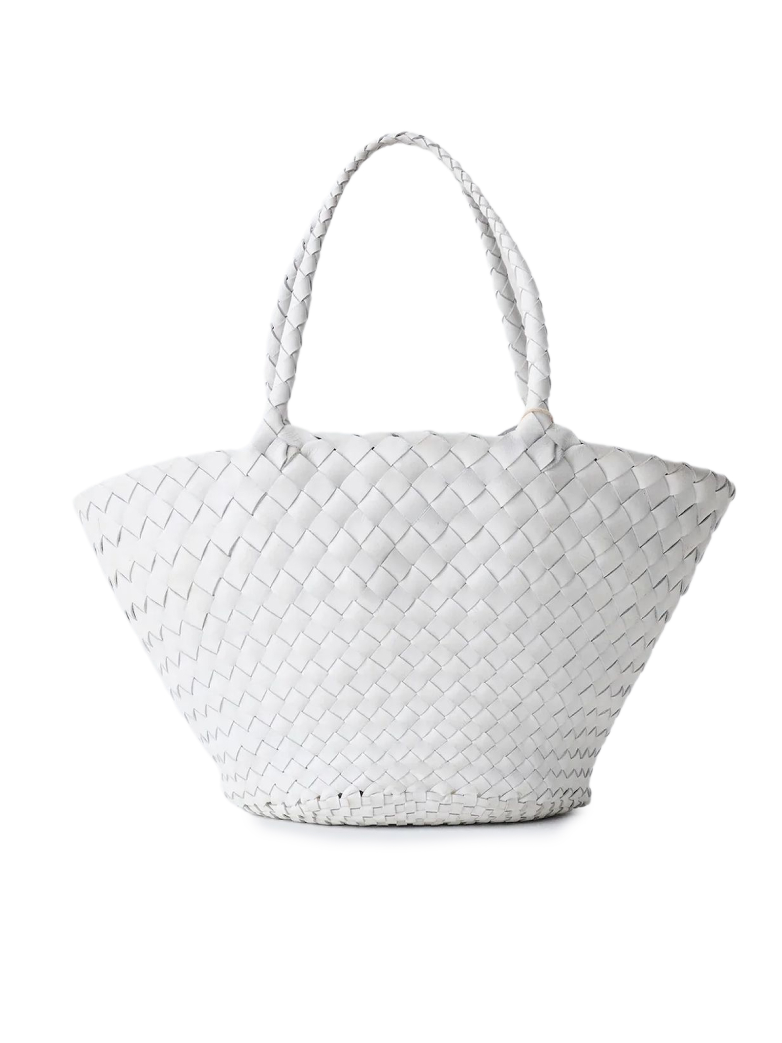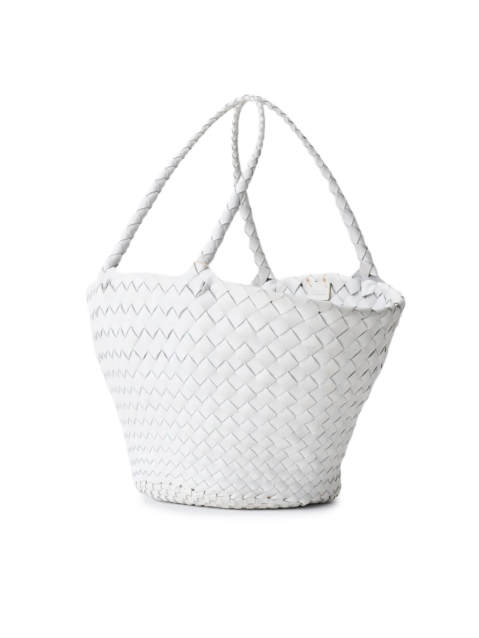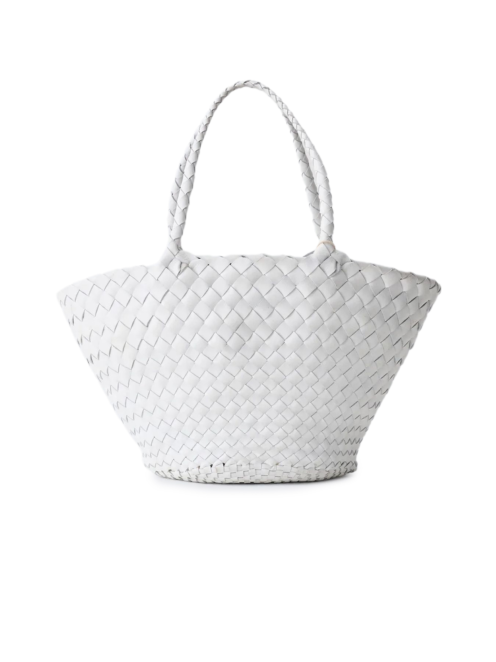 White leather Egola shopping bag, hand woven, Unlined, Two top handles, 43X26X17 cm, Leather 100%