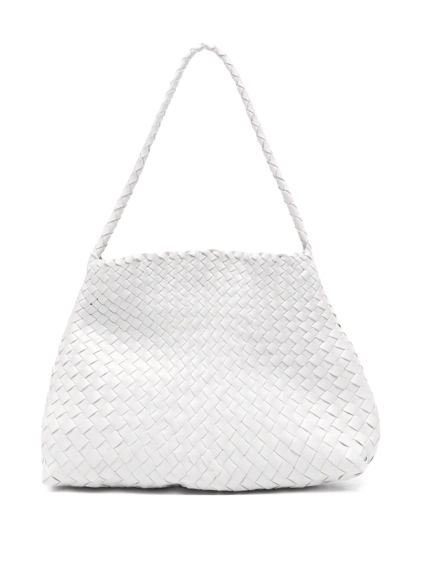 White Leather Santa Maria Mini S. Croce Bag, Tapered Straps, Two Handles, Single Compartment, 38X14x24 Cm
