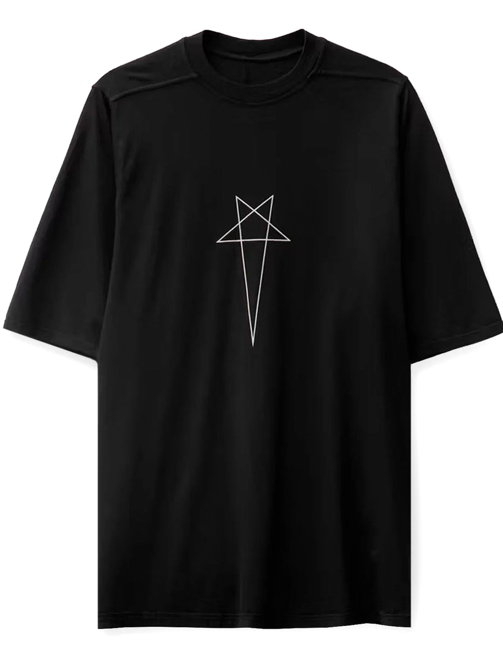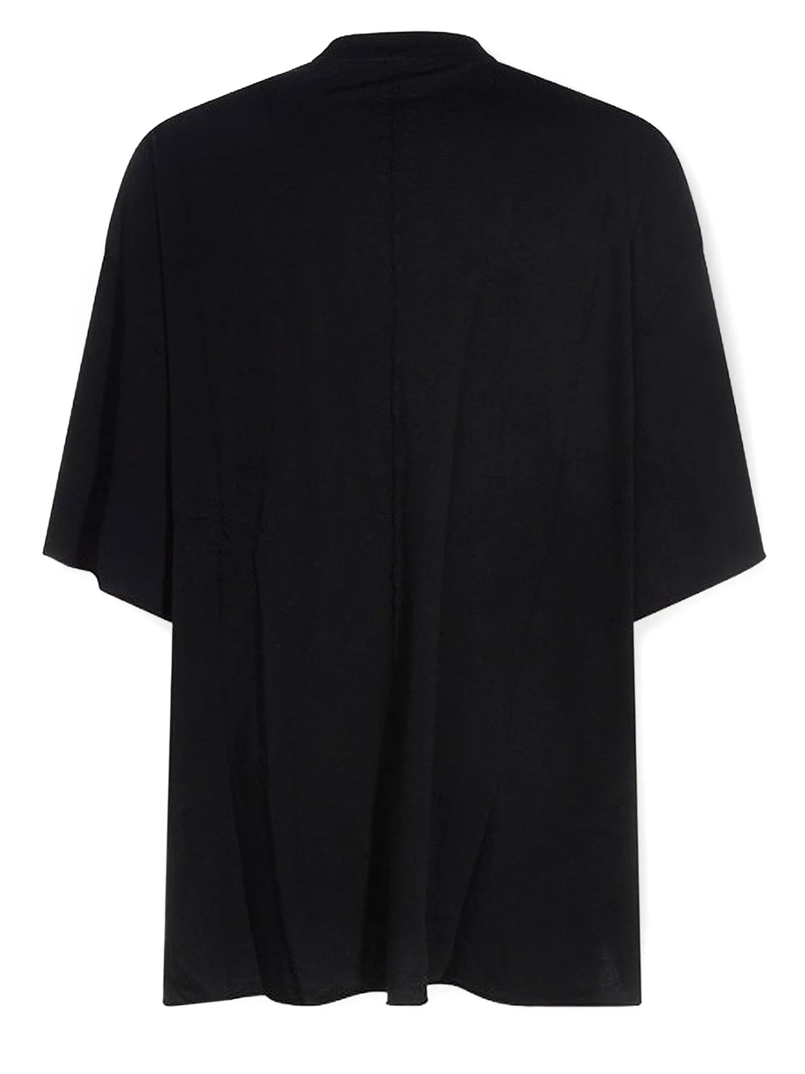 Black cotton sweatshirt featuring graphic print, raw hem, short sleeves, round neck