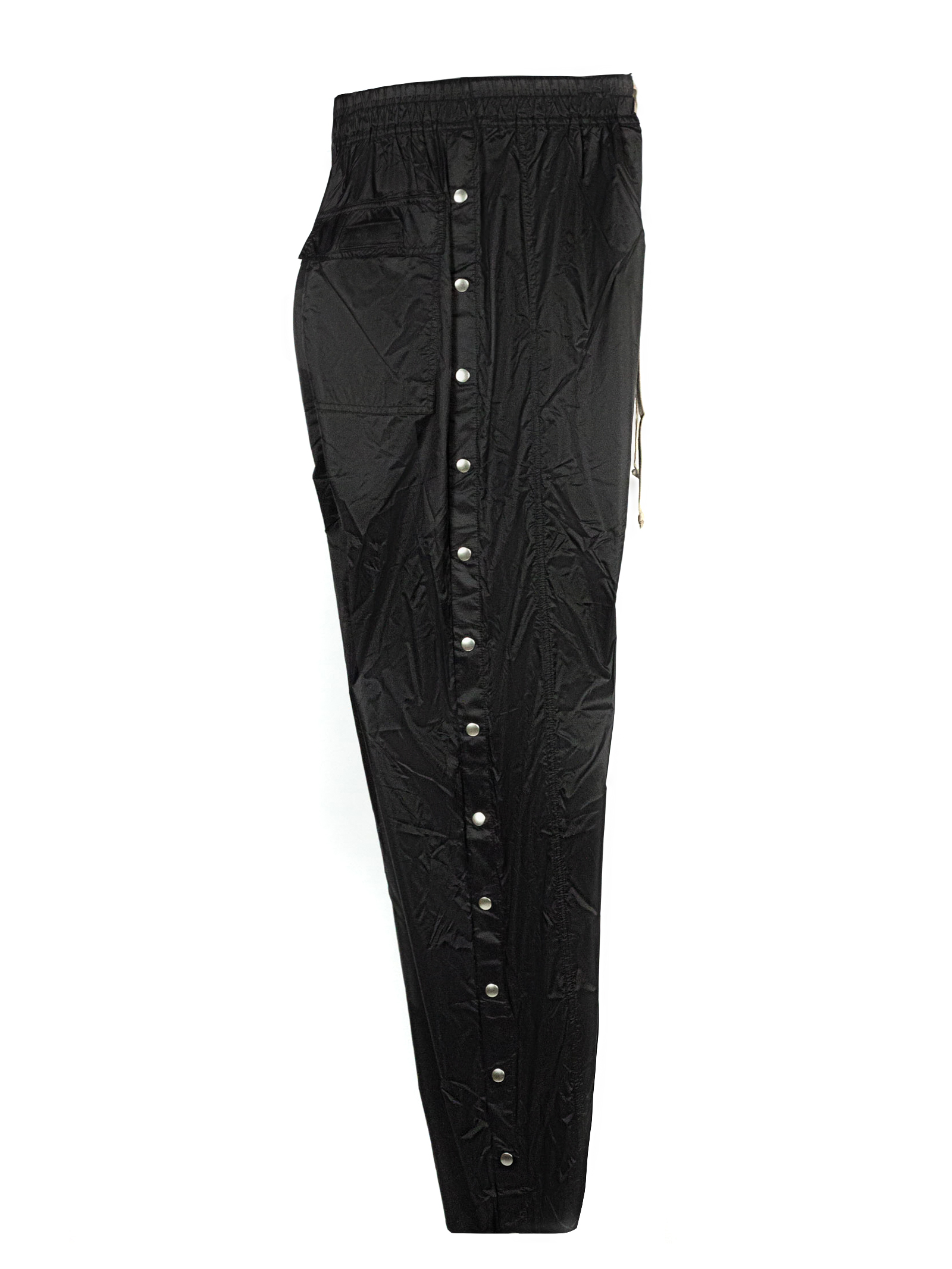 Black Geth Belas trousers, drawstring fastening, elasticated waistband, stud embellishment, wide leg
