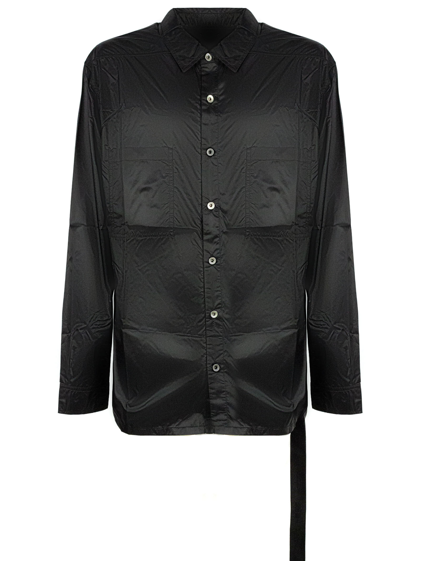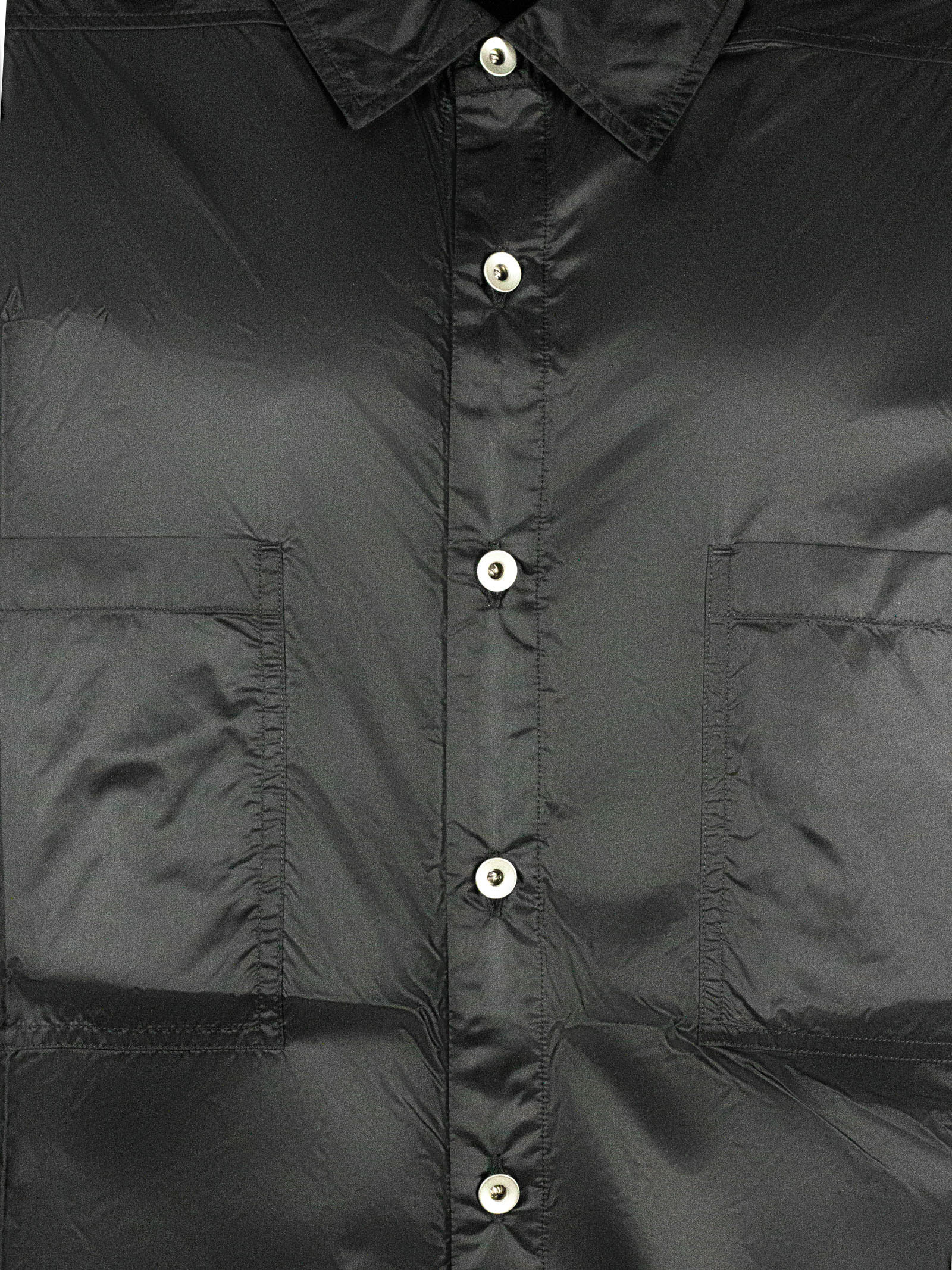 Black overshirt, dark grey, point collar, button fastening, long sleeves, two chest pockets, straight hem
