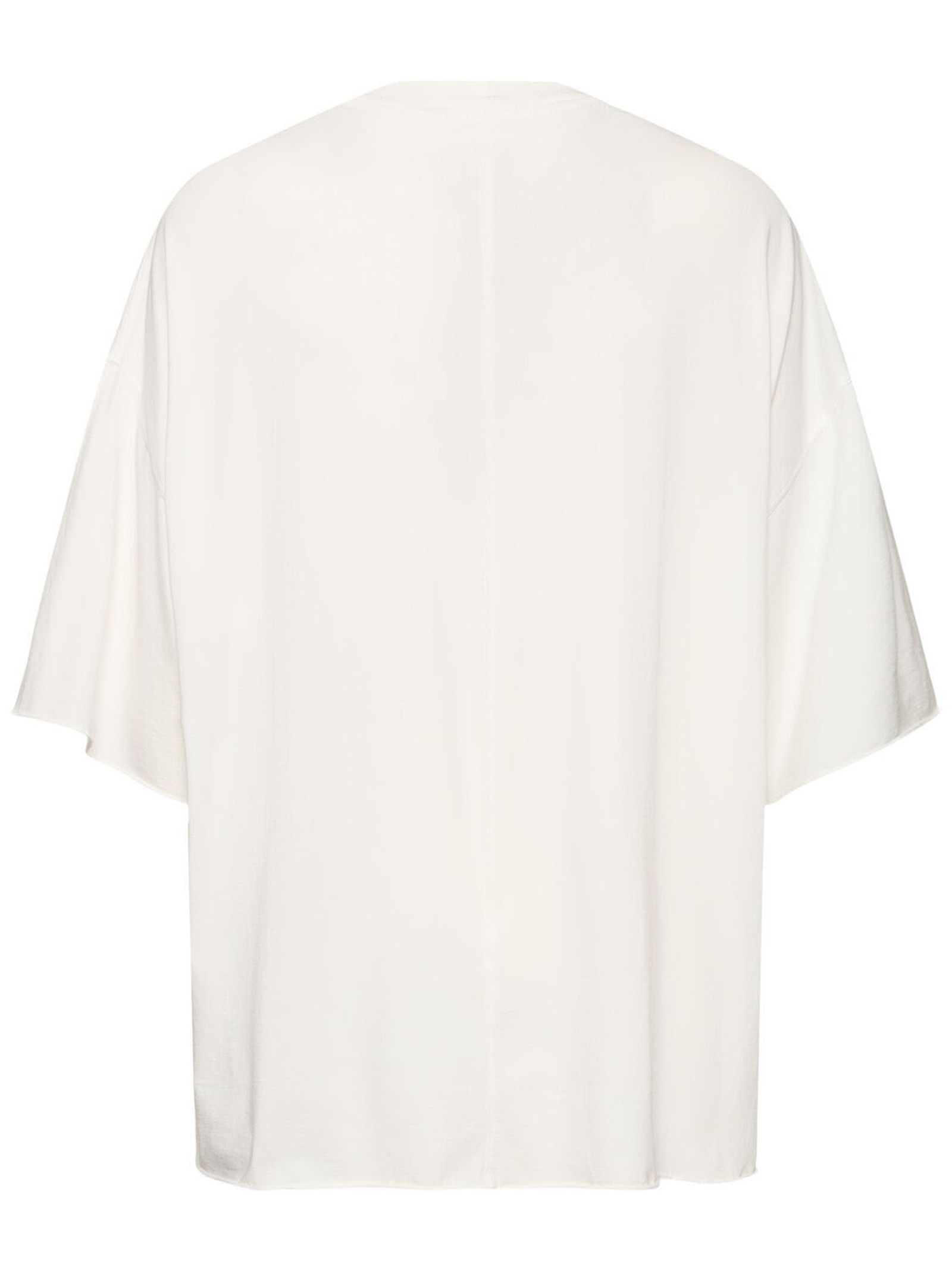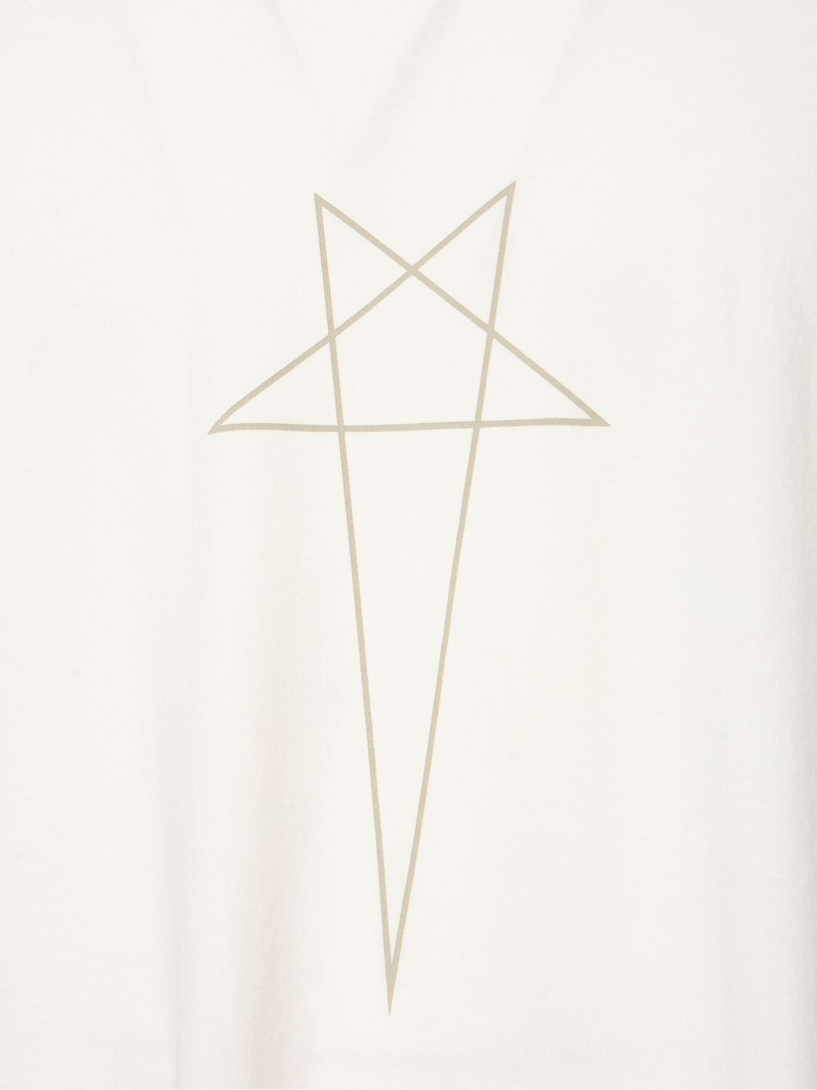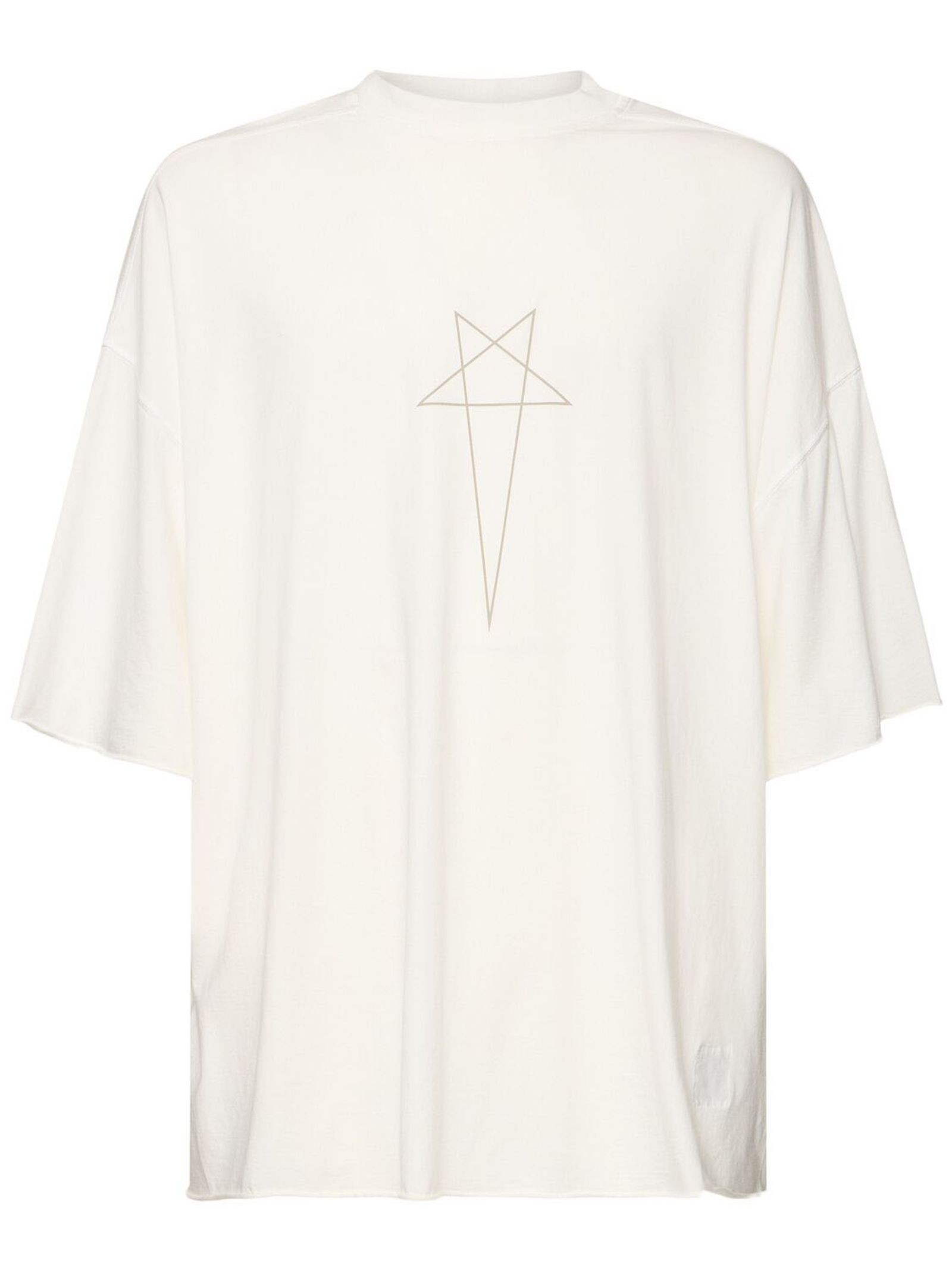 White cotton sweatshirt featuring graphic print, raw hem, short sleeves, round neck
