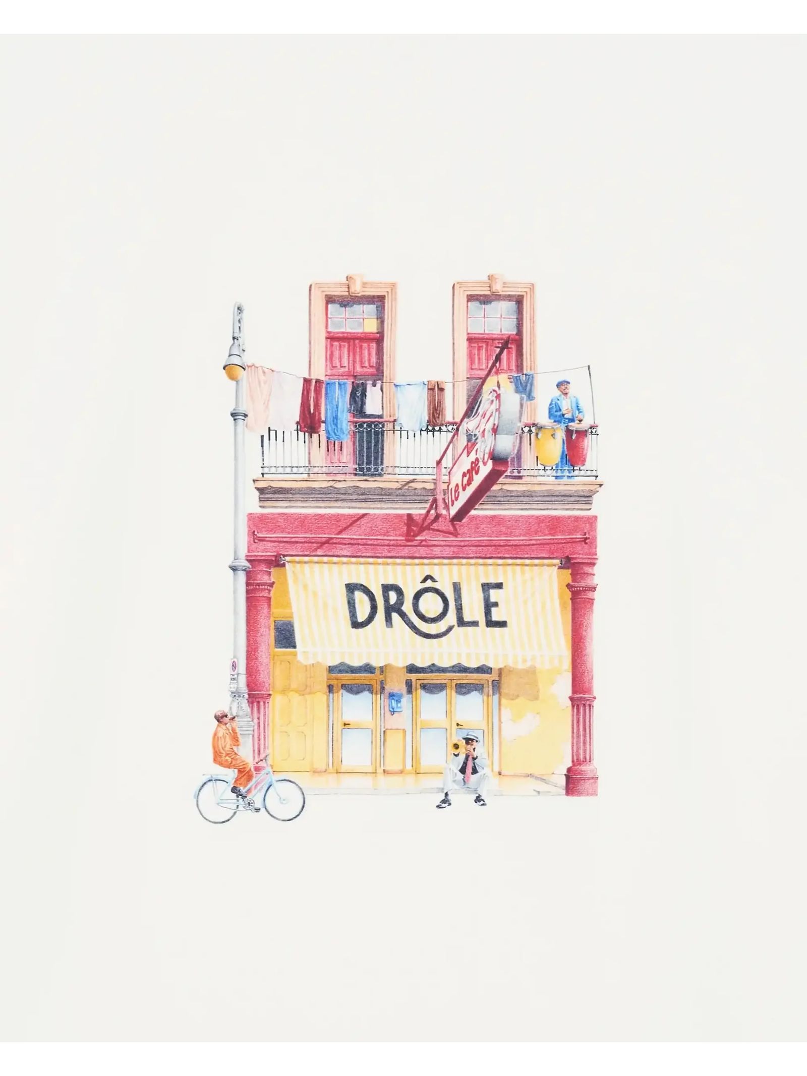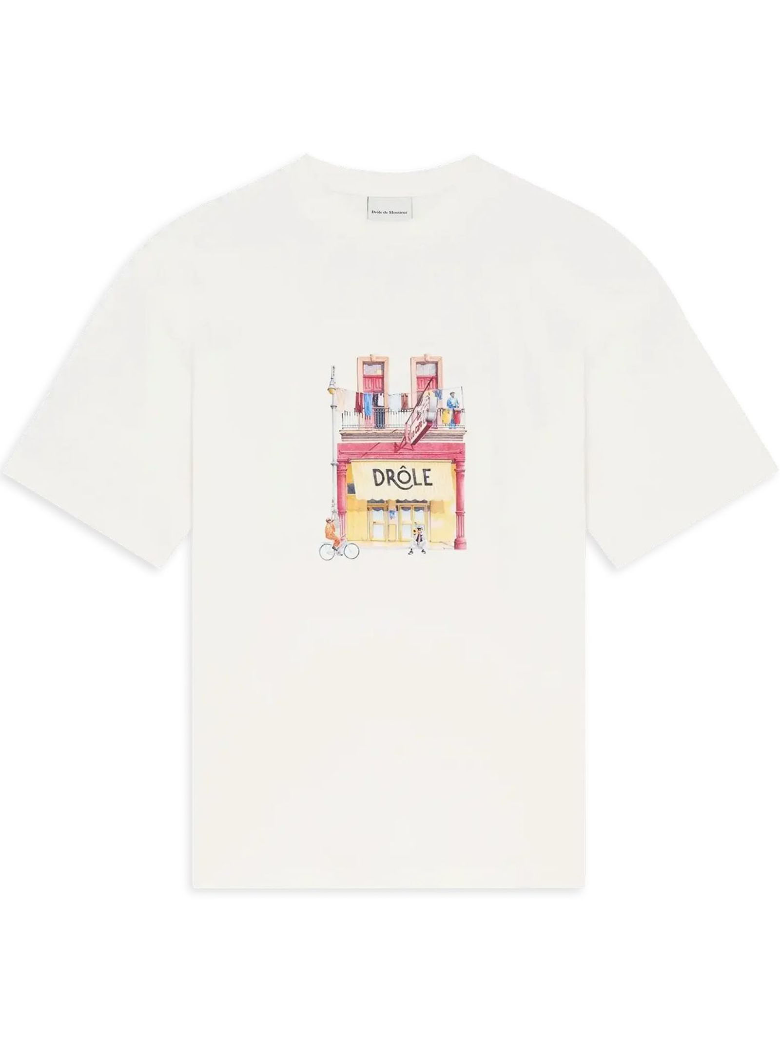 Off-white cotton t-shirt with a ribbed collar features a Café print on the front
