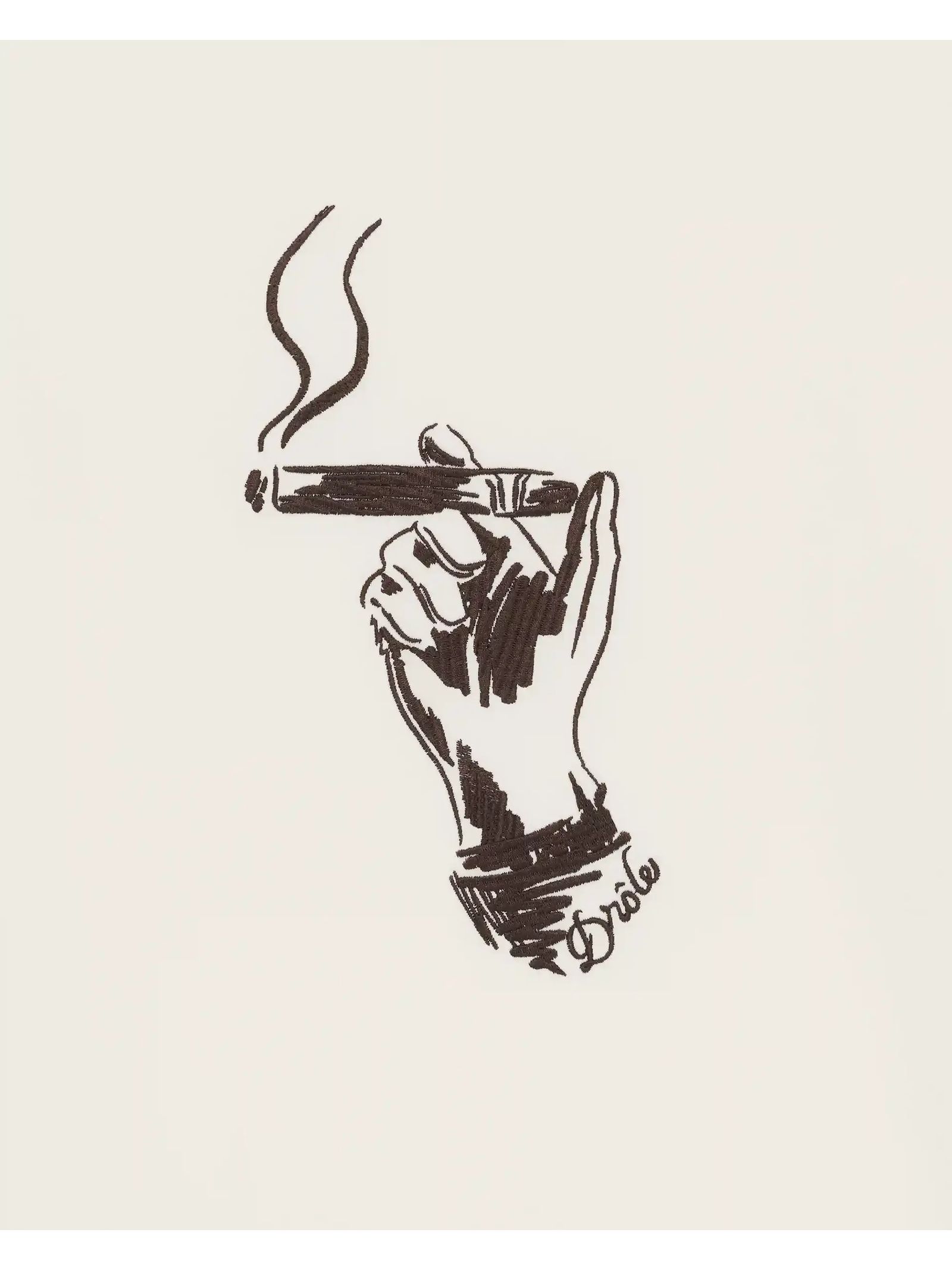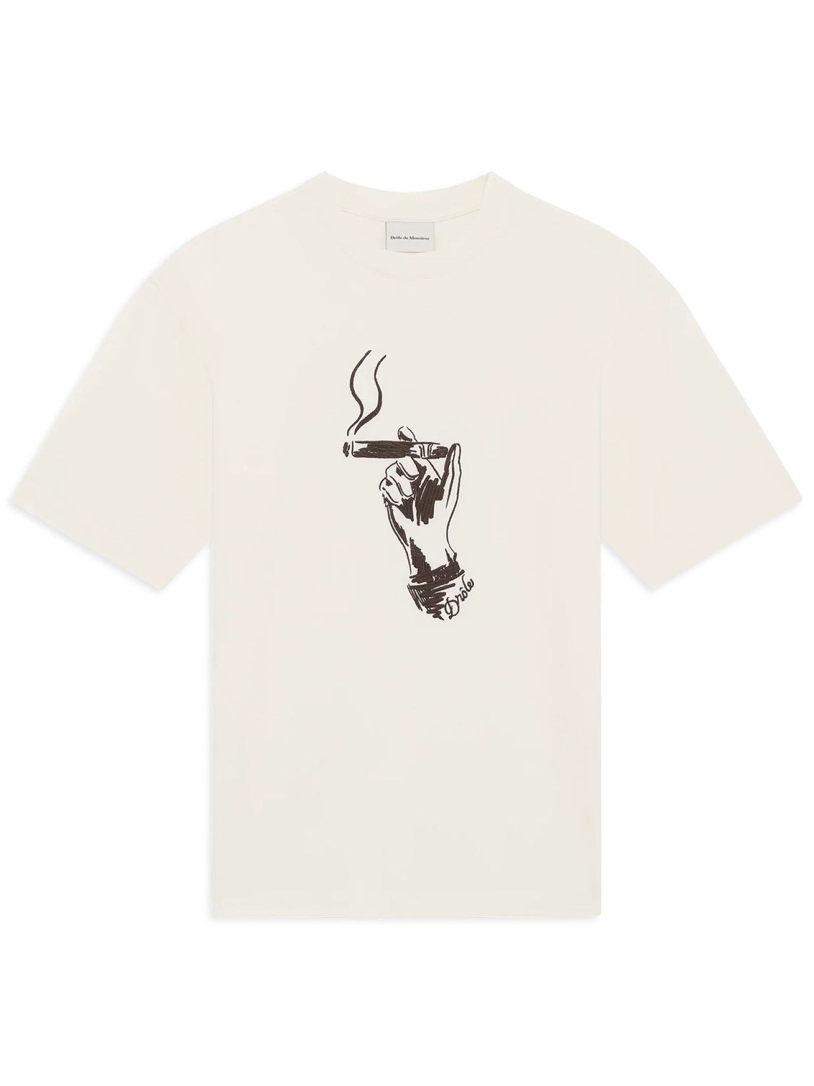 Off-White Double Jersey Cotton T-Shirt, Double jersey, Cuba embroidery on the front, Ribbed neckline