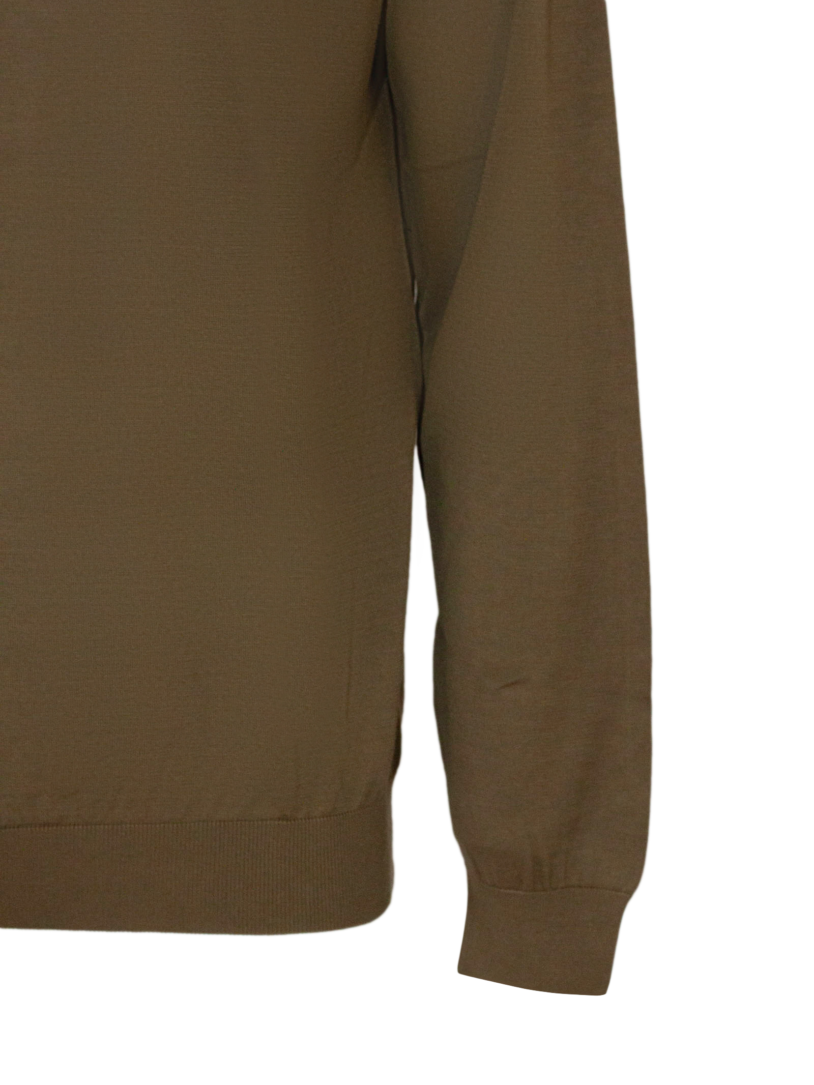 Military green cotton jumper with round neck, long sleeves and ribbed trim