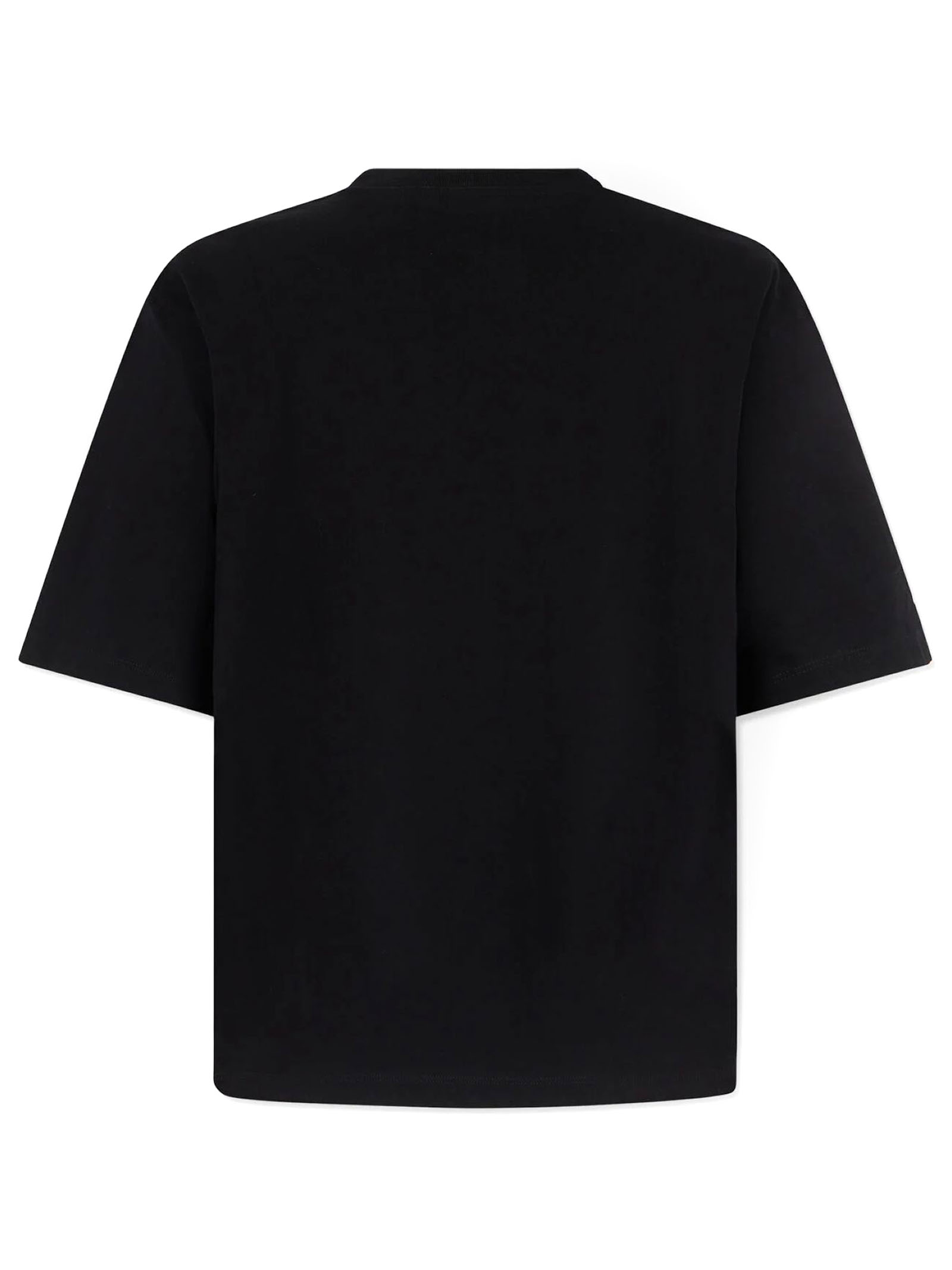 Black cotton T-shirt with logo, short sleeves, logo detail, crew neck, dropped shoulders