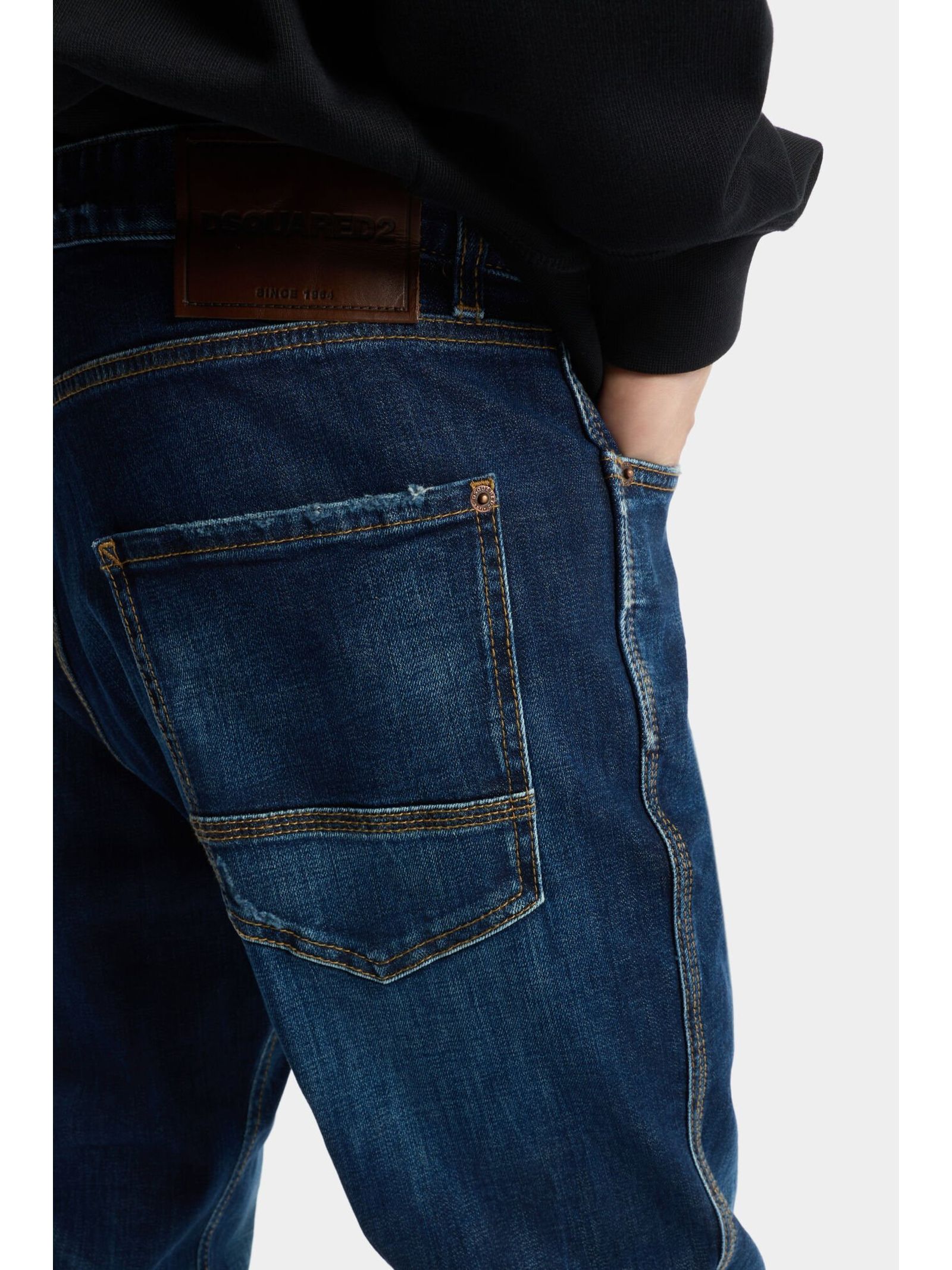 Dark Smoker Wash Teddy Mini Front Jeans In Denim Di Cotone Stretch, Trattamento Vintage E Dettagli Destroyed, Chiusura Coperta, Modello Cinque Tasche, Etichetta Dsquared2 Rossa, Salpa Logata
