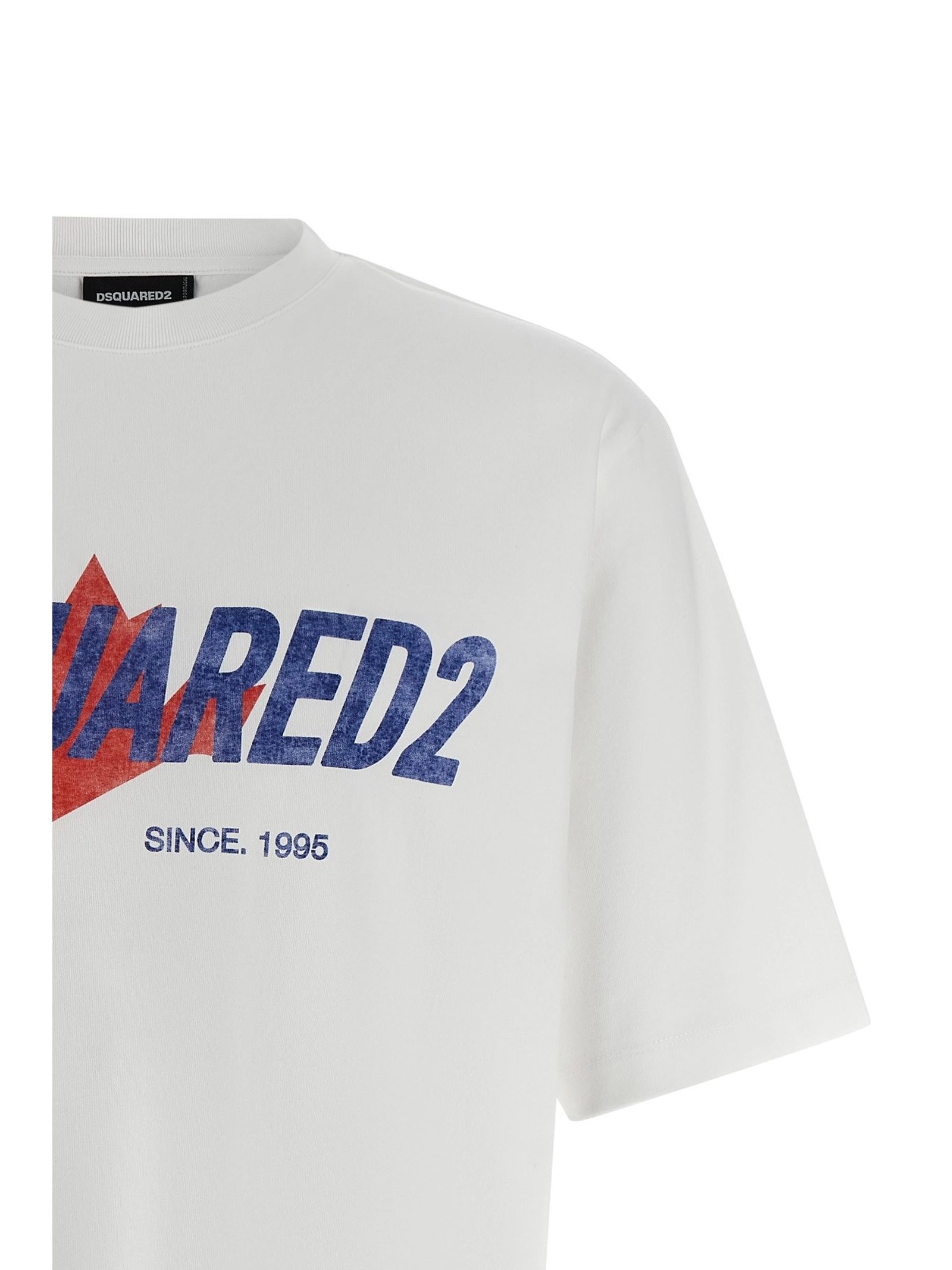 White cotton graphic-print T-shirt, short sleeves, round neck, graphic print