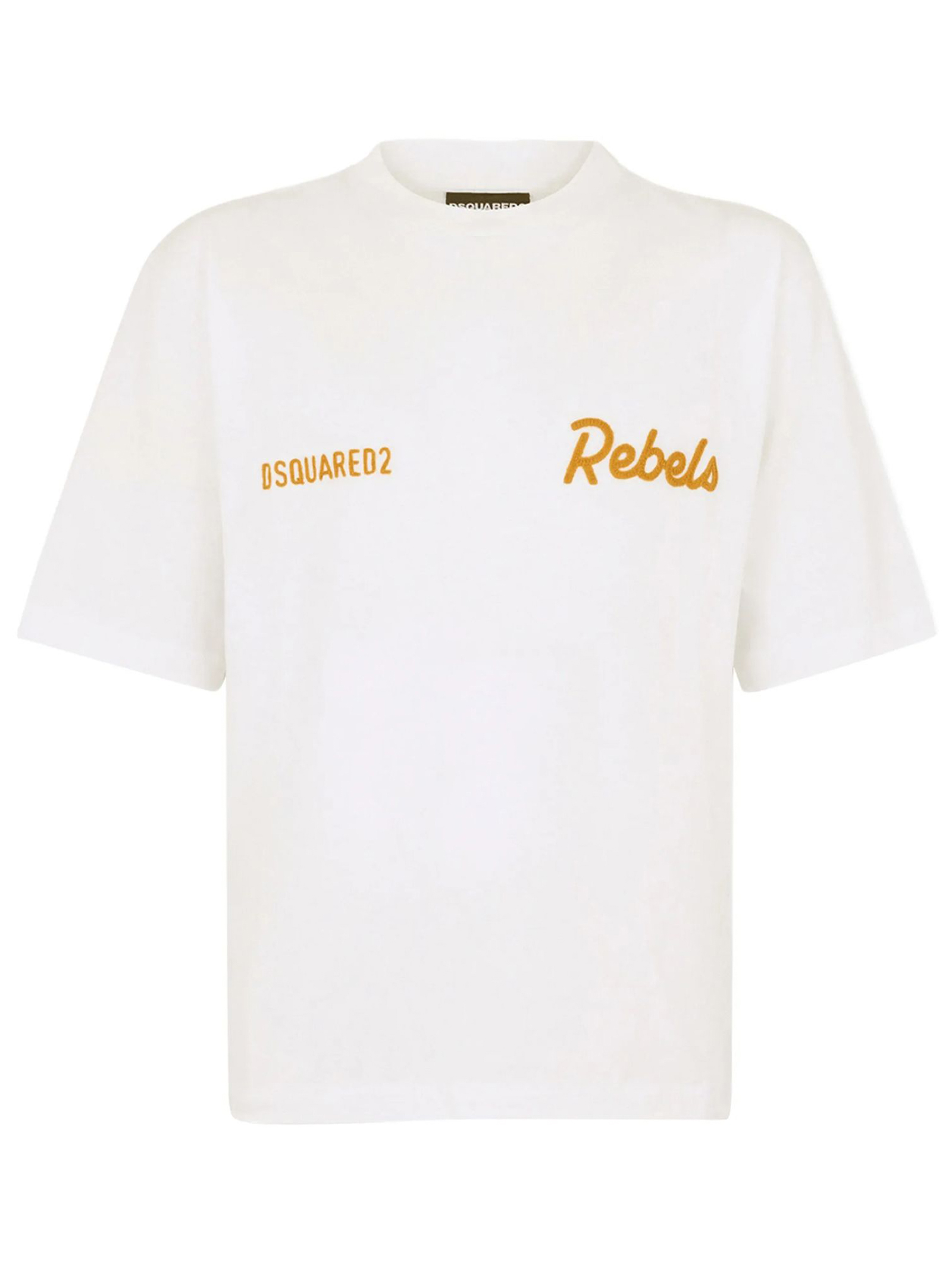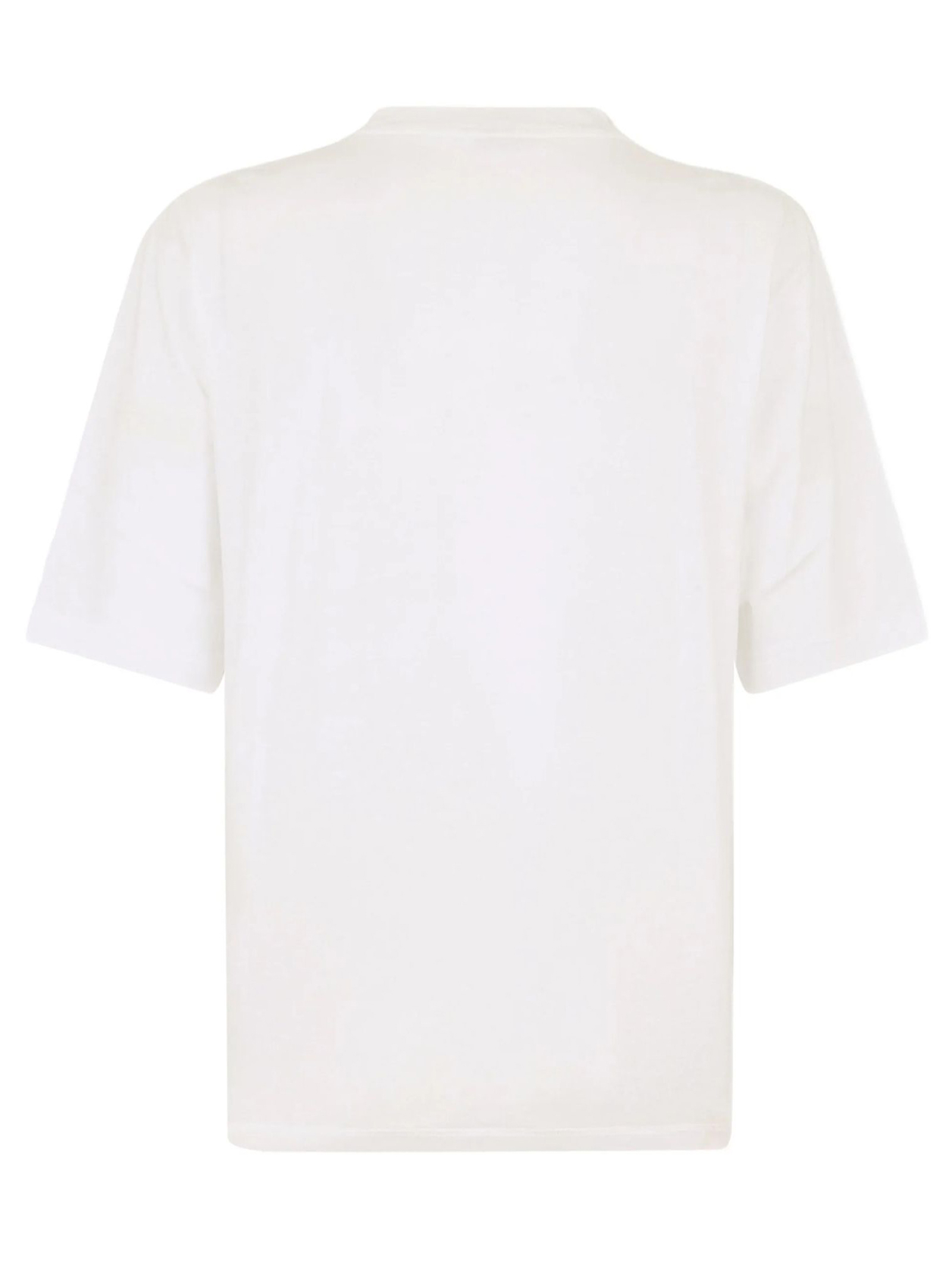 White cotton jersey T-shirt, loose fit, crew neck, with embroidered lettering and logo on the front