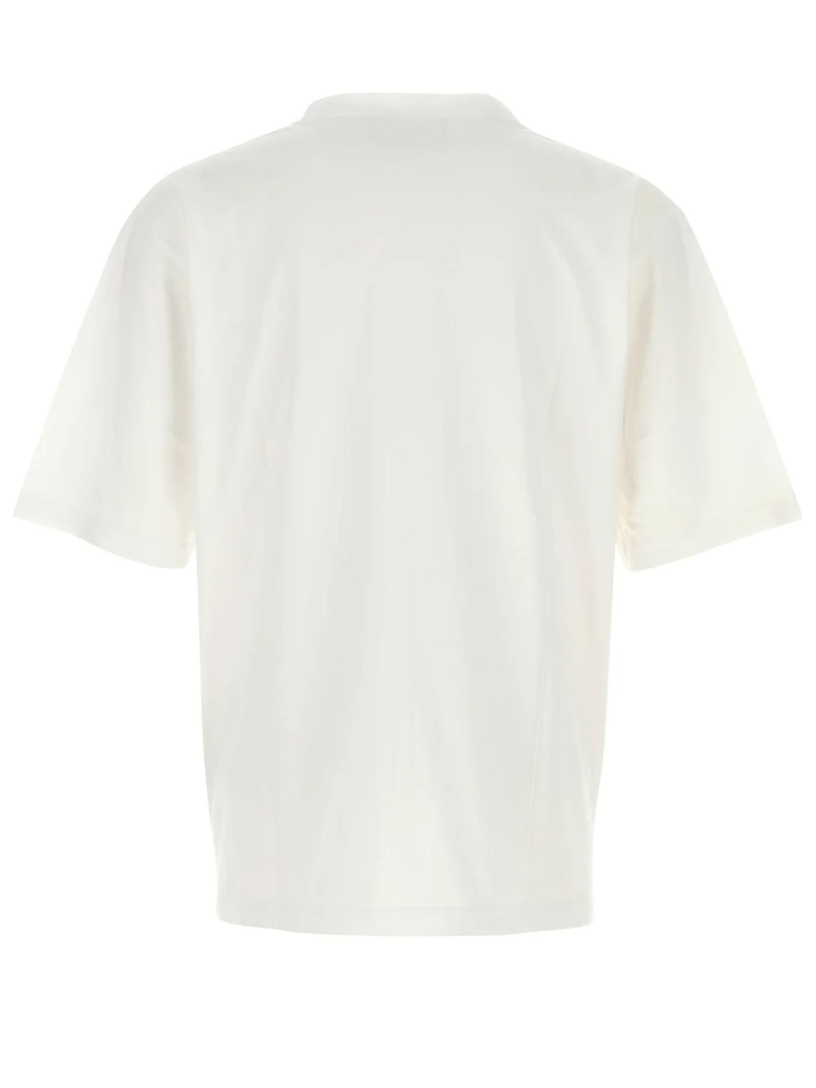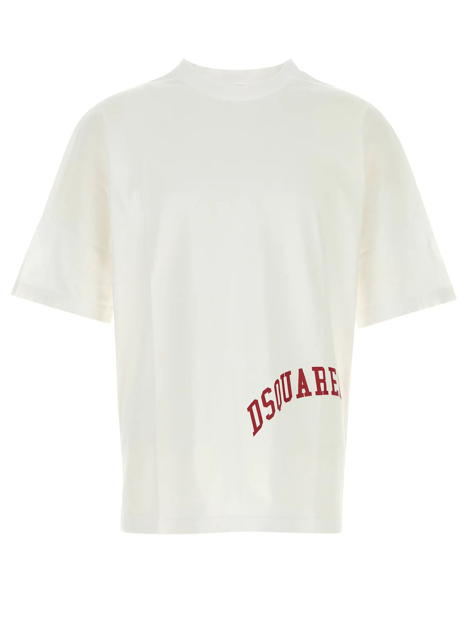 White cotton T-shirt with contrasting logo print on the front, ribbed crew neck