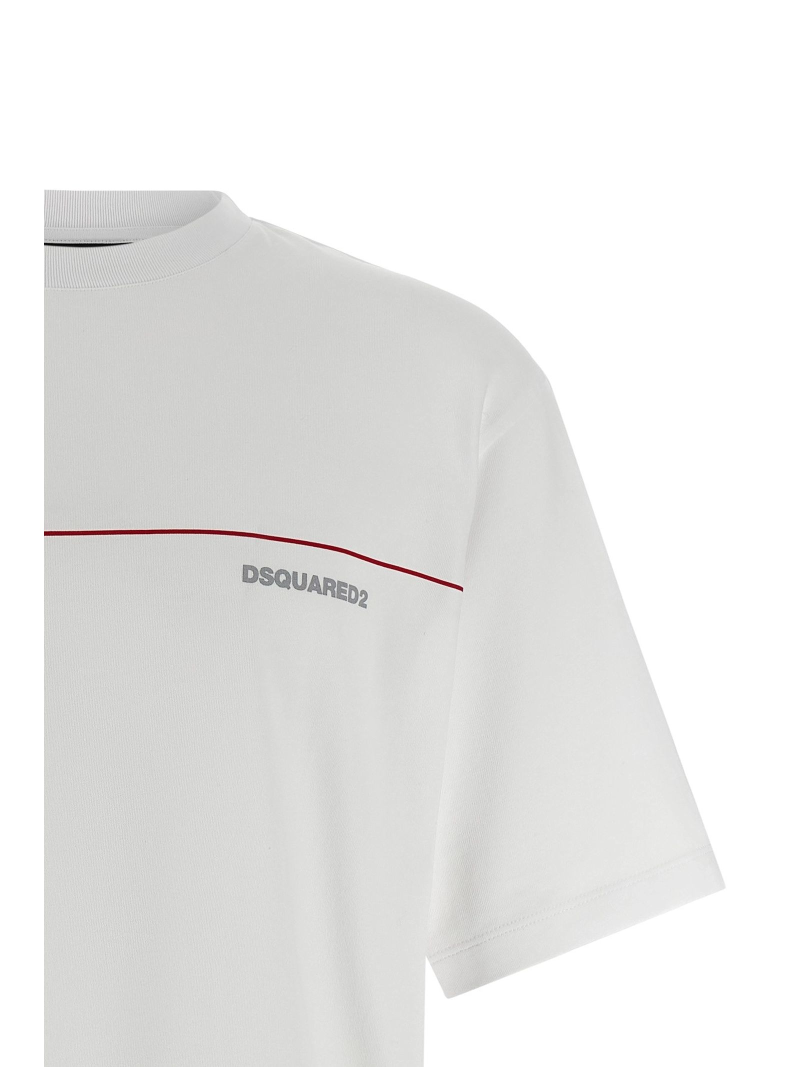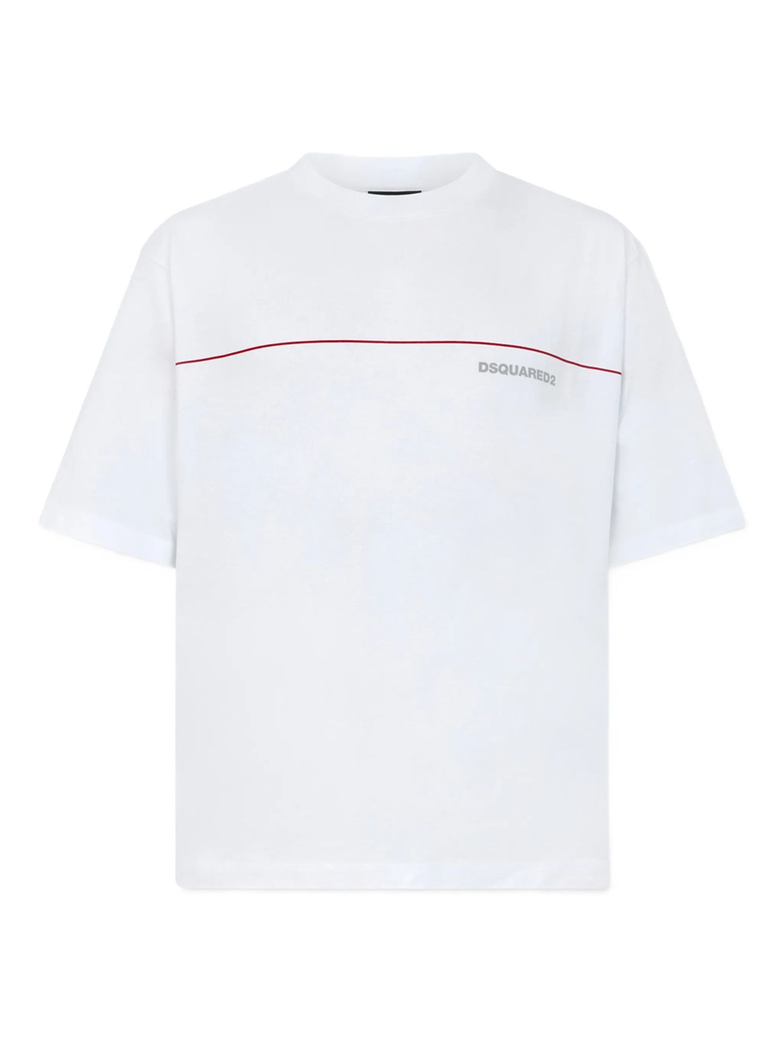 White cotton T-shirt with logo, short sleeves, logo detail, crew neck, dropped shoulders