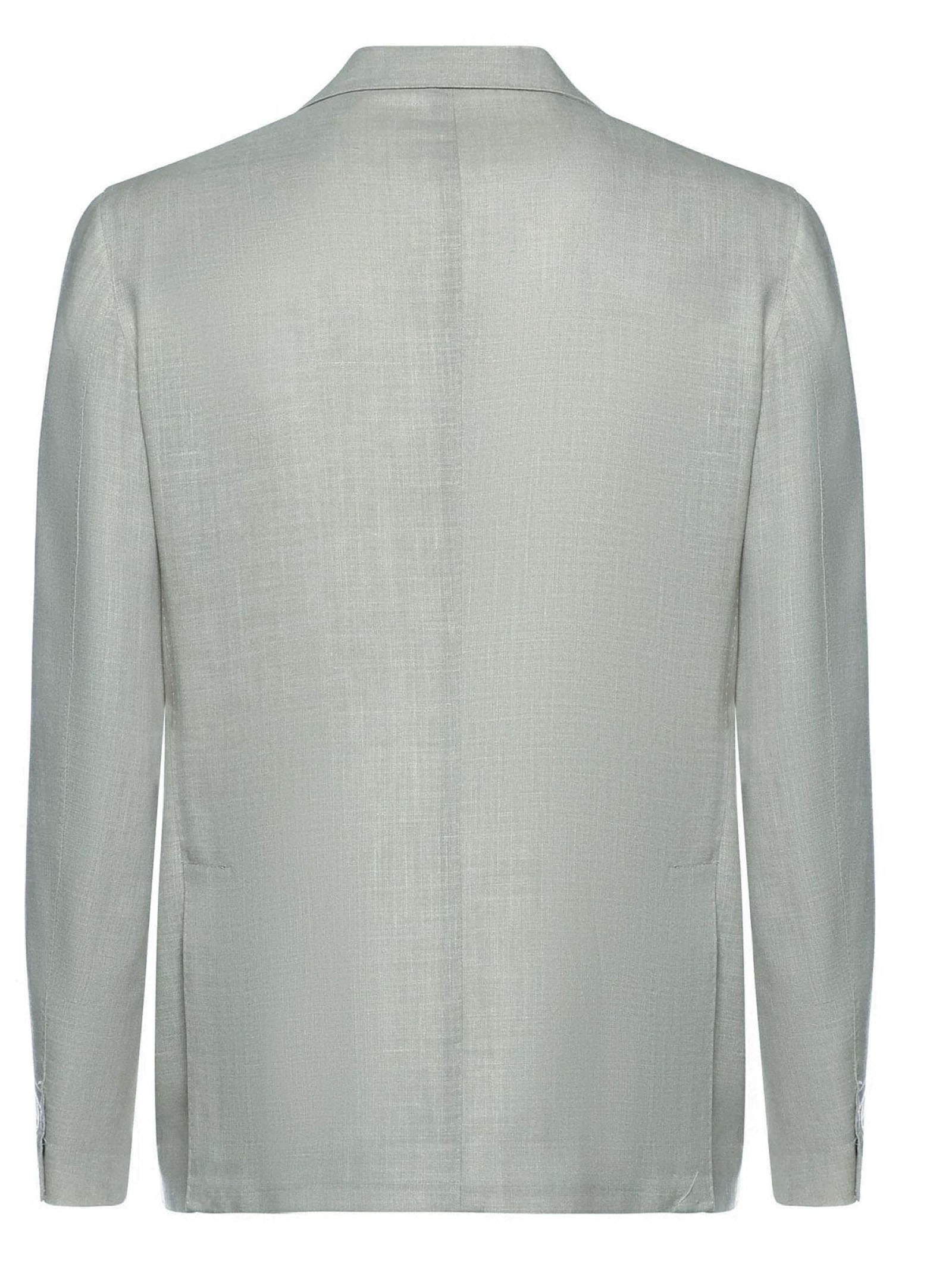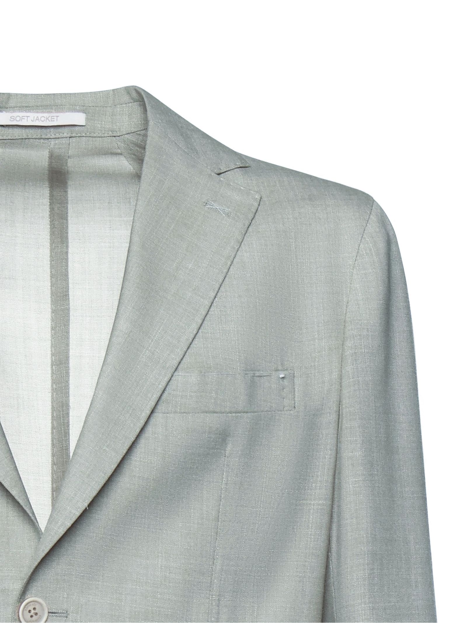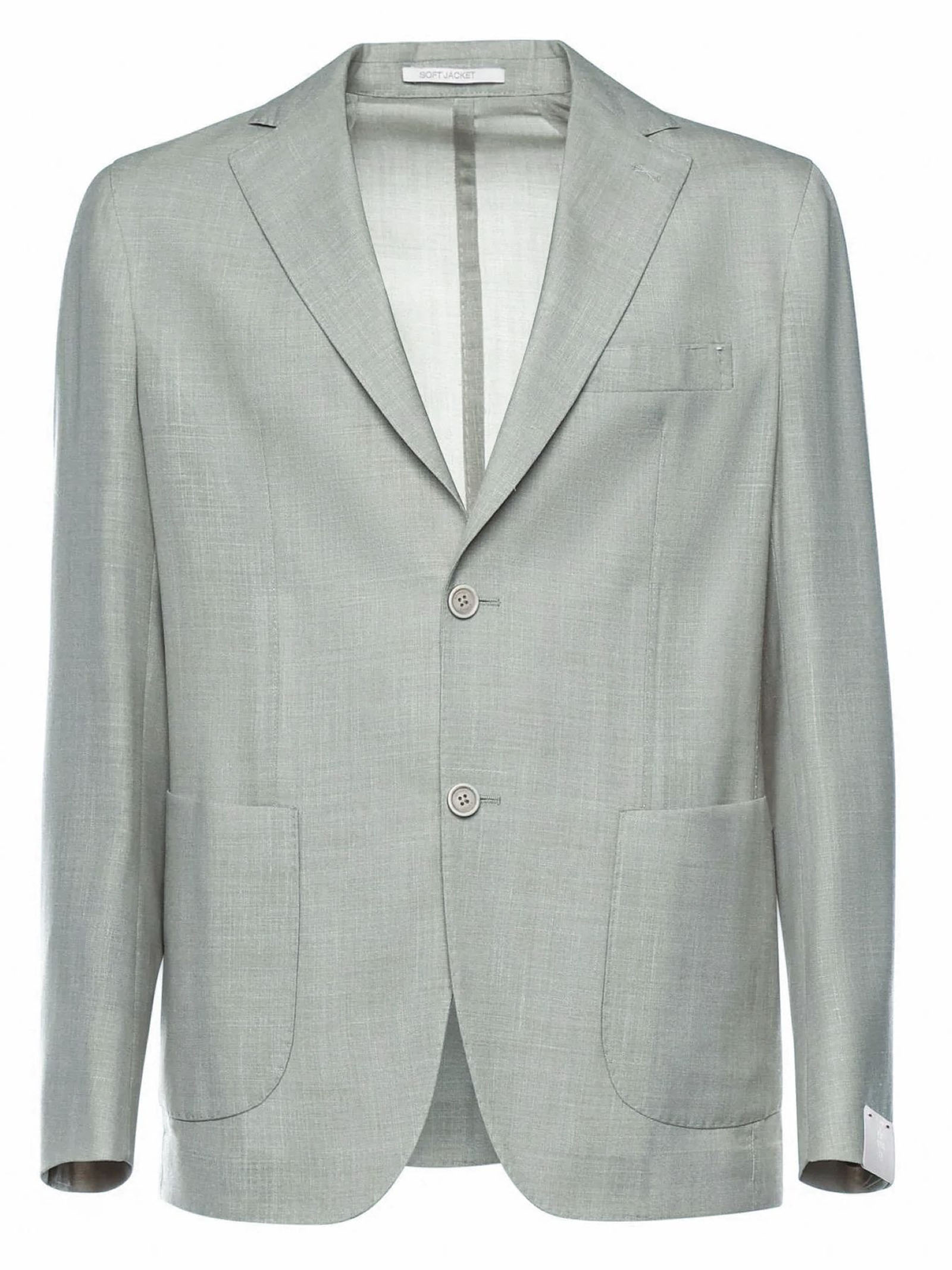 Light green single-breasted tailored blazer, made from wool, silk and linen, patch pockets, pocket square pocket, single-breasted closure with two buttons, classic lapels, regular fit