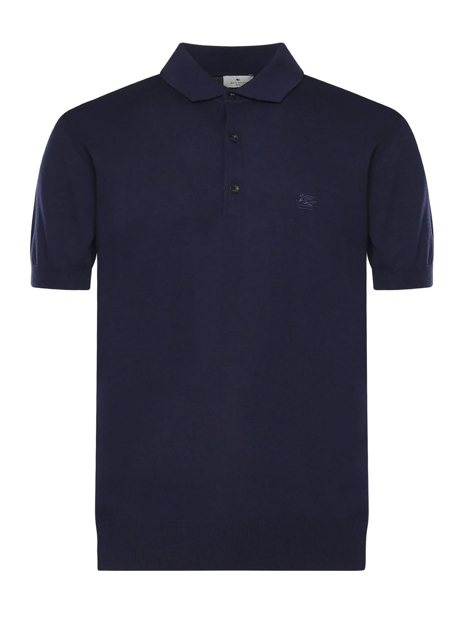 Blue cotton polo shirt with short sleeves, tone-on-tone logo embroidery, and a classic collar with button closure