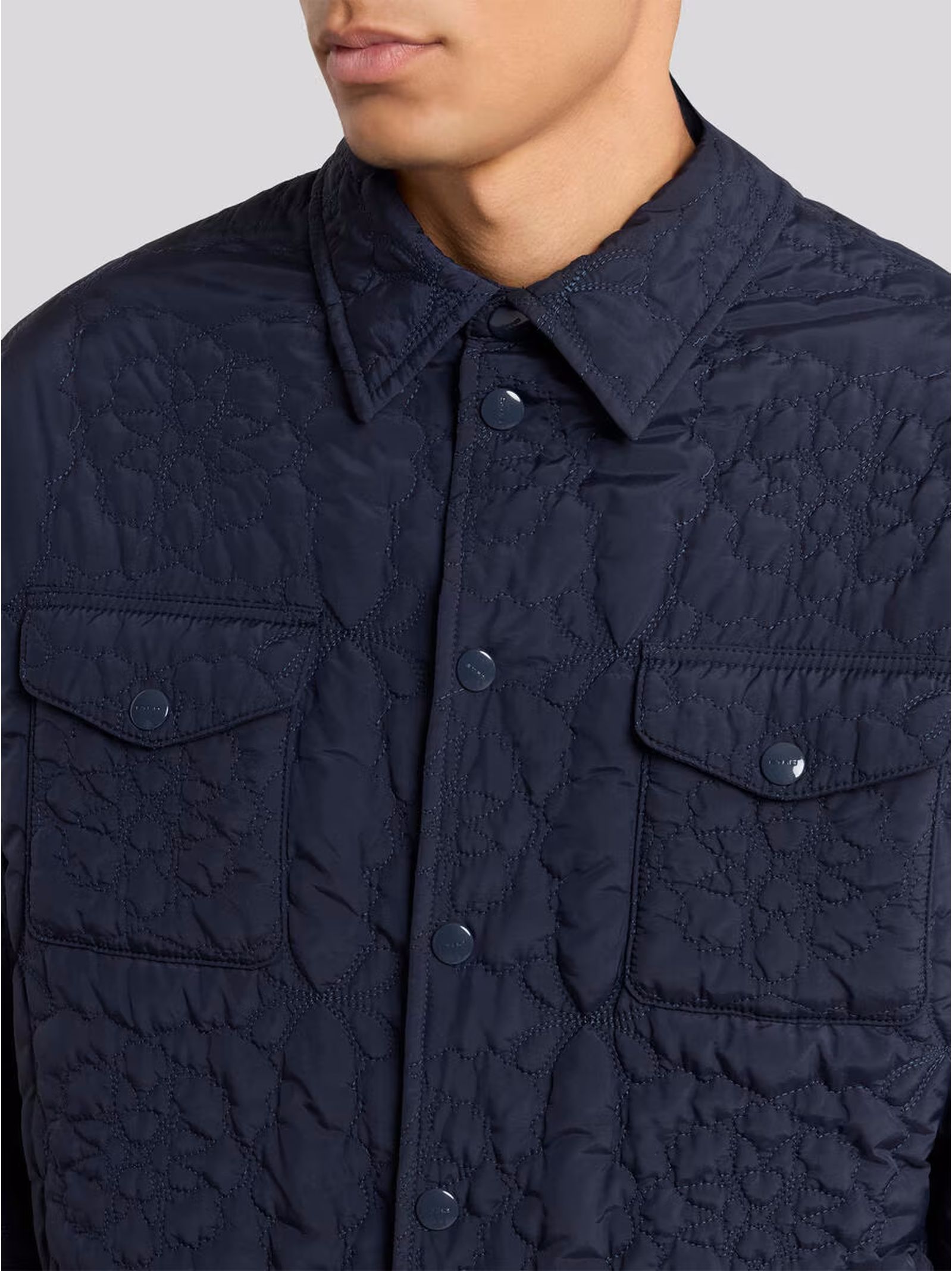 Lightly padded overshirt with grid-patterned quilting, front pockets with buttoned flap, regular fit, shirt collar, branded-button closure, breast pockets with buttoned flap