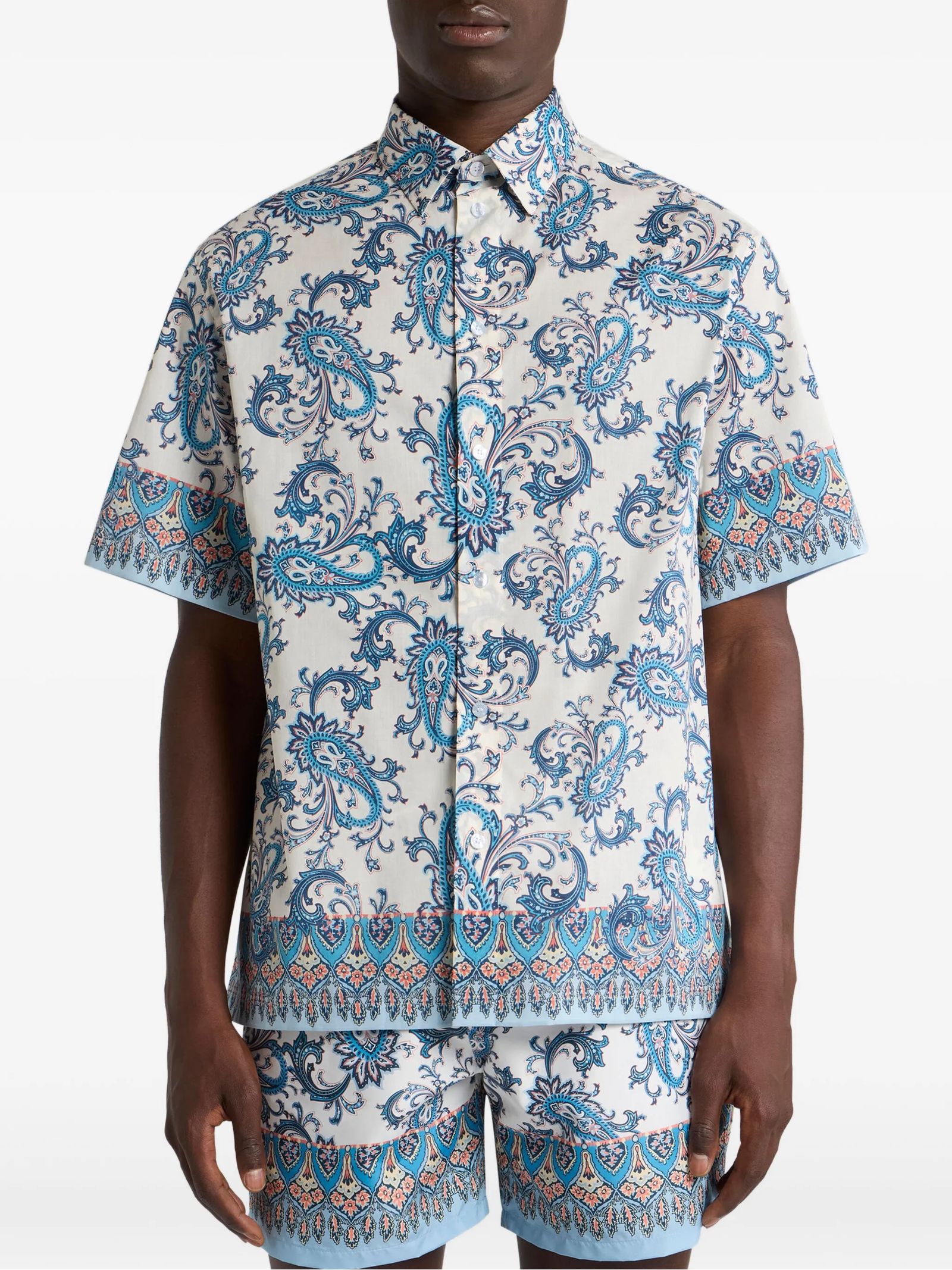 Oversized short-sleeved shirt made from cotton muslin. This model features an all-over floral Paisley motif and a placed print with floral medallions at the sleeve ends and hem, Easy fit, Pointed collar, Short sleeves, Branded-button closure