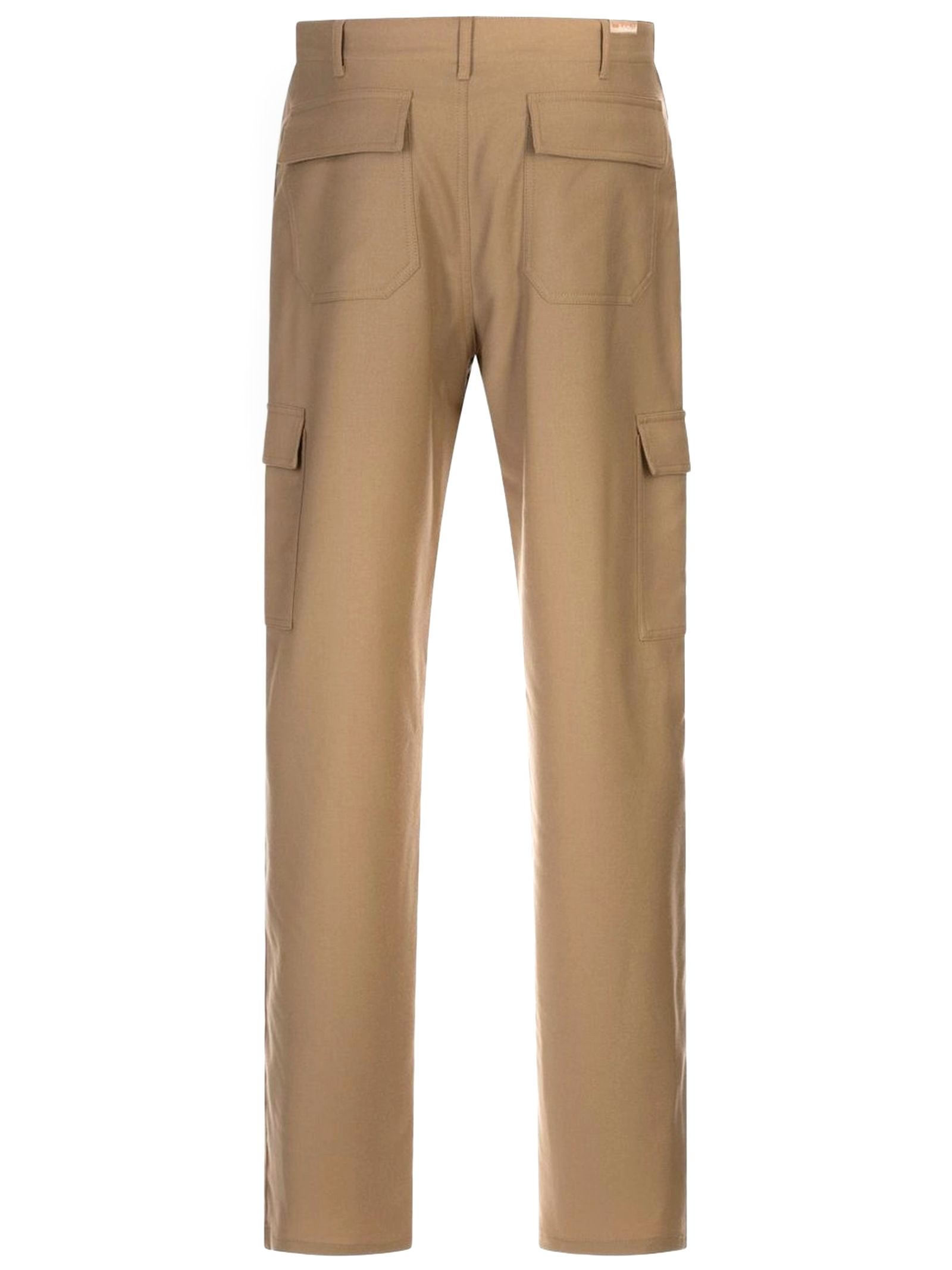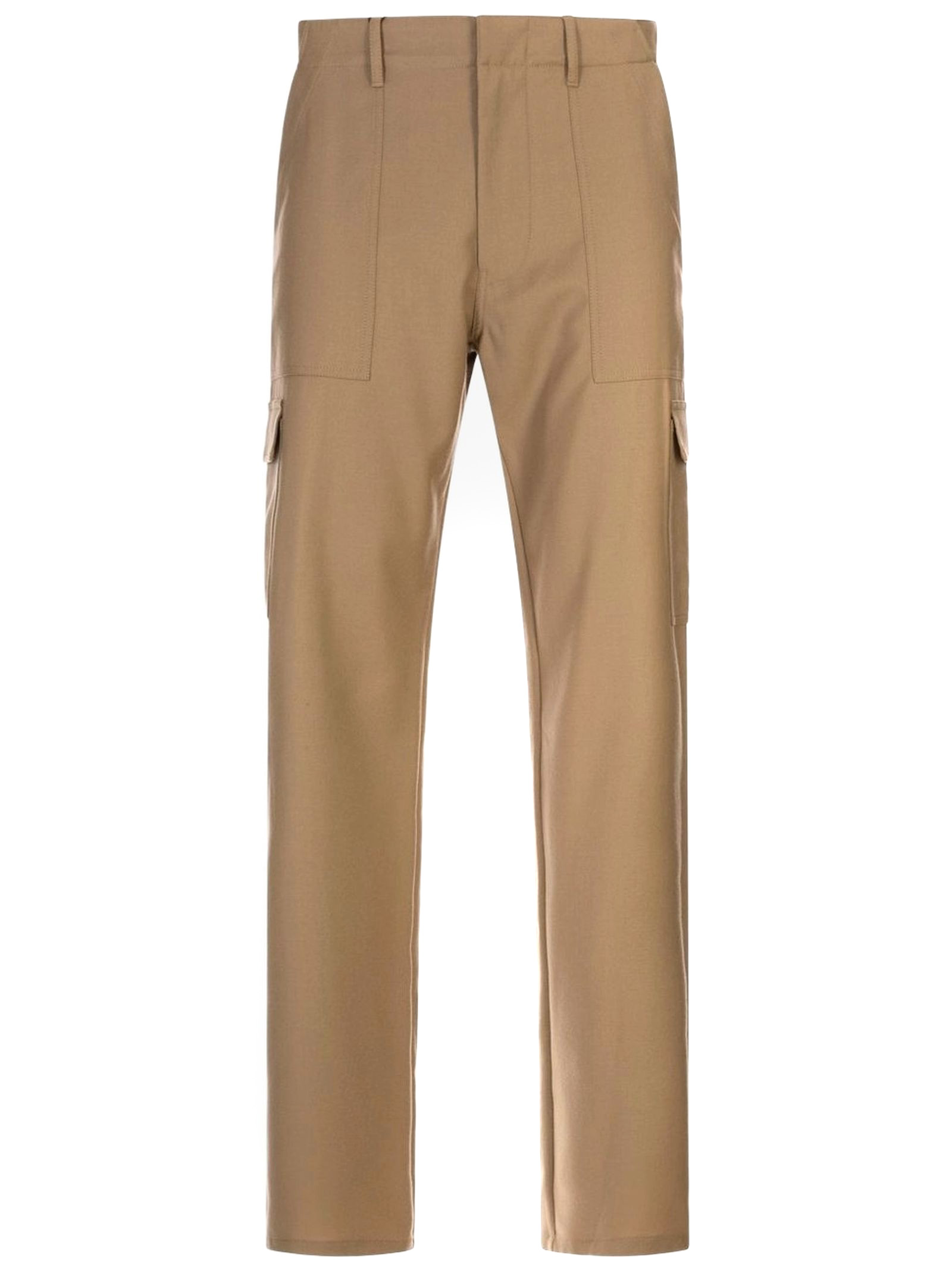 Pure wool flannel trousers with side cargo pockets and large patch pockets on the front, ETRO logo label on the back, regular fit, cargo-style side pockets with flaps, patch pockets with flaps on the back, concealed hook and zip closure.