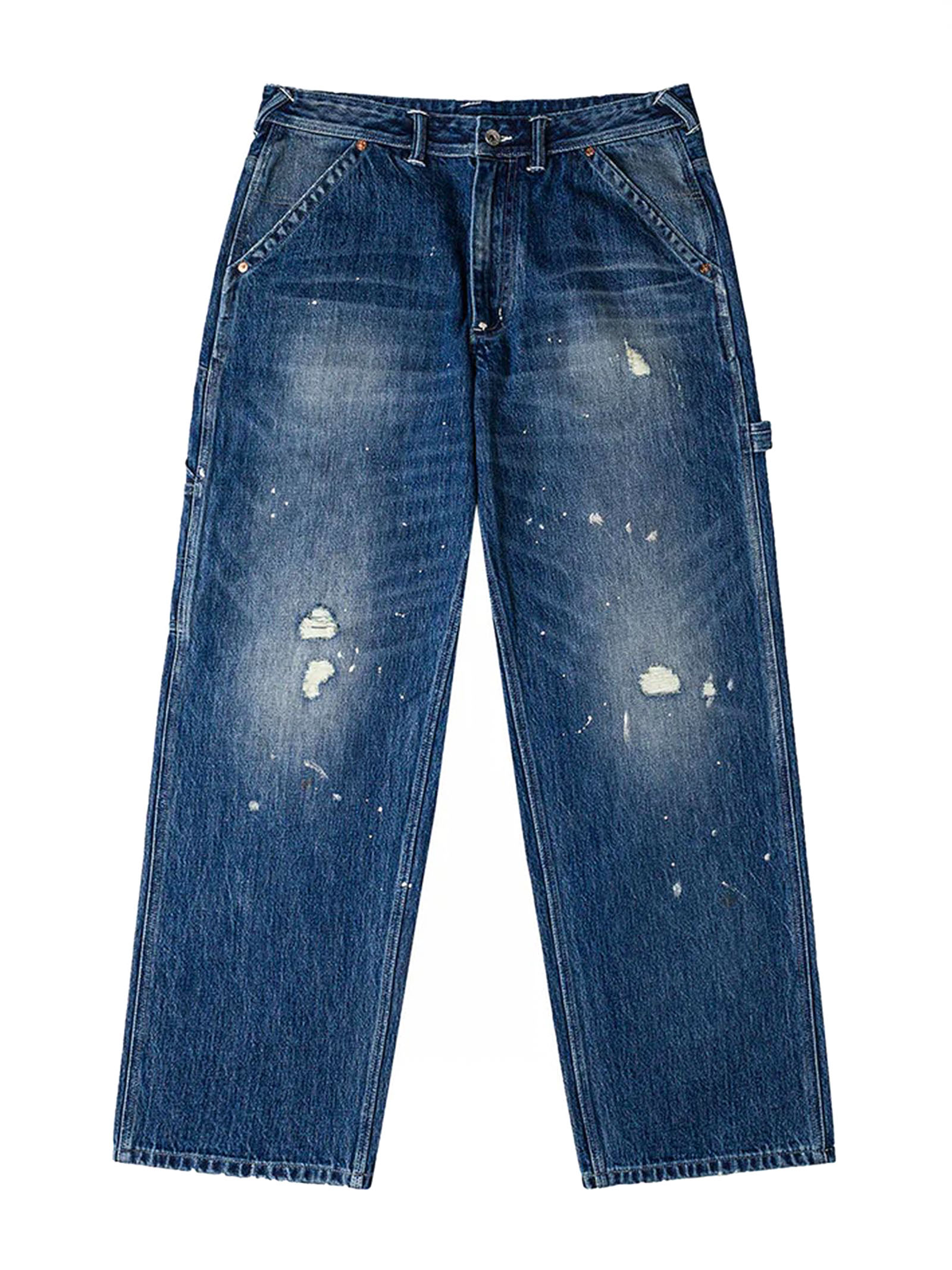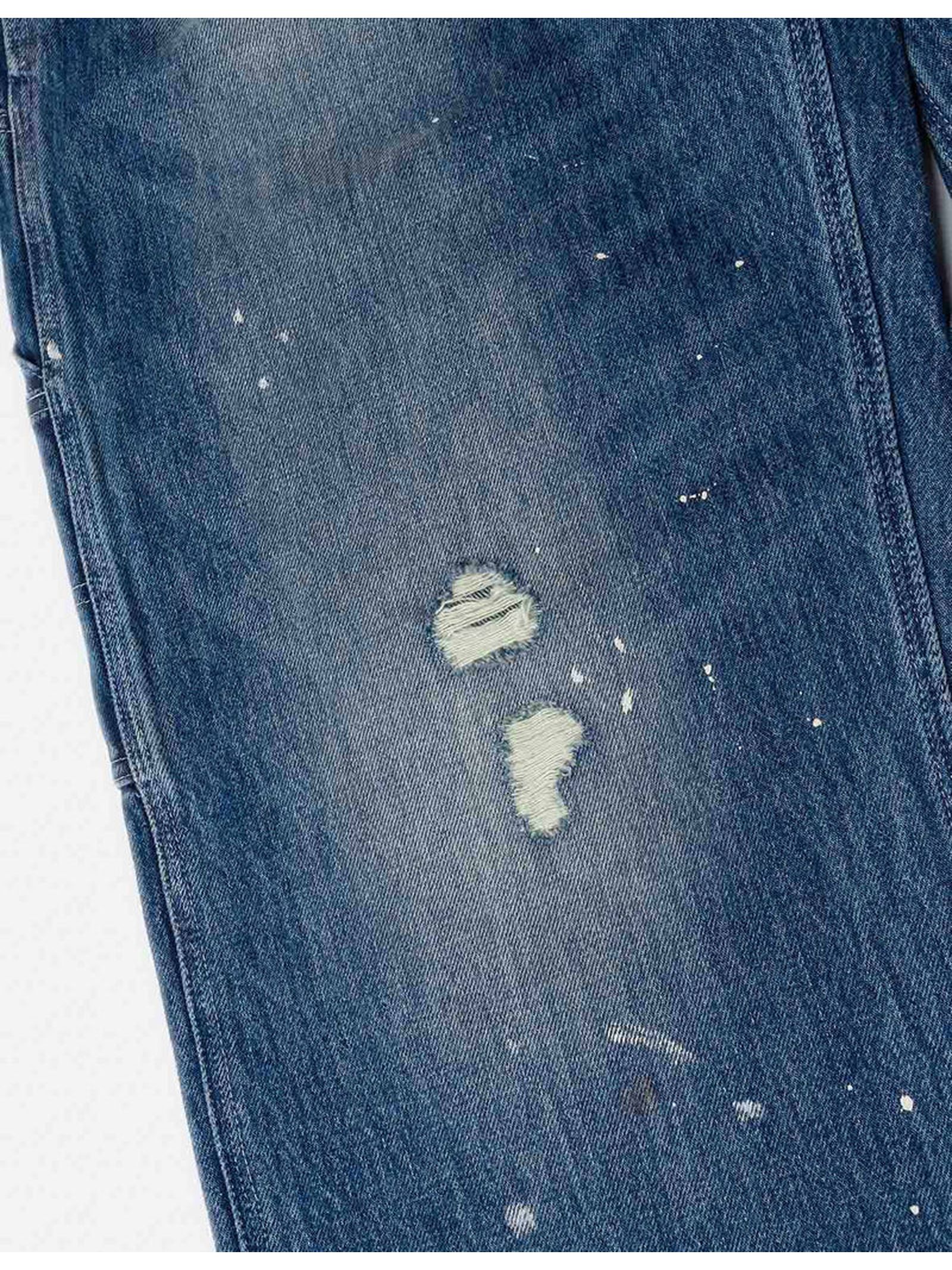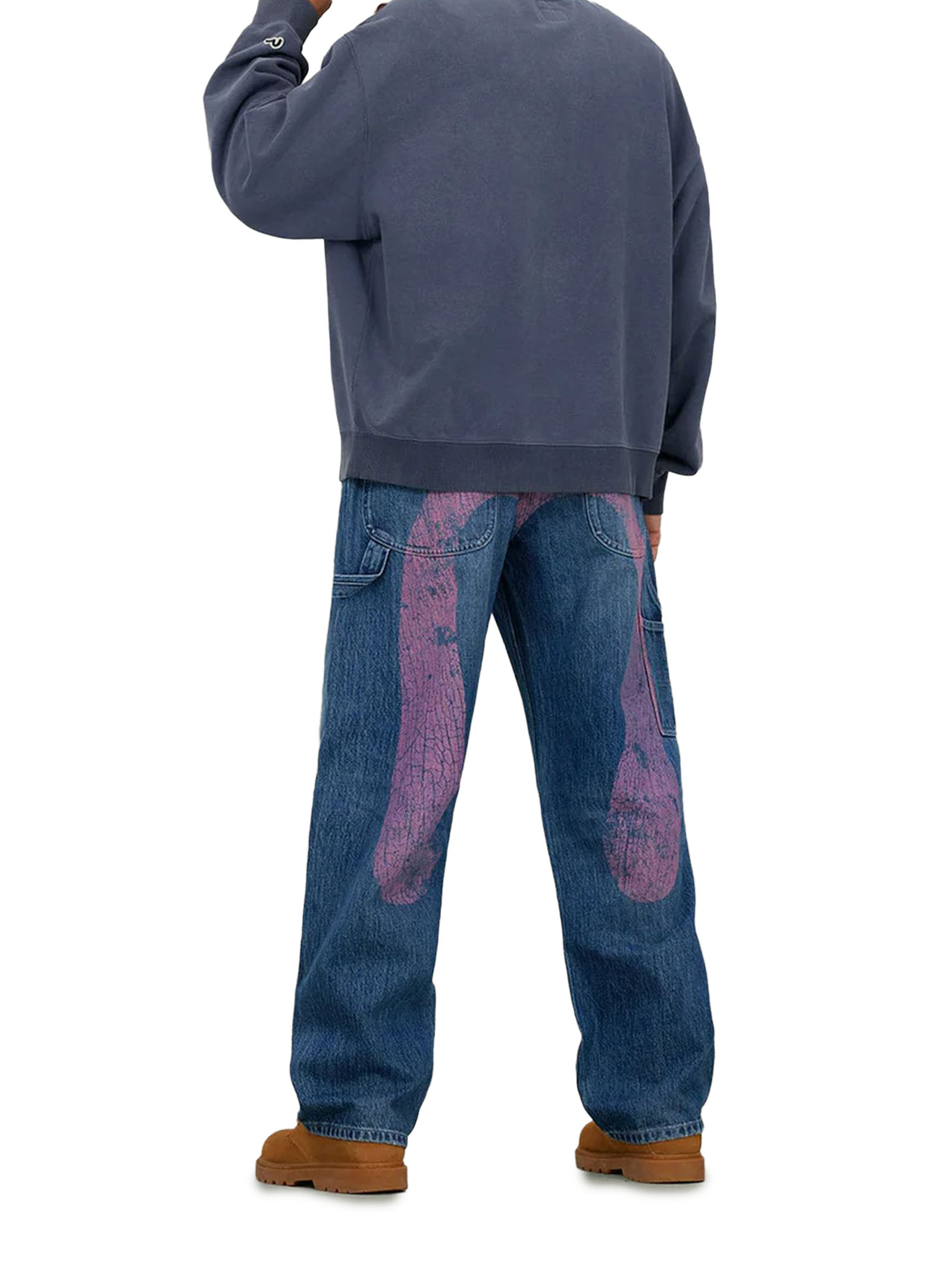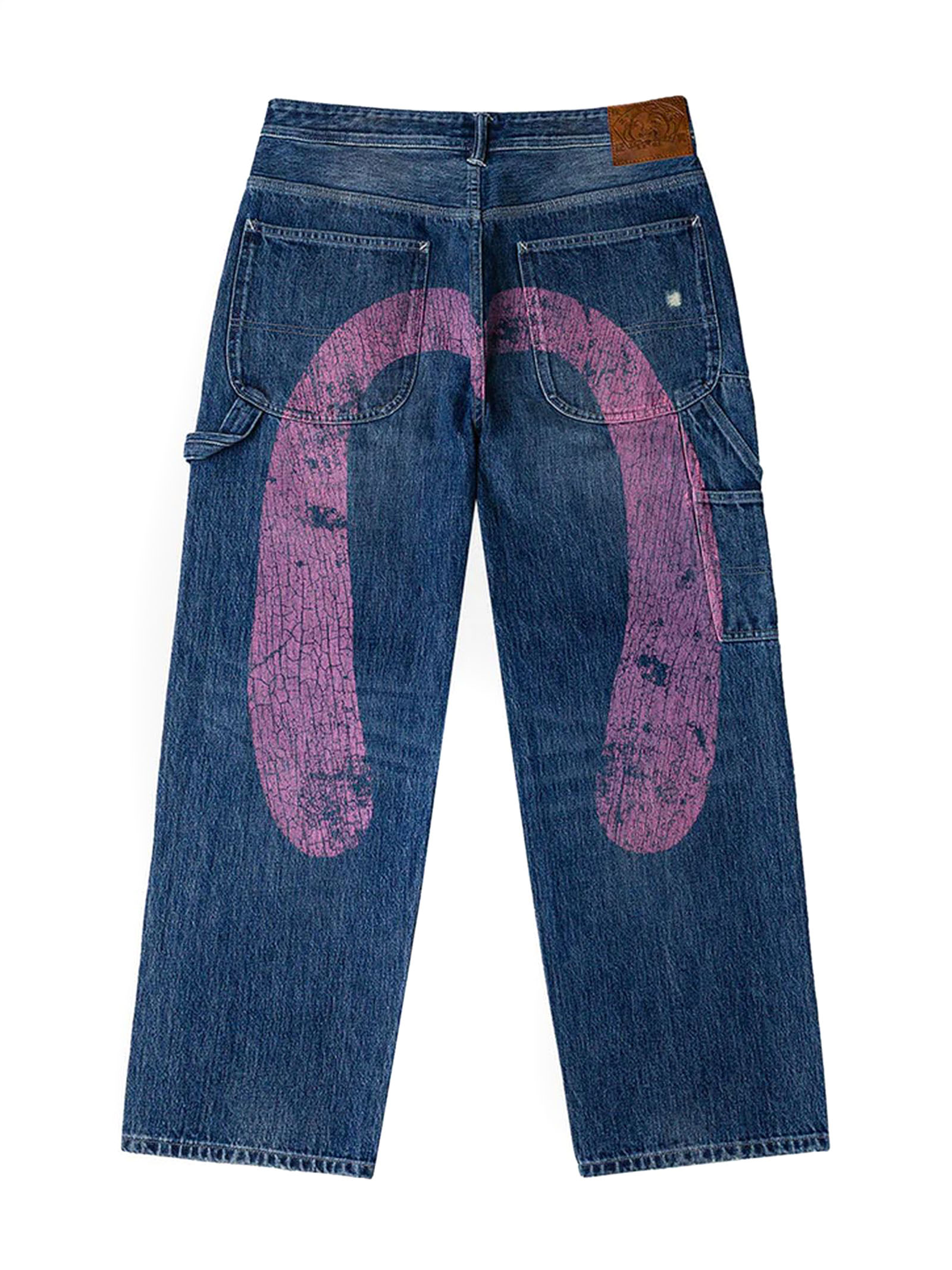 Washed Patchwork and Seagull Print Loose Fit Denim Jeans, Seagull print, Washed, patchwork design, and vintage treatment, Zip fly, 5 pockets