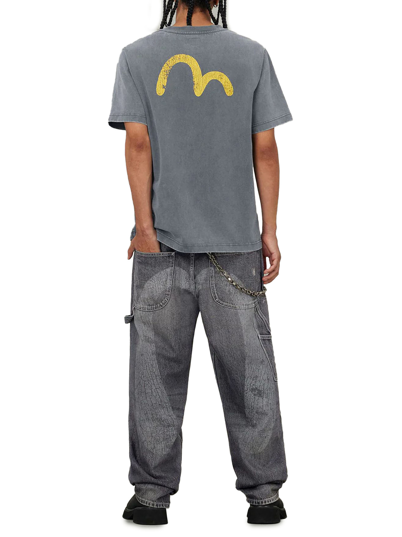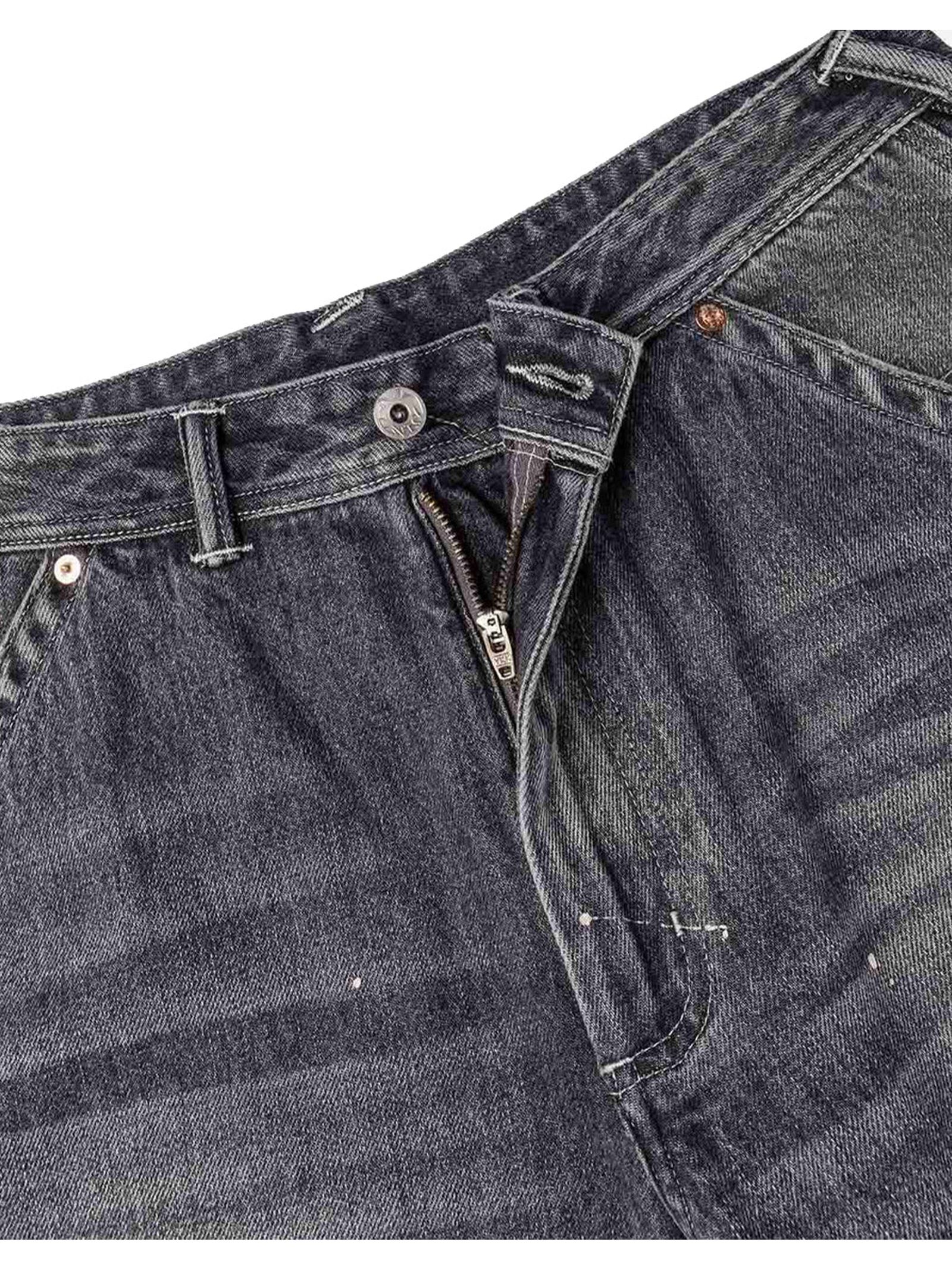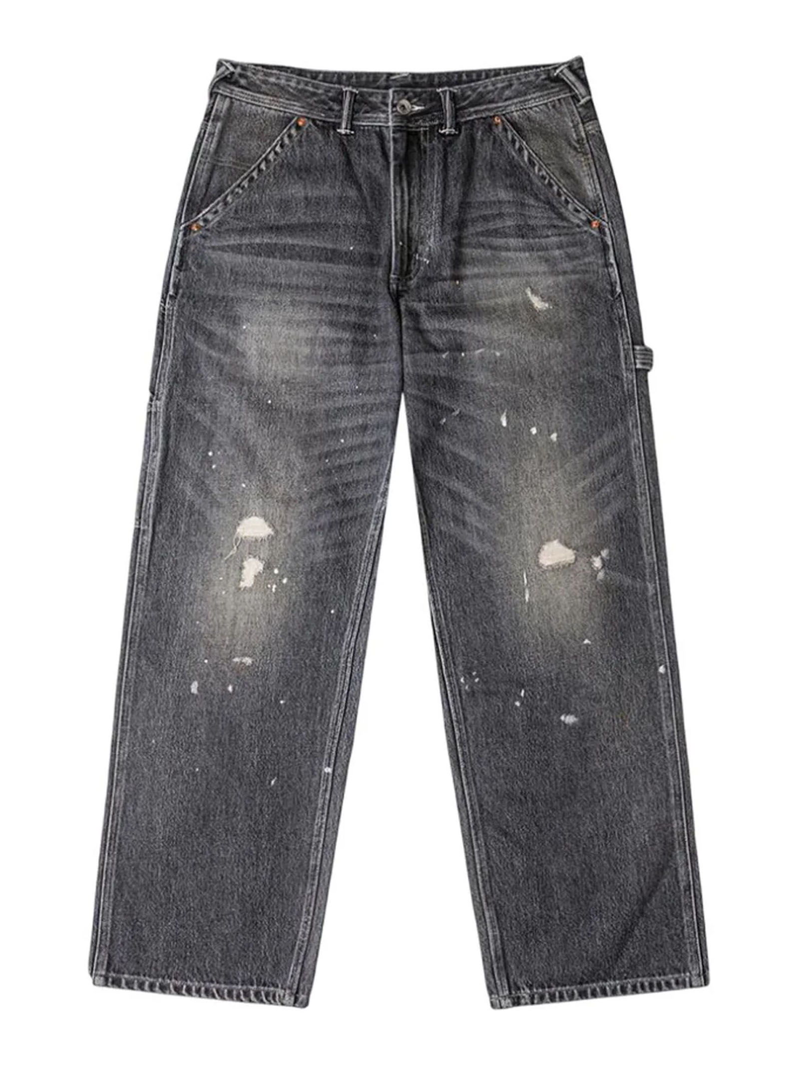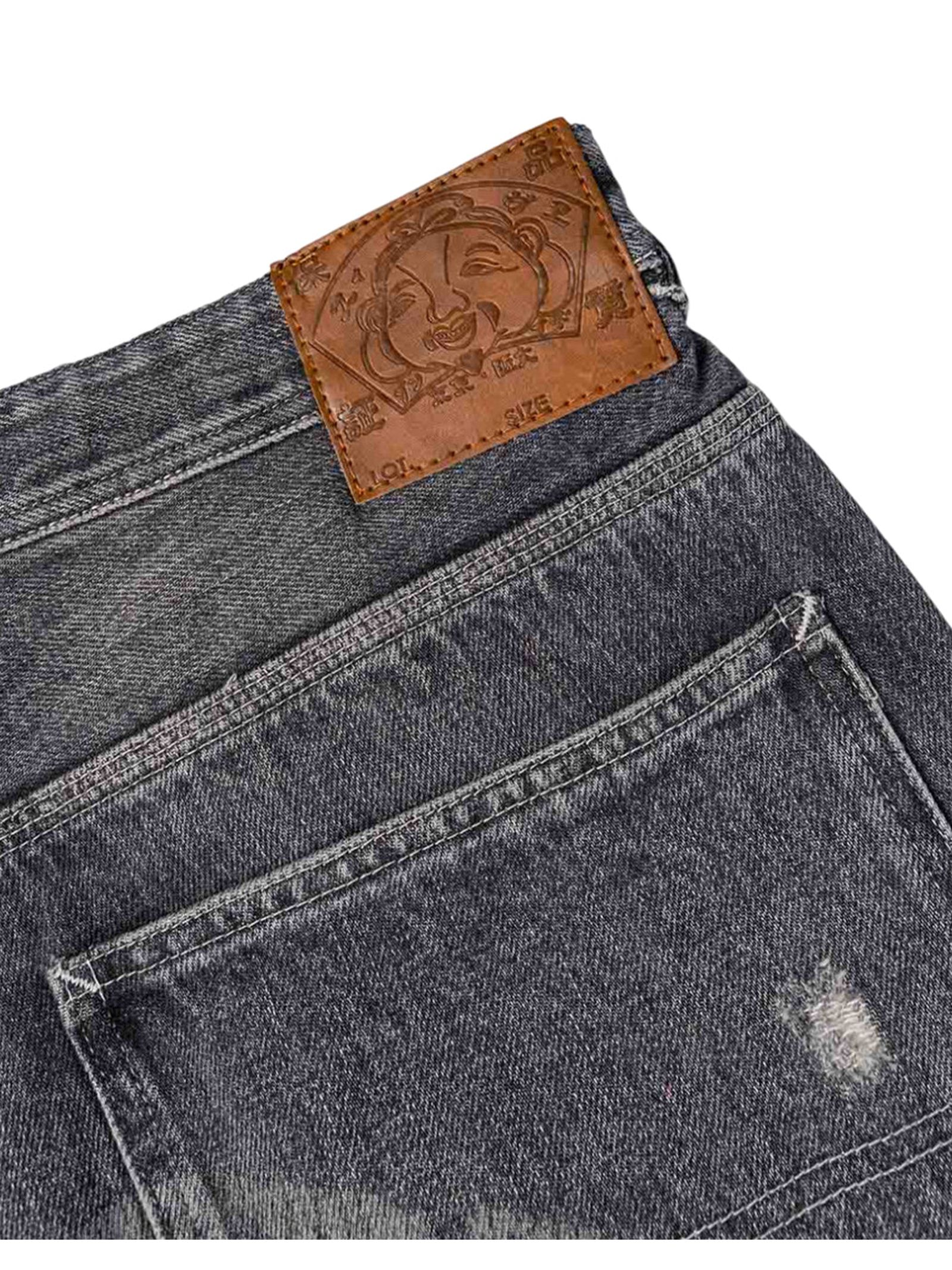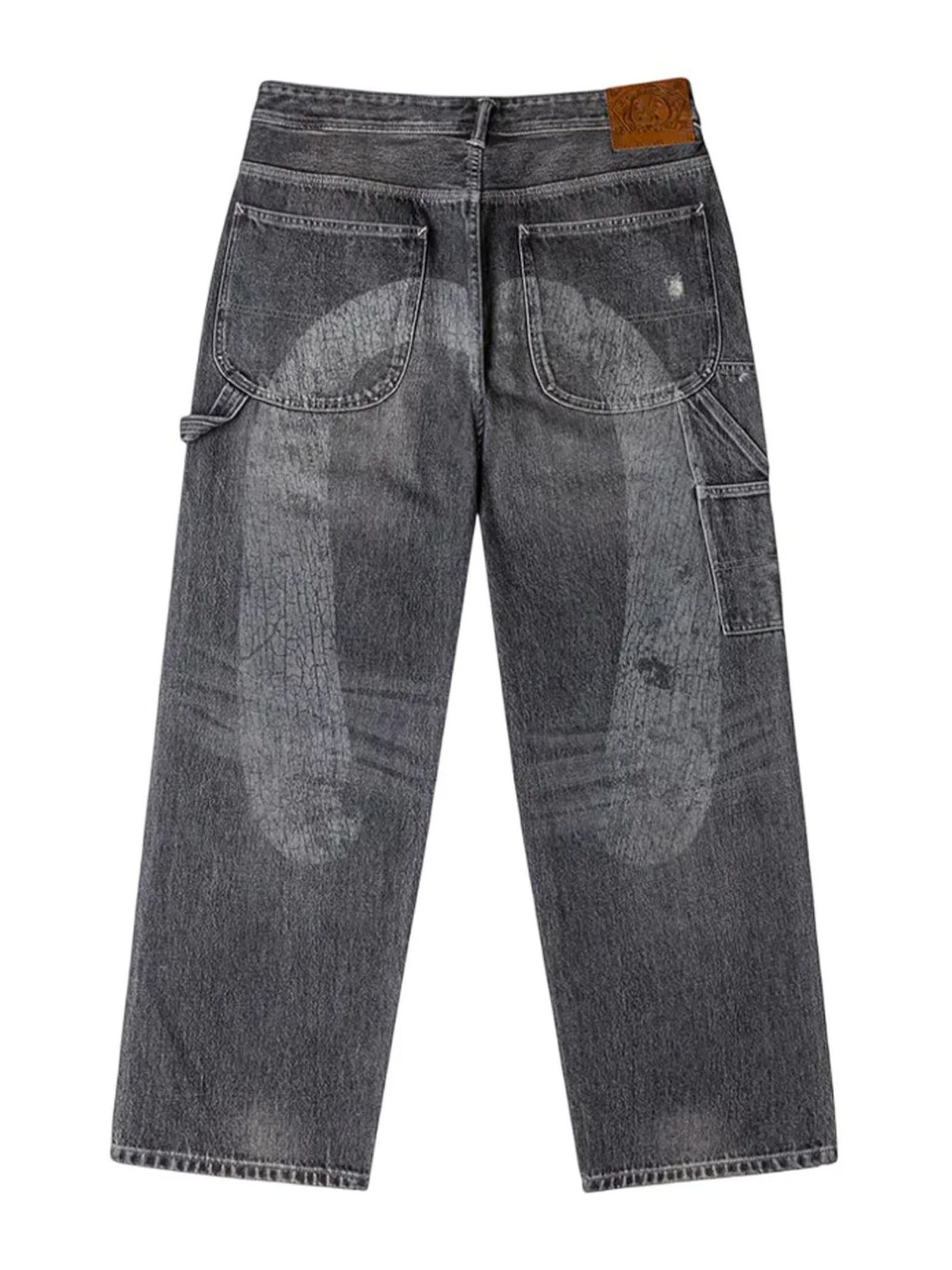 Washed Patchwork and Seagull Print Loose Fit Denim Jeans, Seagull print, Washed, patchwork design, and vintage treatment, Zip fly, 5 pockets