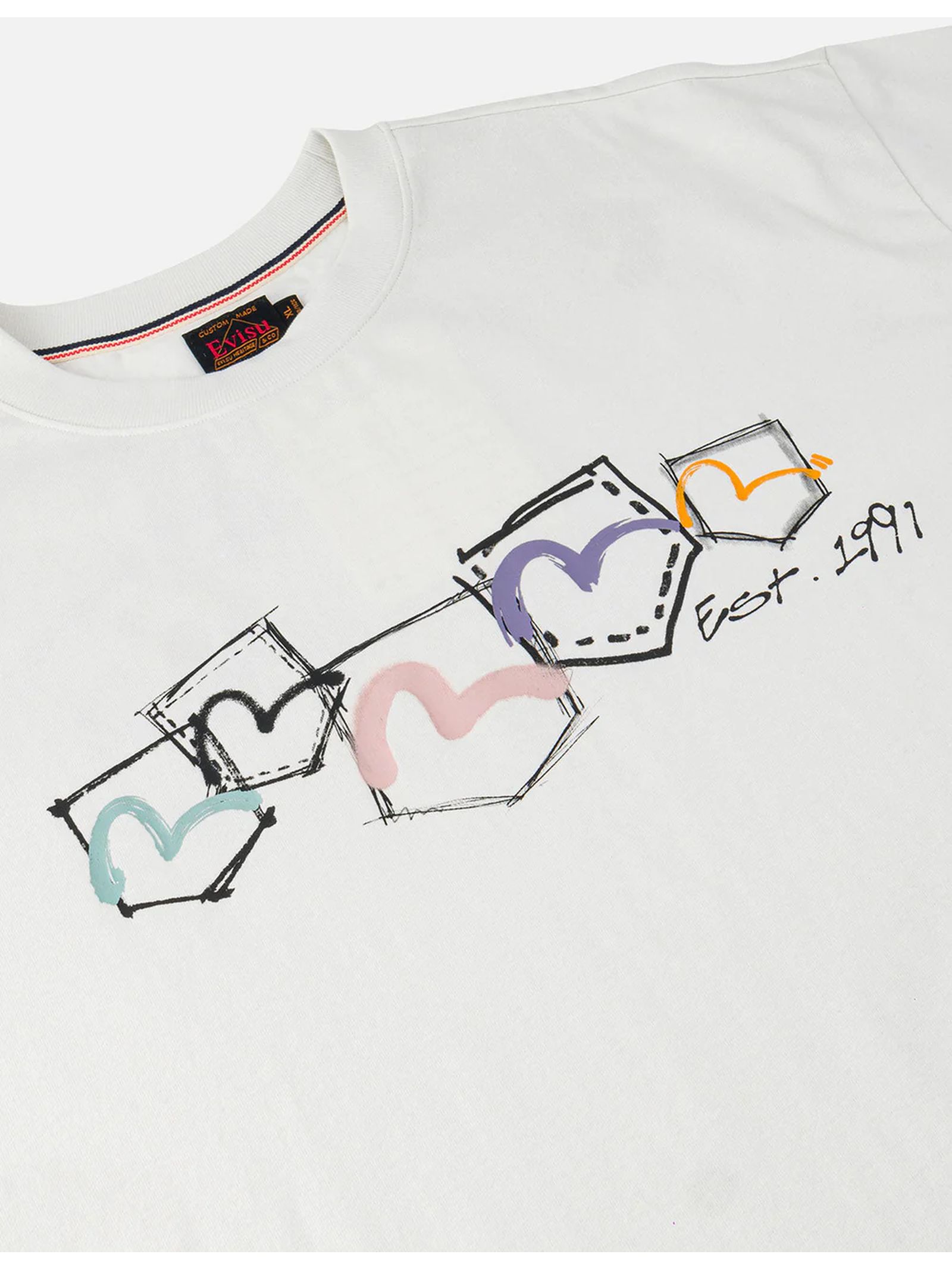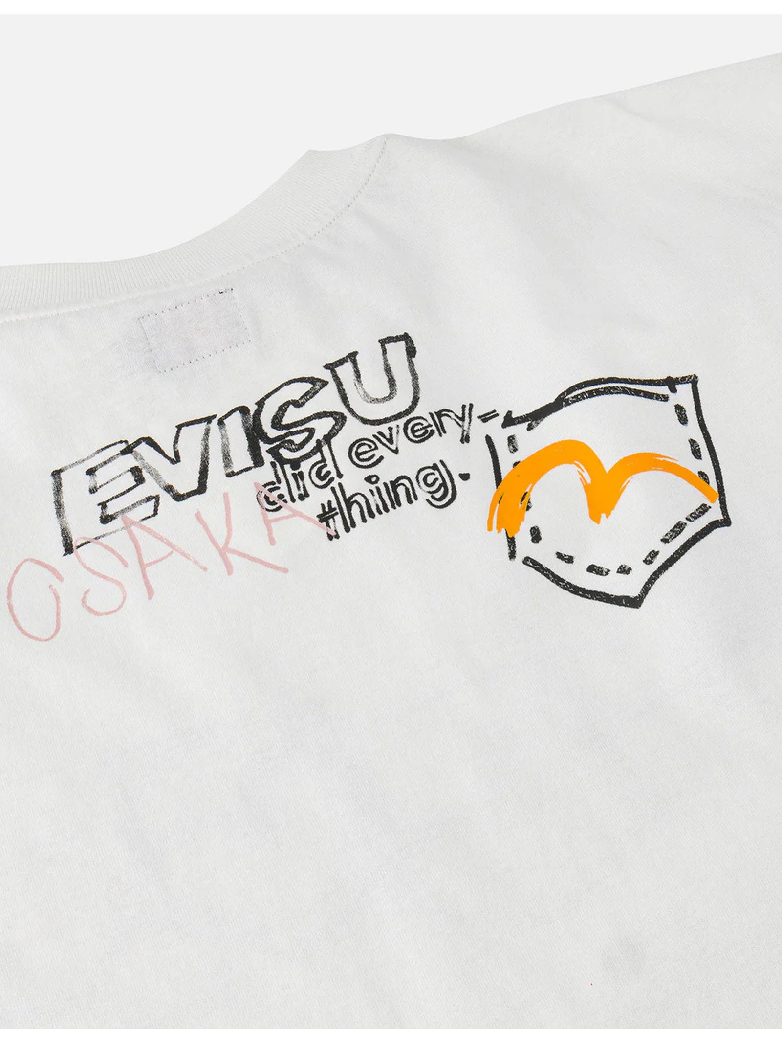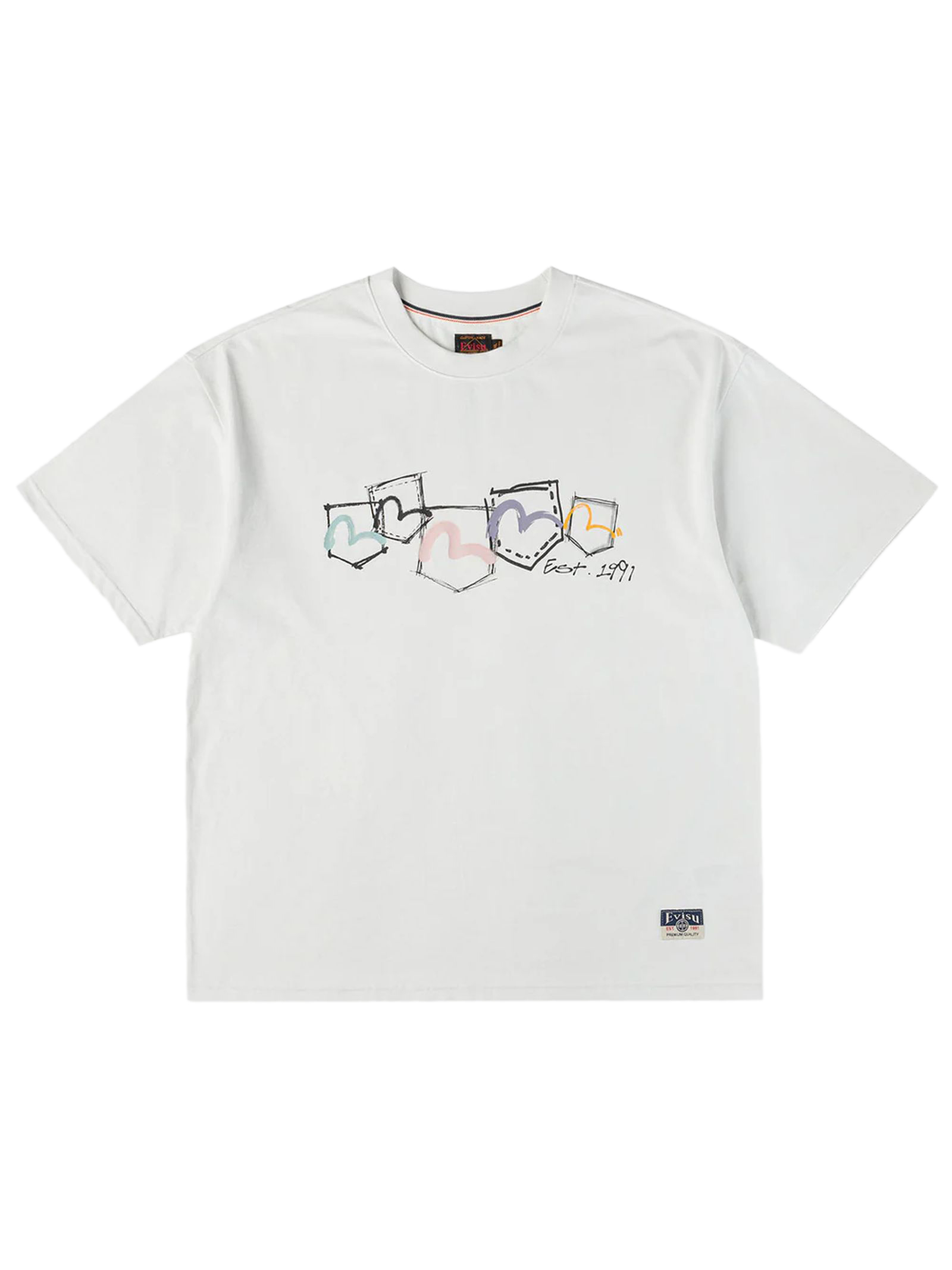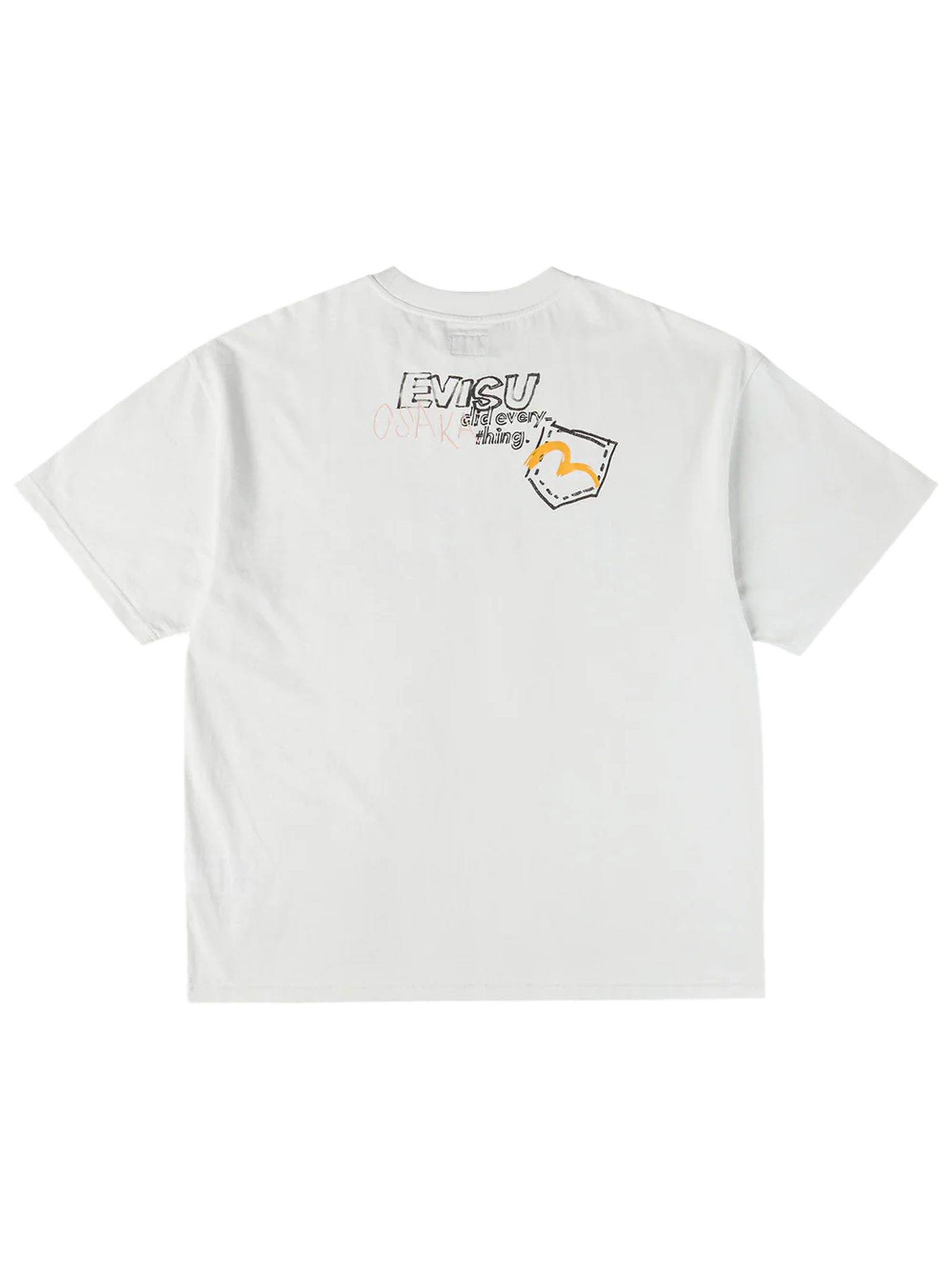 Hand-Drawn Multi-Pocket T-shirt, Relax fit, 100% Cotton, Hand-drawn multi-pocket and text prints