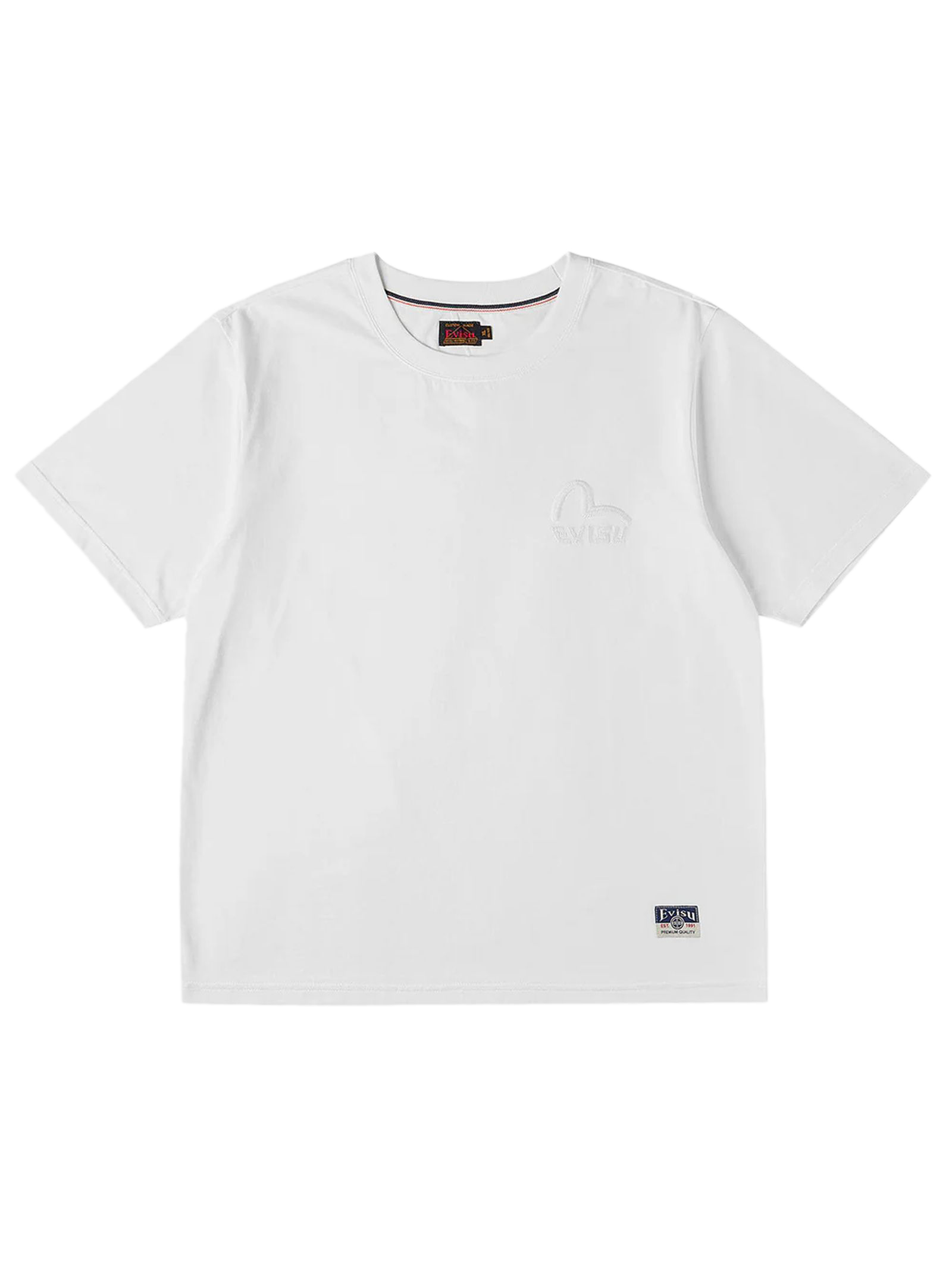 Monochrome Seagull Embroidery T-shirt, Regular fit, 100% Cotton, Seagull embroidery at chest, EVISU woven label at hem, Ribbed crew neck