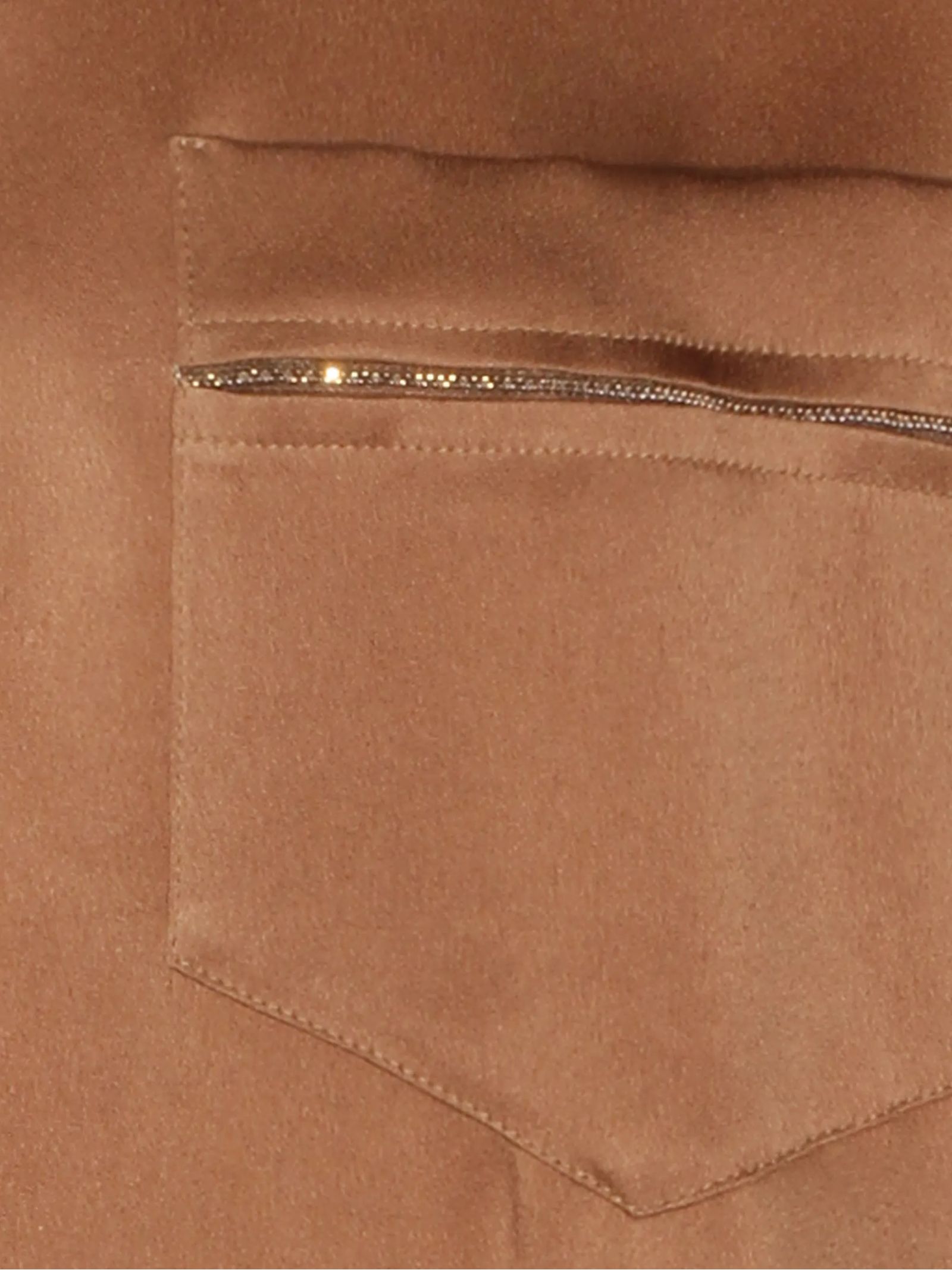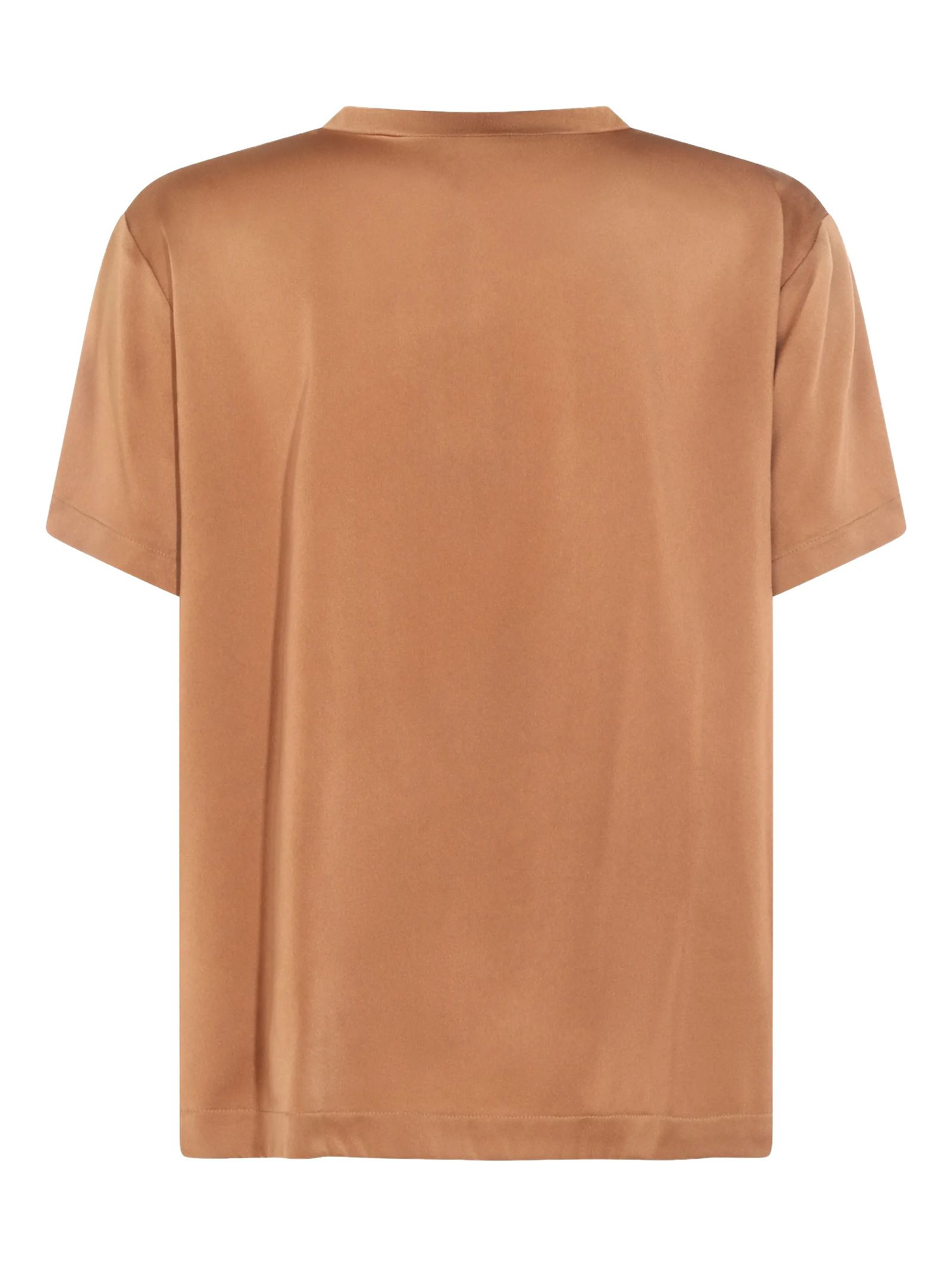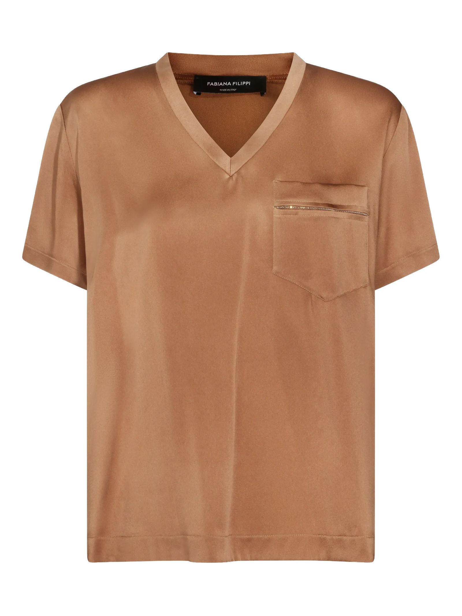 Brown ever satin blouse, chest pocket, V-neck, short sleeves