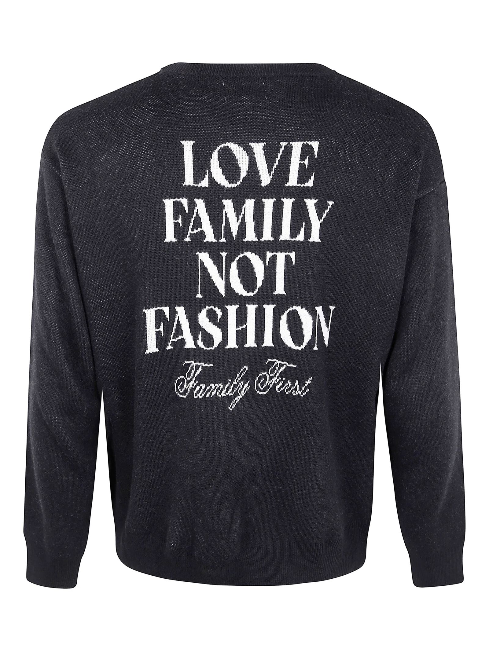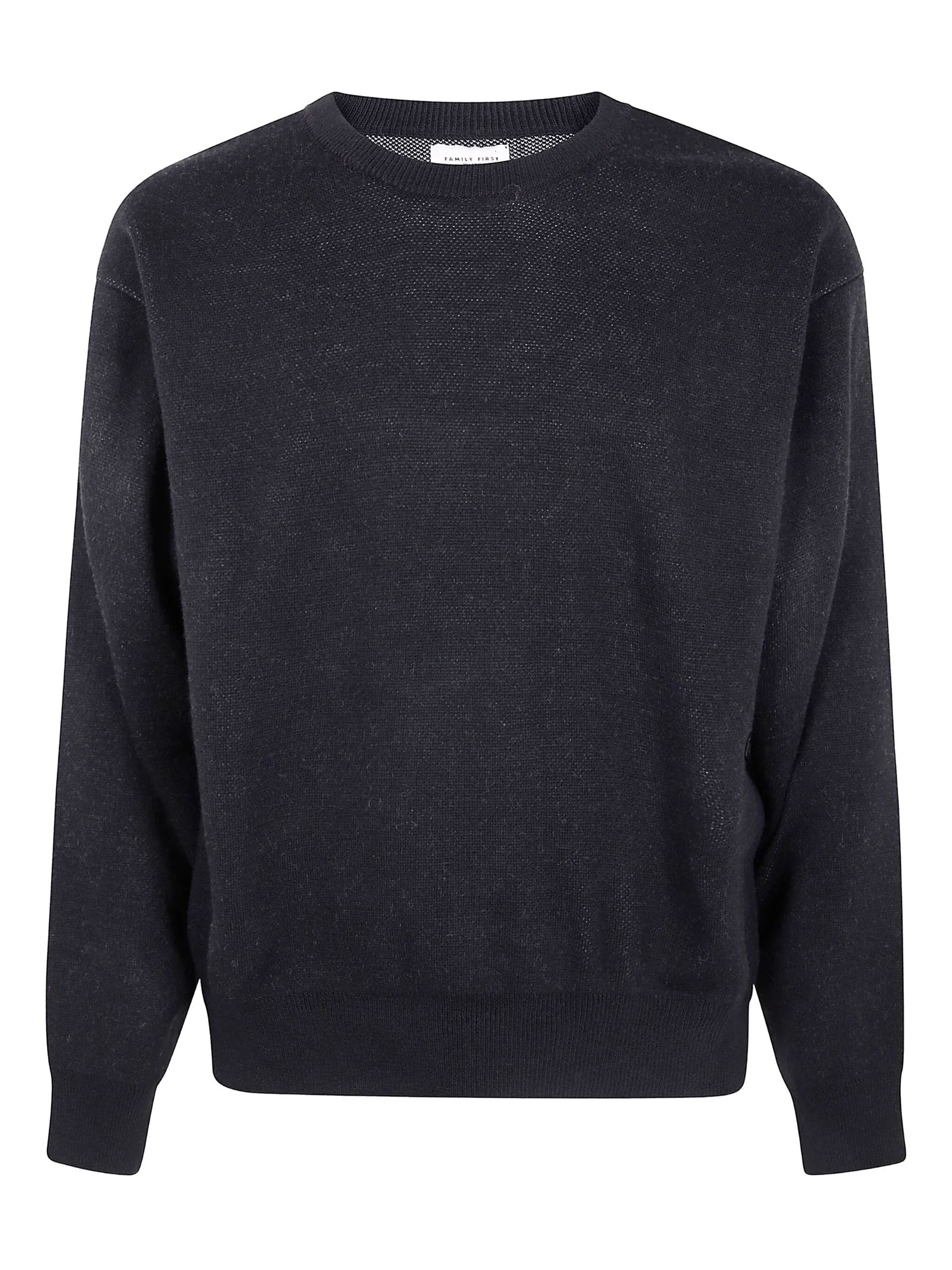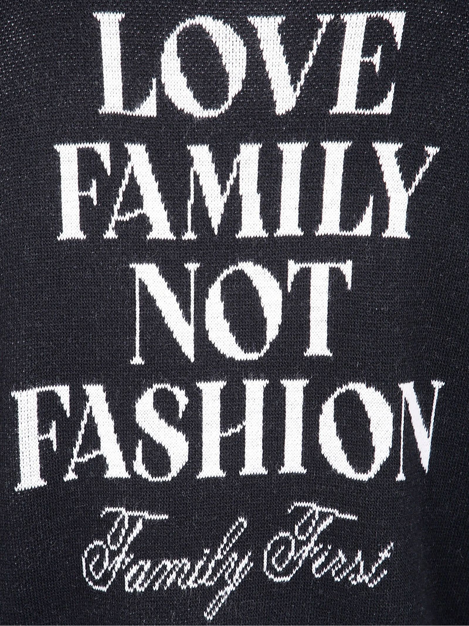 Black wool crew-neck knitted sweater, knit texture, crew neck, lettering at the rear, long sleeves, ribbed hem and cuffs
